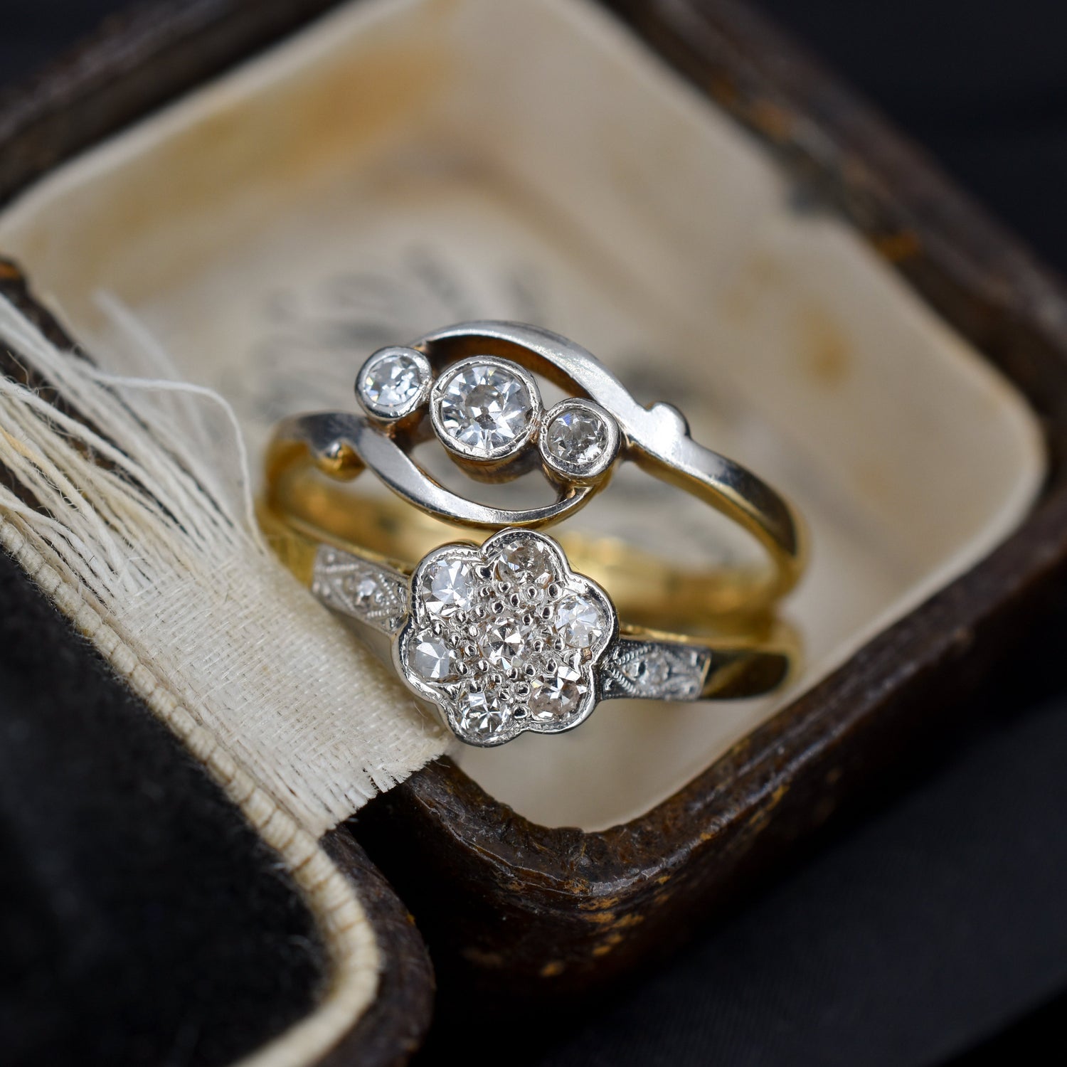 Our curated collection features dazzling diamonds and vibrant gemstones, with intricate details and symmetrical designs that capture the spirit of the Art Deco era. From classic solitaires to vintage-inspired filigree rings, every piece tells a story of elegance and artistry.