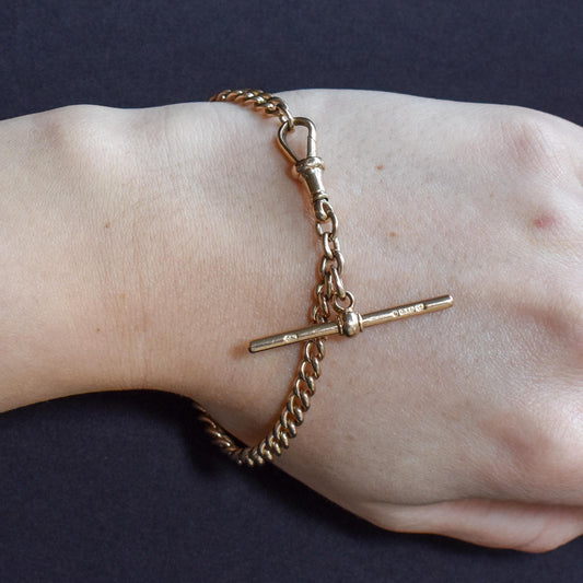 Antique Graduated Curb 9ct Gold Bracelet with Dog Clip and T-bar | 7.5"