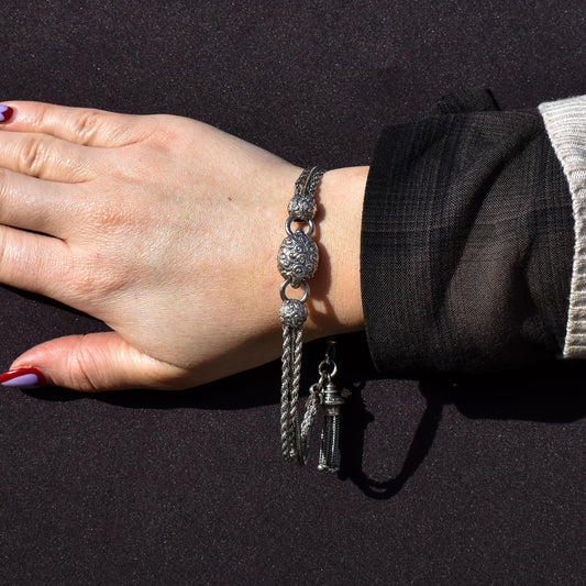 Antique Sterling Silver Albertina Albert Watch Chain Bracelet with Tassel