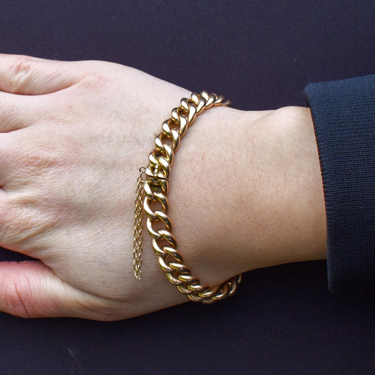 Antique 9ct Gold Concealed Clasp Curb Bracelet | 7"