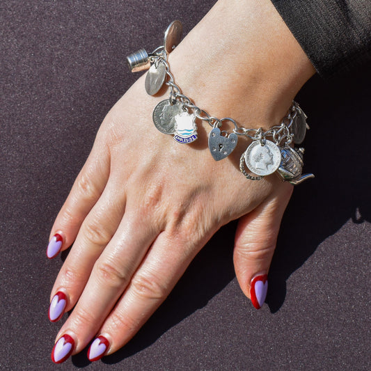 Vintage Sterling Silver Multi Charm Love Token Bracelet | 7.5"