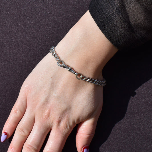 Antique Graduated Curb Sterling Silver Bracelet with Dog Clip | 7.5"