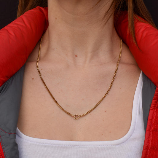 Antique 9ct Gold Flat Curb Link Chain Necklace with Bolt Ring | 21"