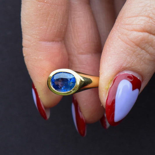 2.55ct Natural Cornflower Blue Sapphire 18ct Gold Signet Ring Certified