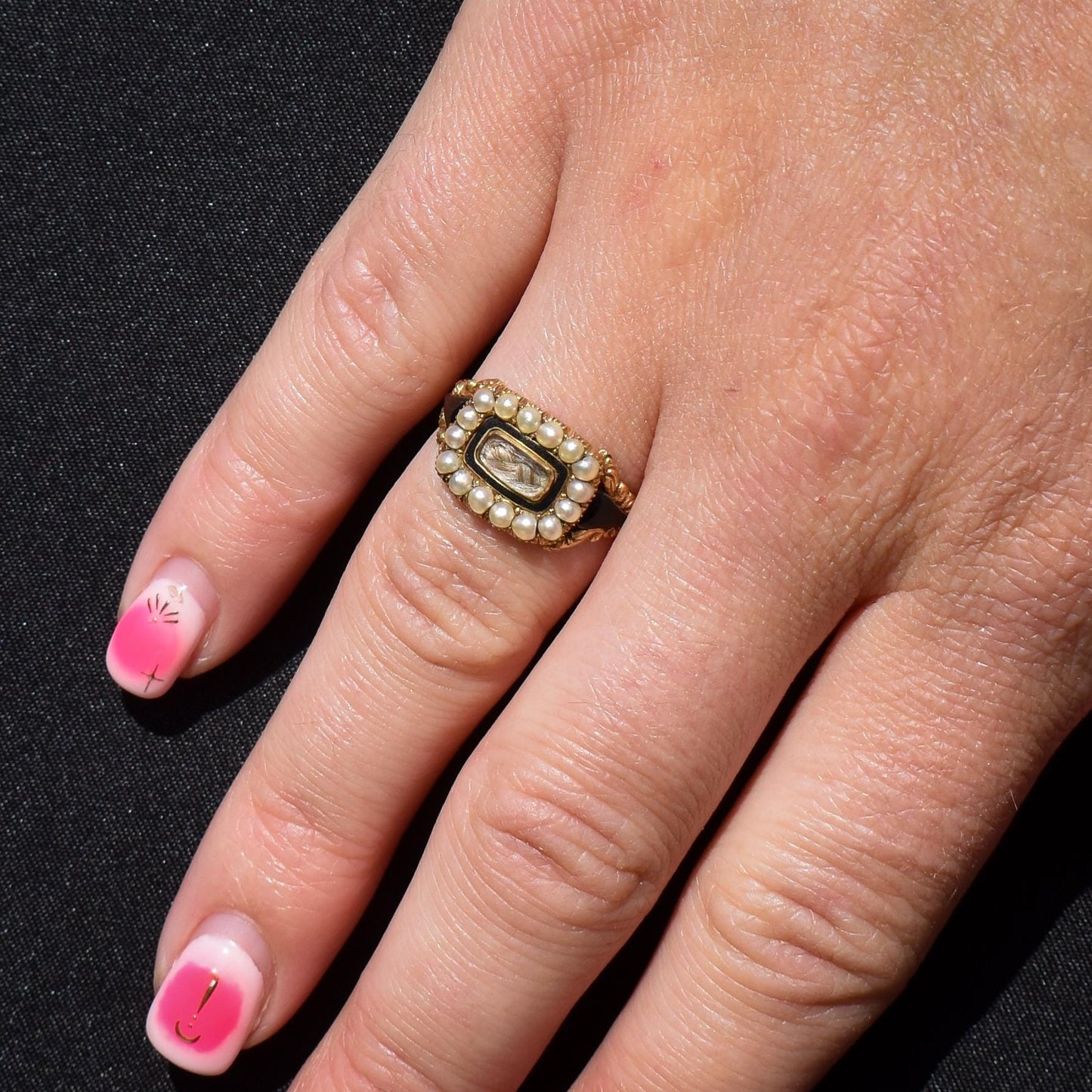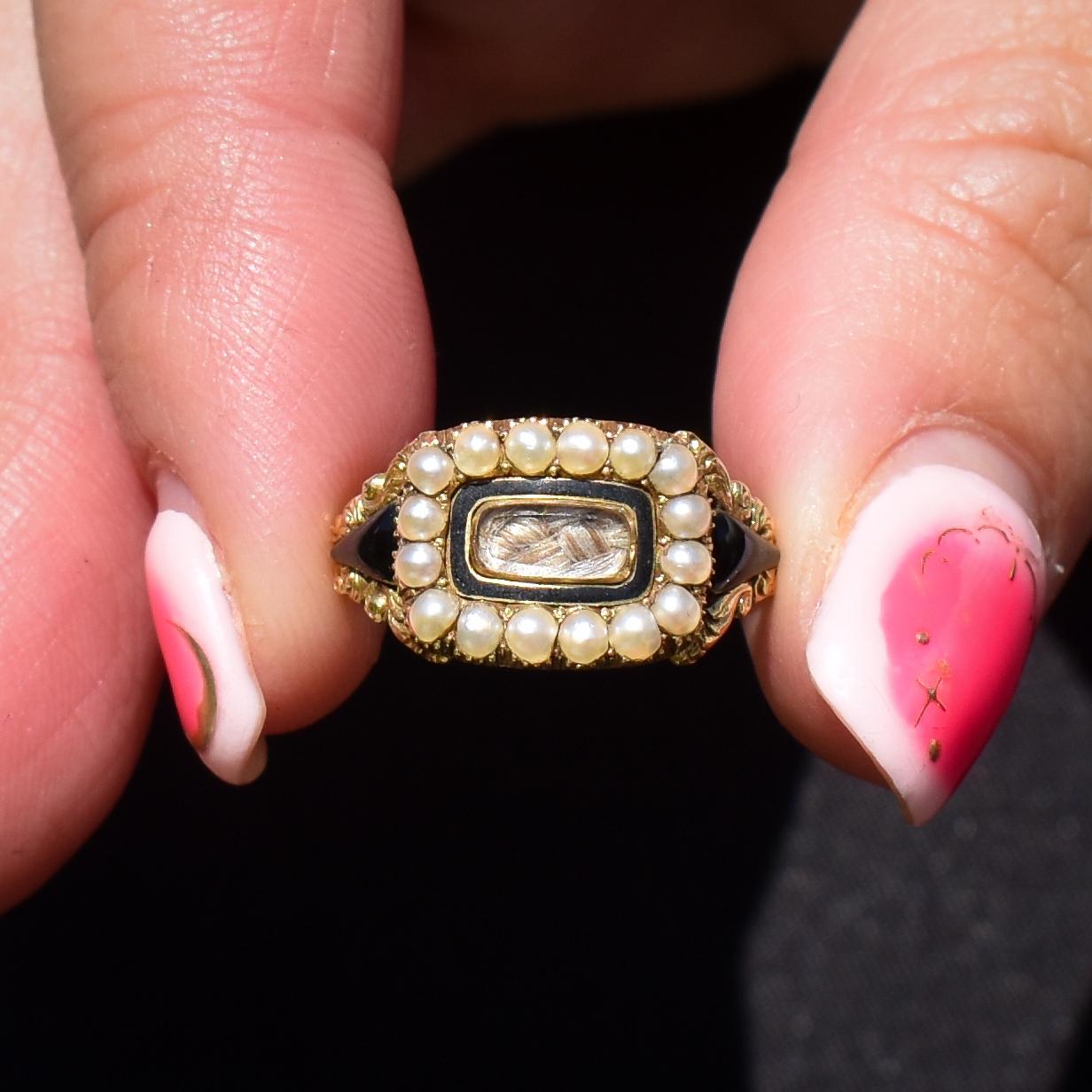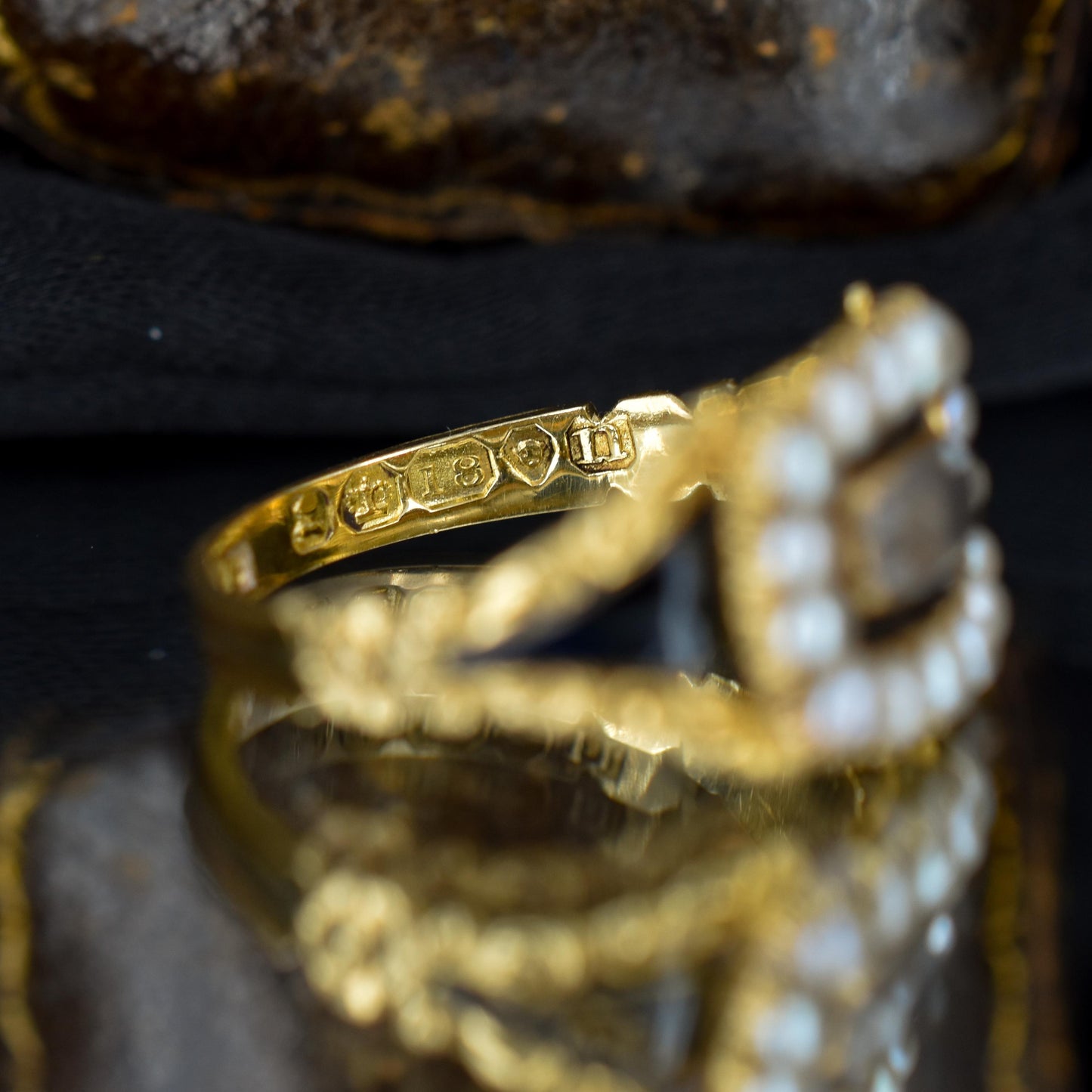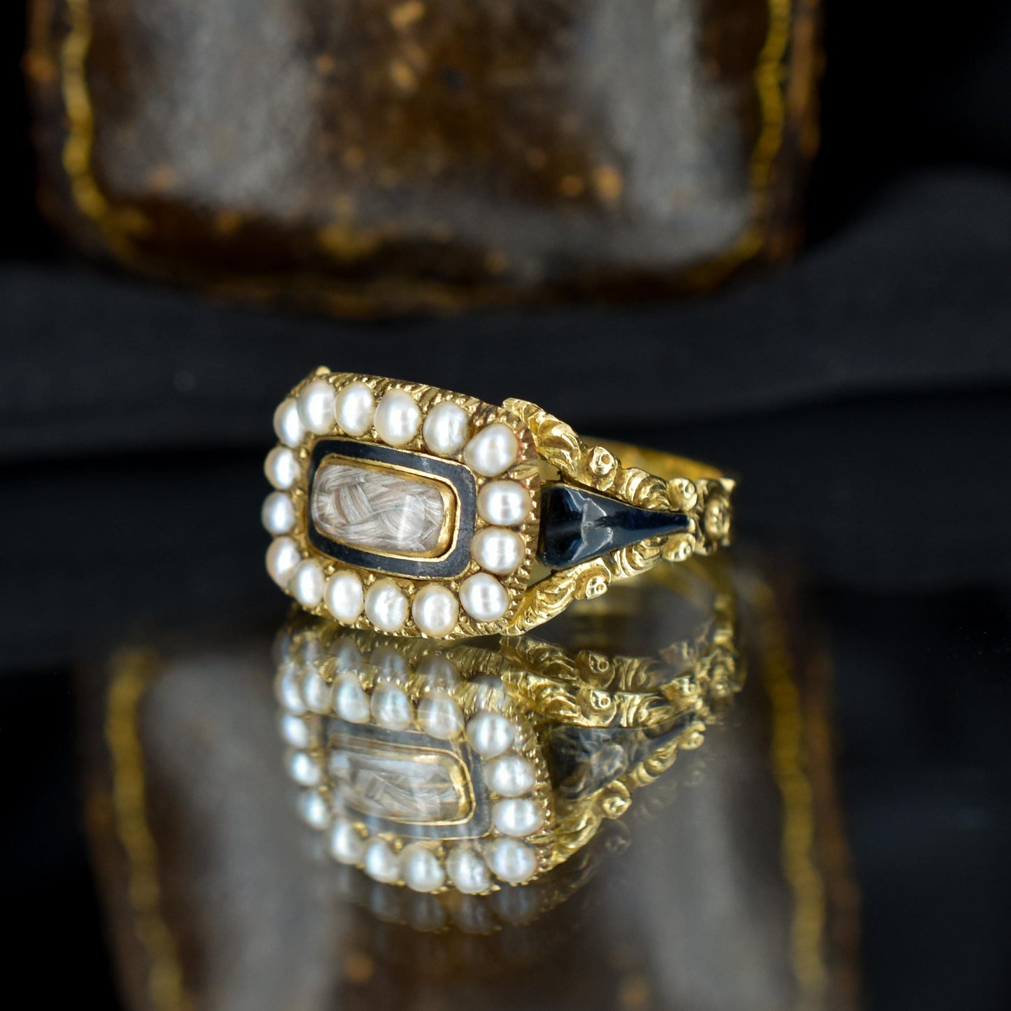 Antique '1828' Georgian Pearl 18ct Gold Hair Mourning Ring