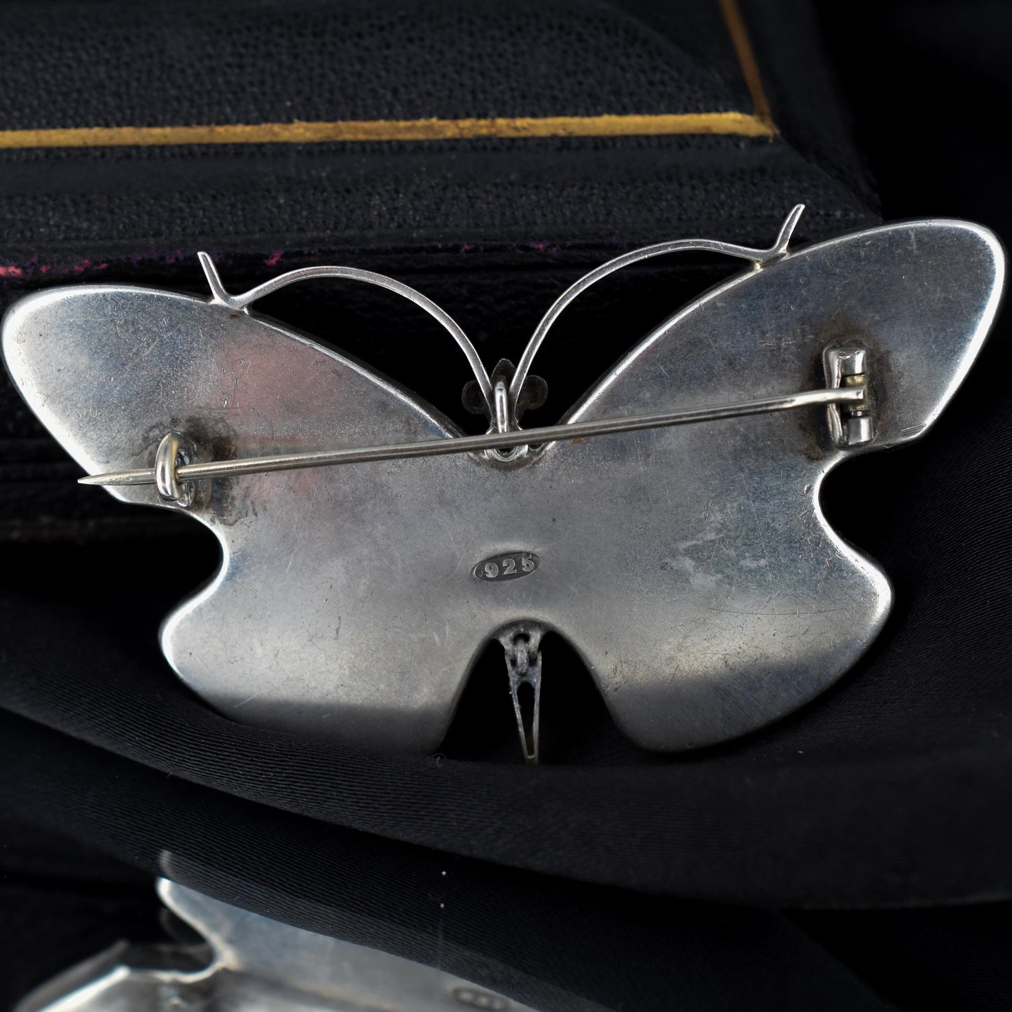 This Art Deco butterfly brooch remains in very good condition. The butterfly wing remains undamaged, and the glass frame and Sterling Silver setting securely hold the butterfly wings in place. The pin is sturdy with a great spring, securing the brooch perfectly. This butterfly brooch would make a wonderful gift for any animal lover, adding a splash of colour to your collection.