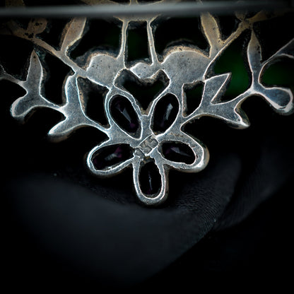 This breathtaking antique brooch is a true masterpiece, featuring a delicate floral bouquet adorned with dazzling Paste stones beautifully crafted in sterling silver.