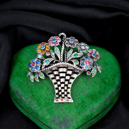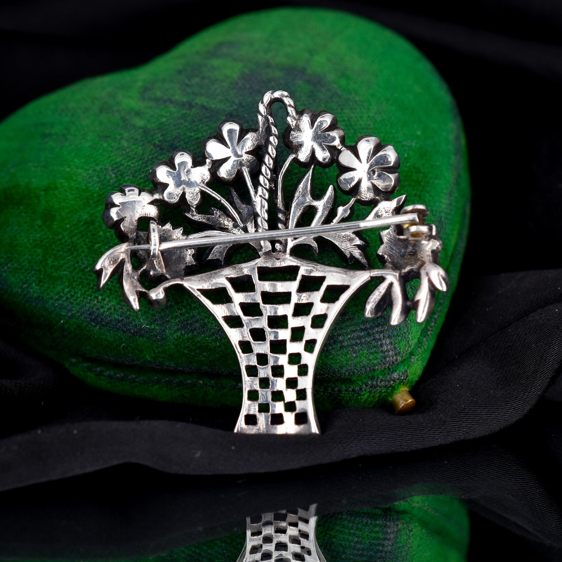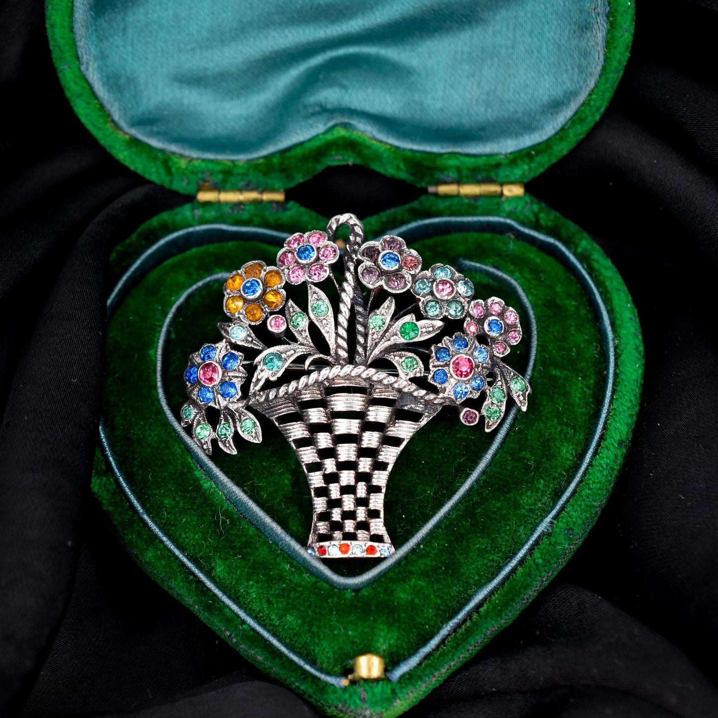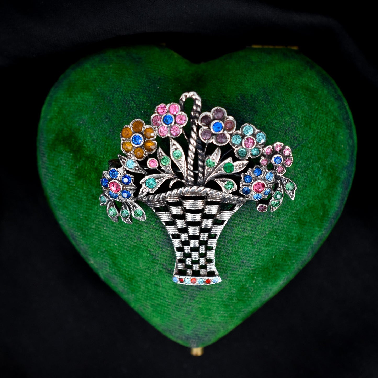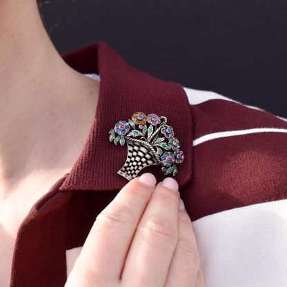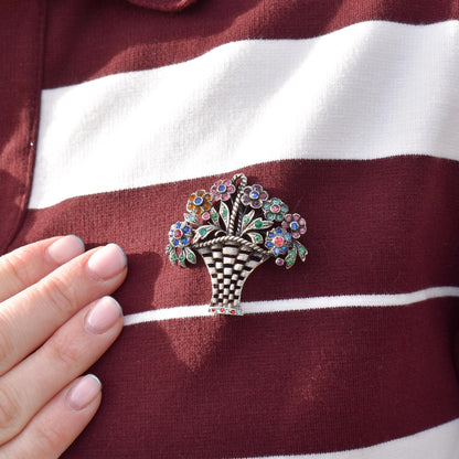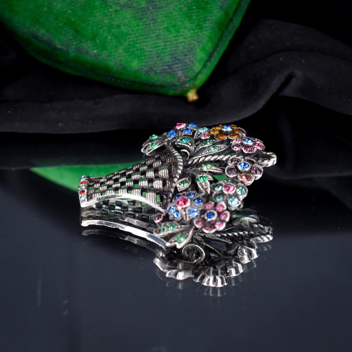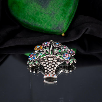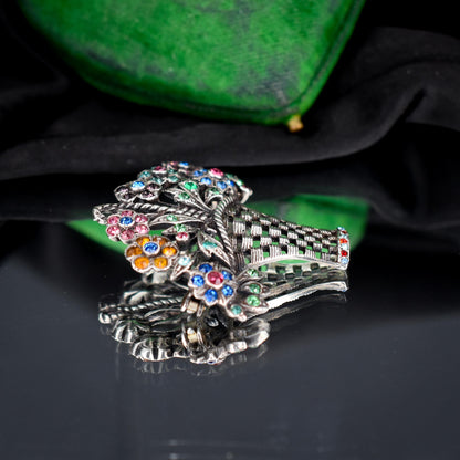 Antique Colourful Paste Sterling Silver Flower Basket Brooch Pin | Giardinetti