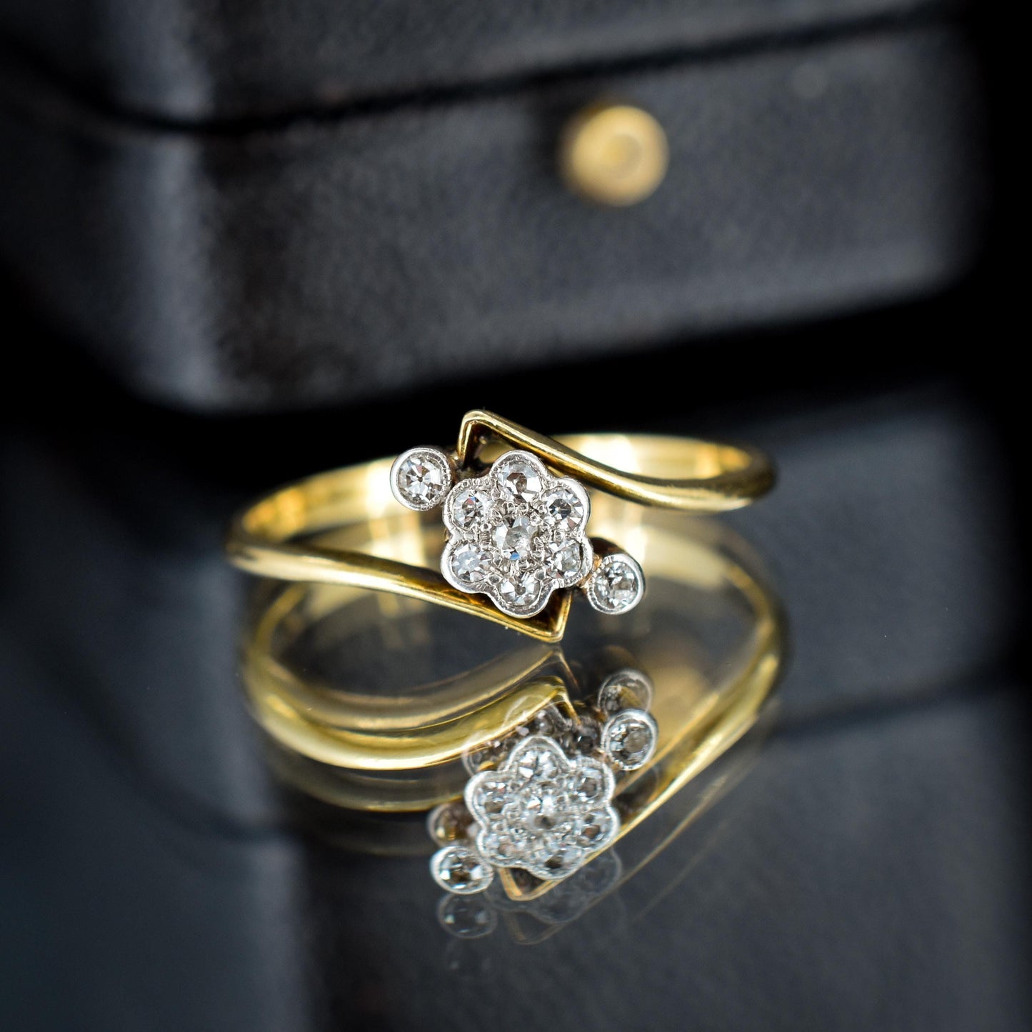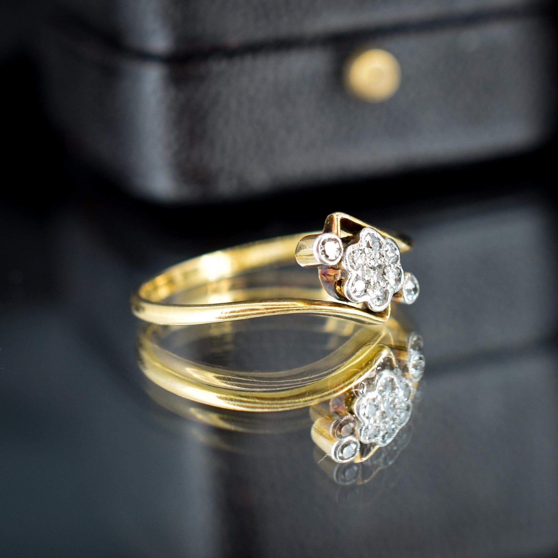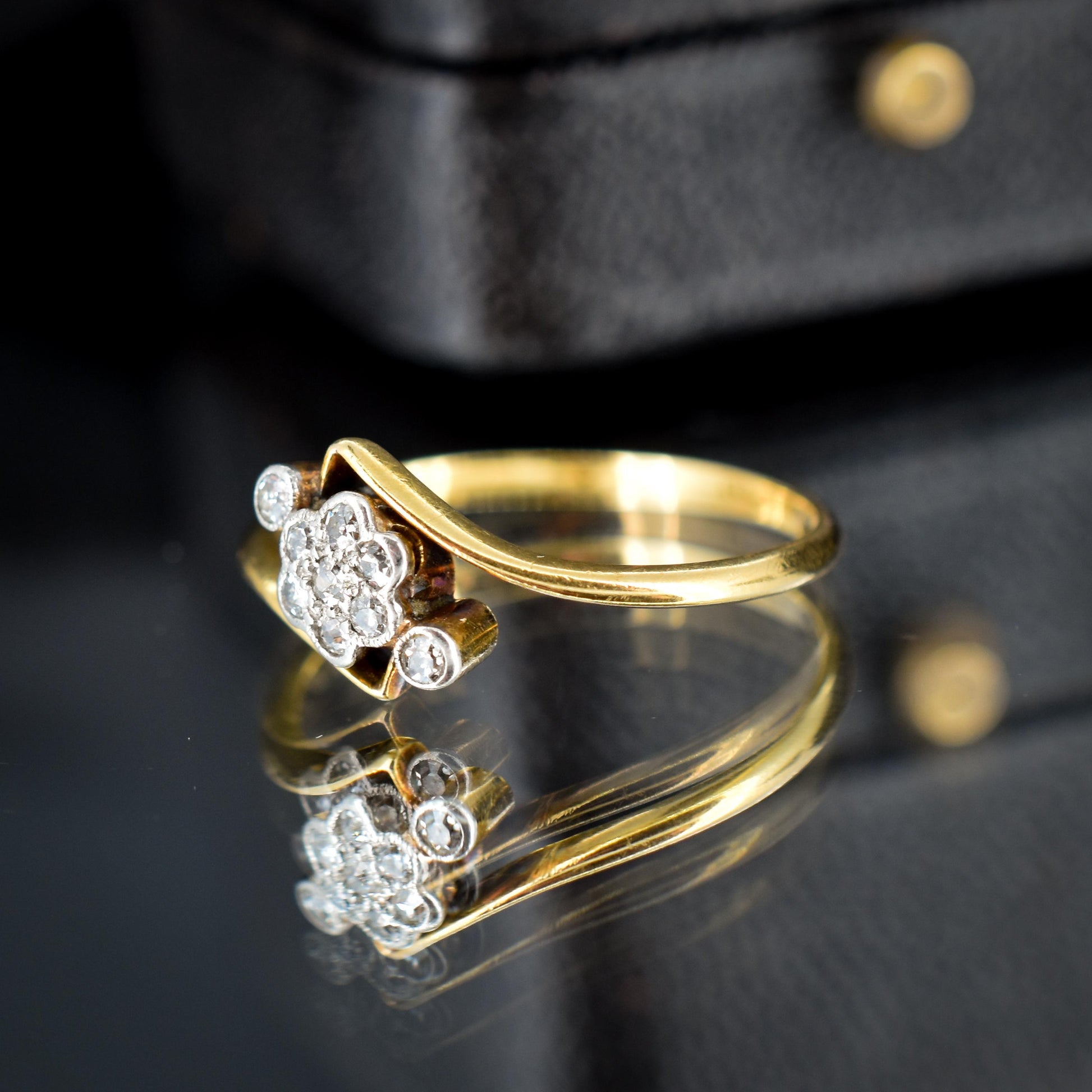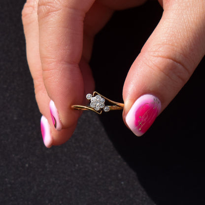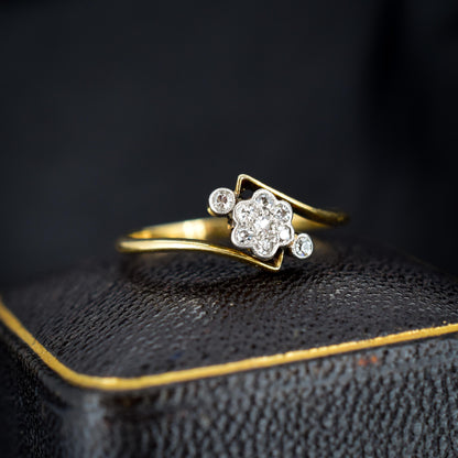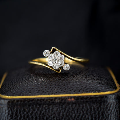 Antique Diamond Cluster 18ct Yellow Gold Twist Ring | Art Deco
