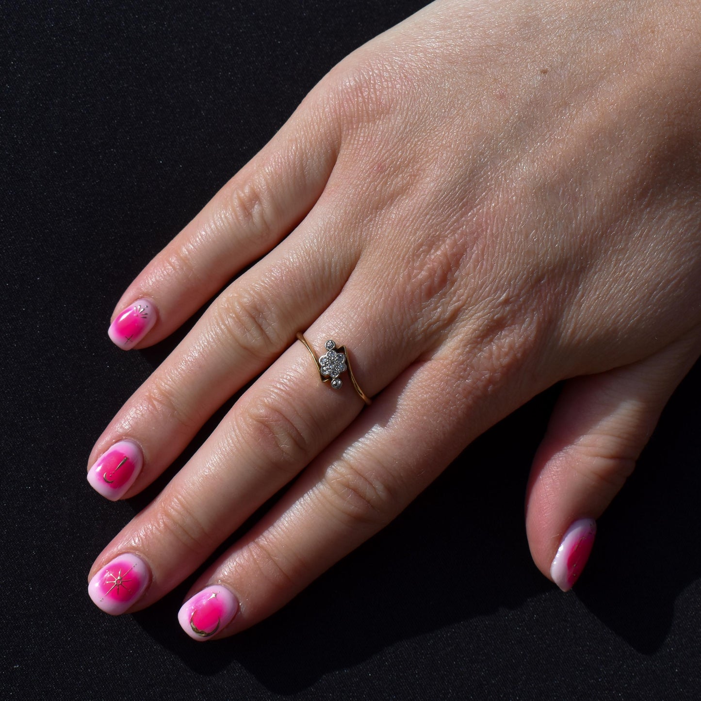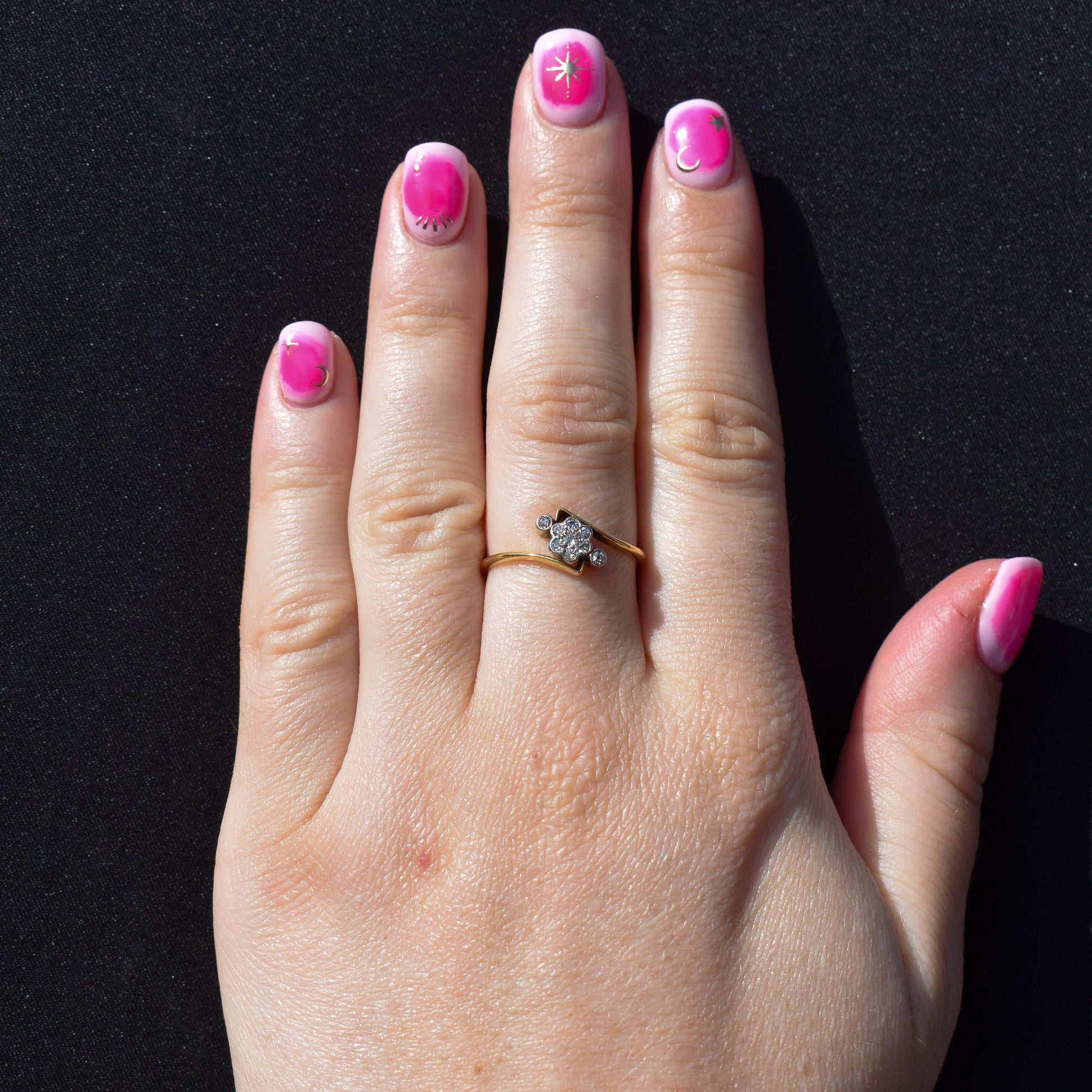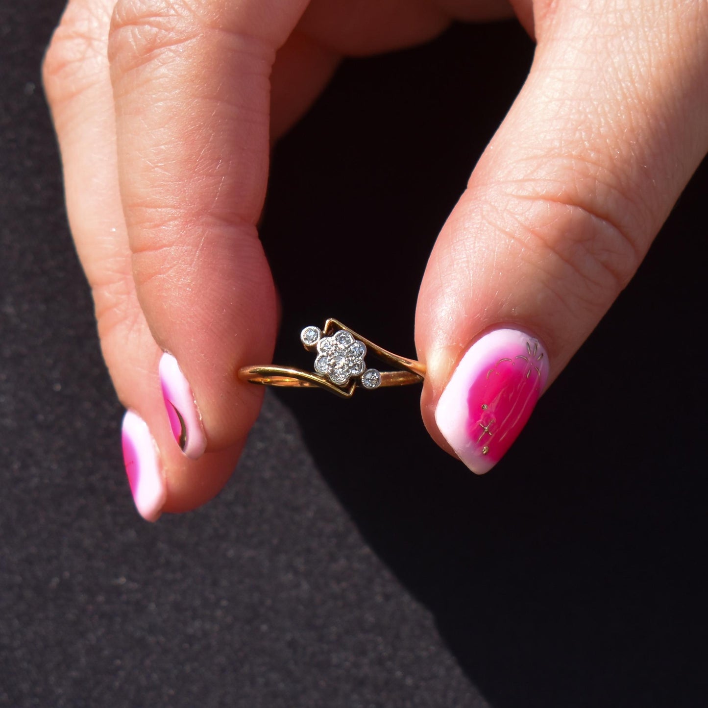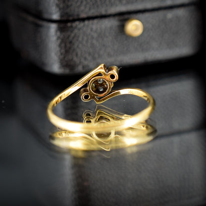 Antique Diamond Cluster 18ct Yellow Gold Twist Ring | Art Deco
