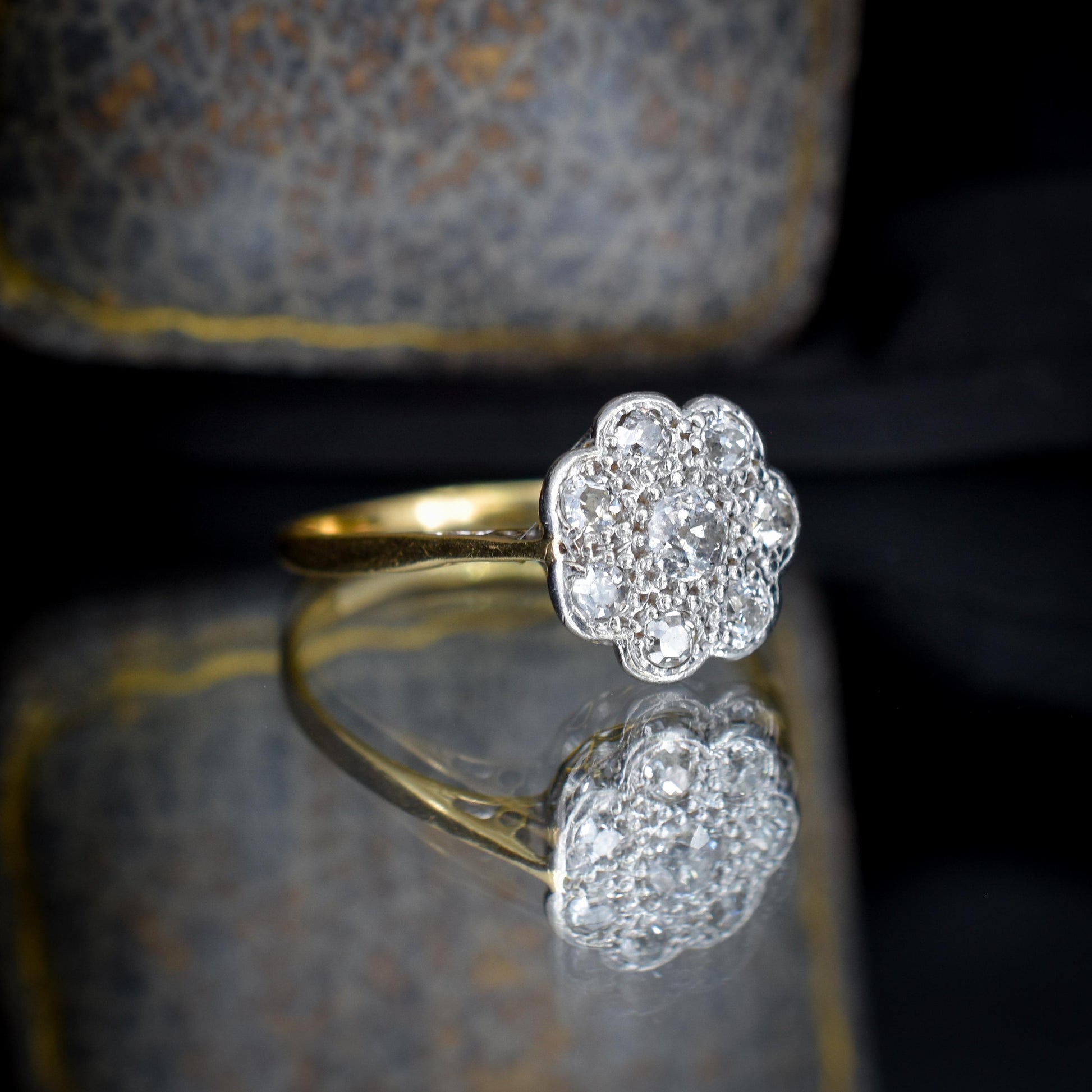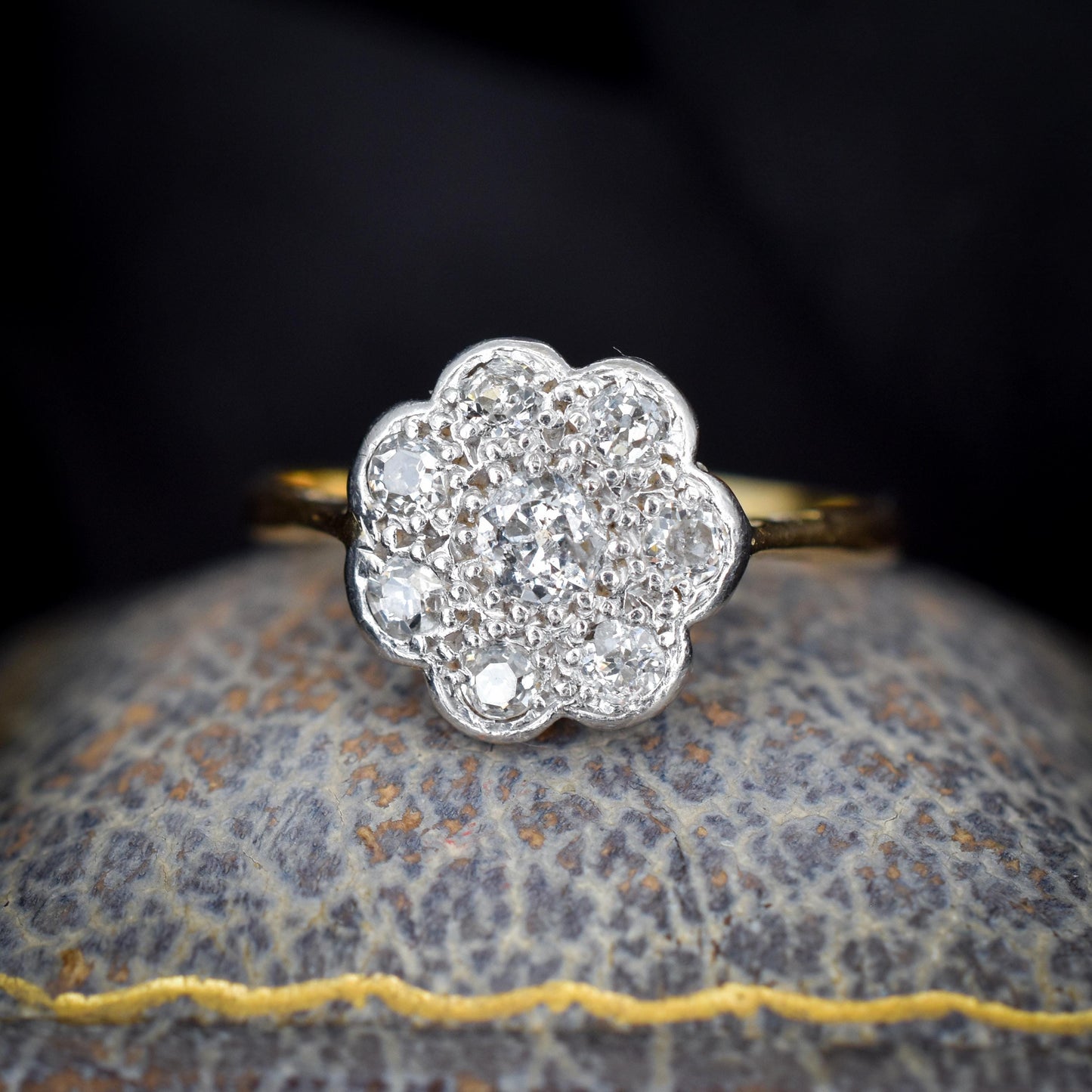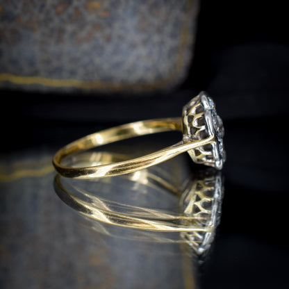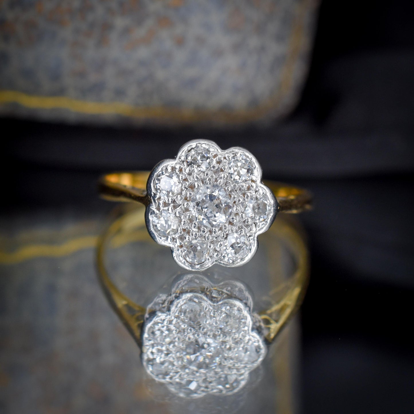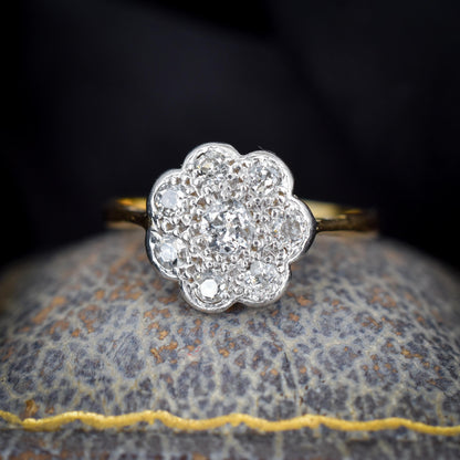 Antique Diamond Cluster Daisy 18ct Yellow Gold Ring