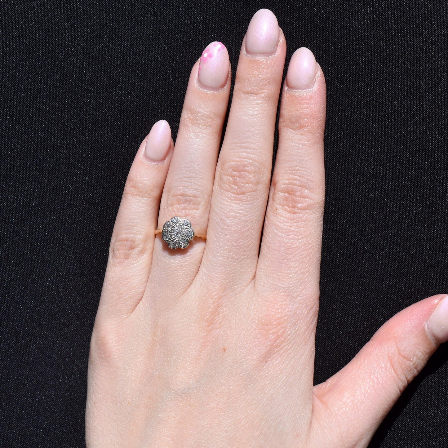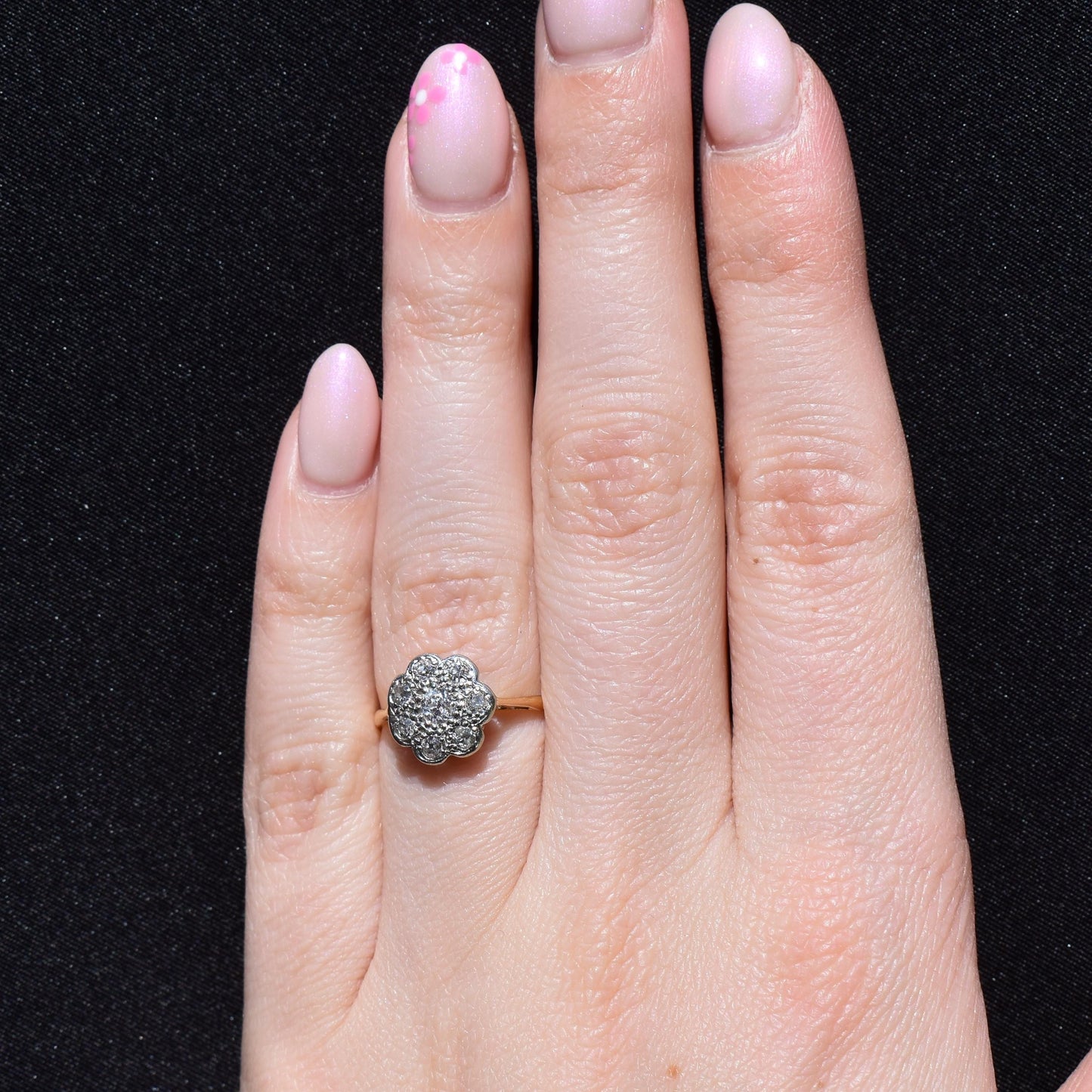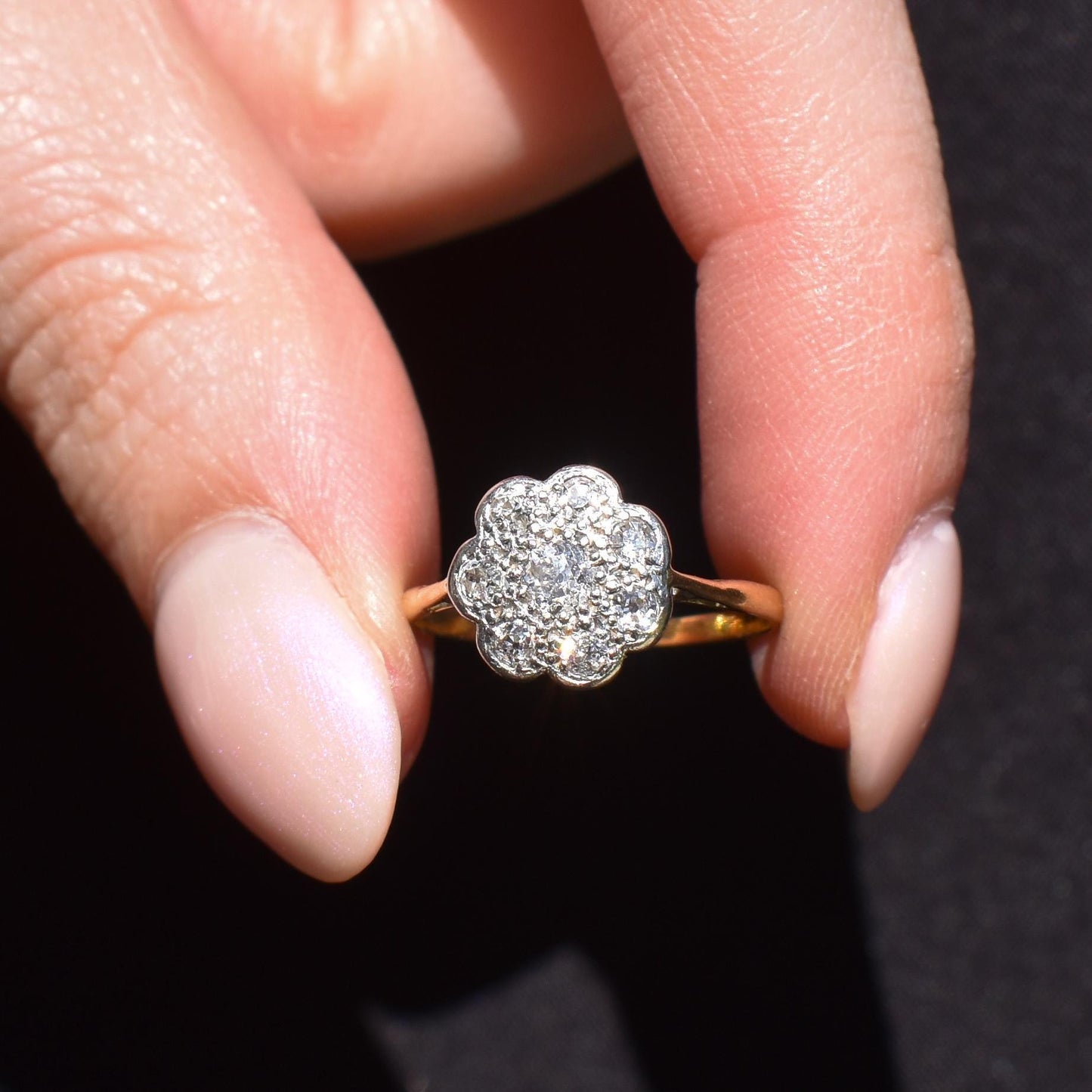 Antique Diamond Cluster Daisy 18ct Yellow Gold Ring