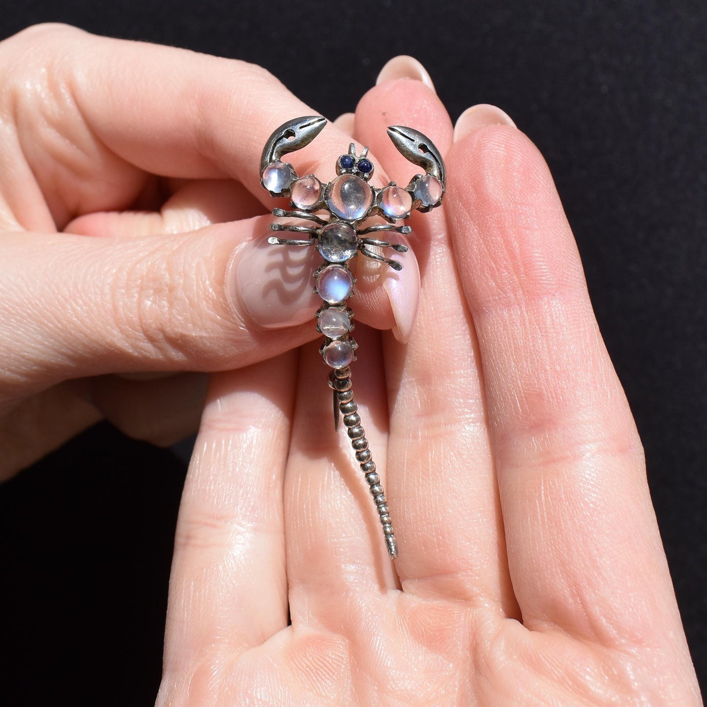 Antique Edwardian Sterling Silver Moonstone Scorpion Brooch Pin