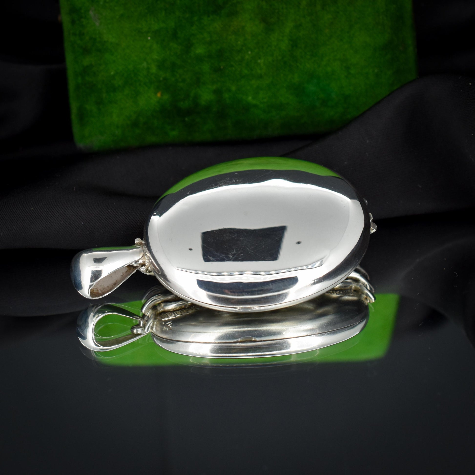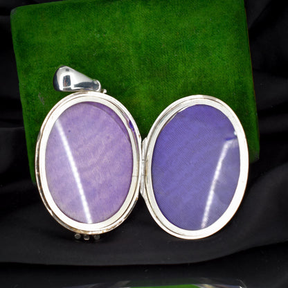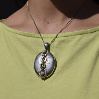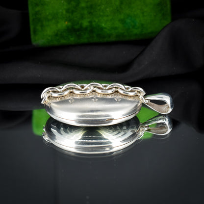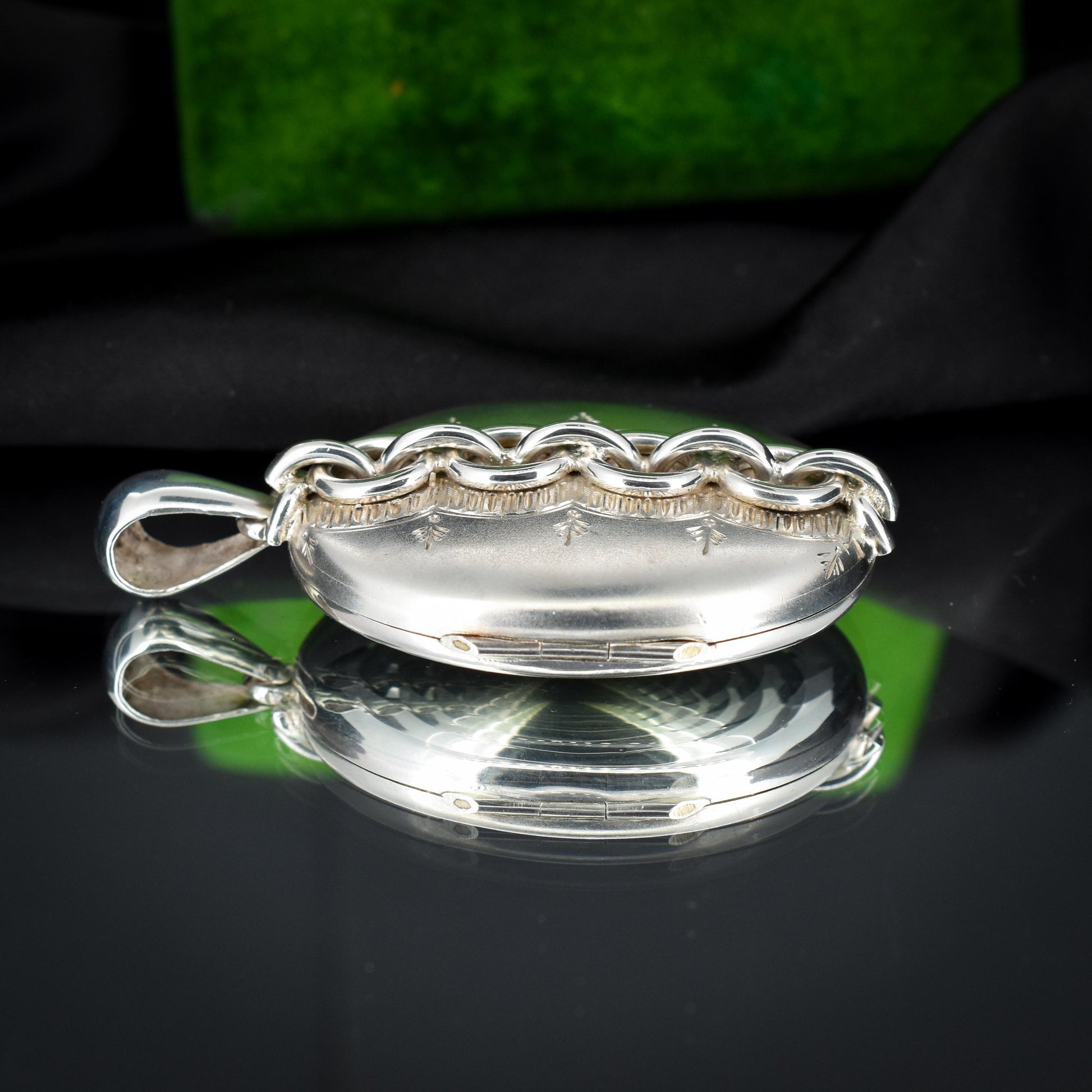 Antique Heavy Sterling Silver Oval Patterned Photo Locket Pendant