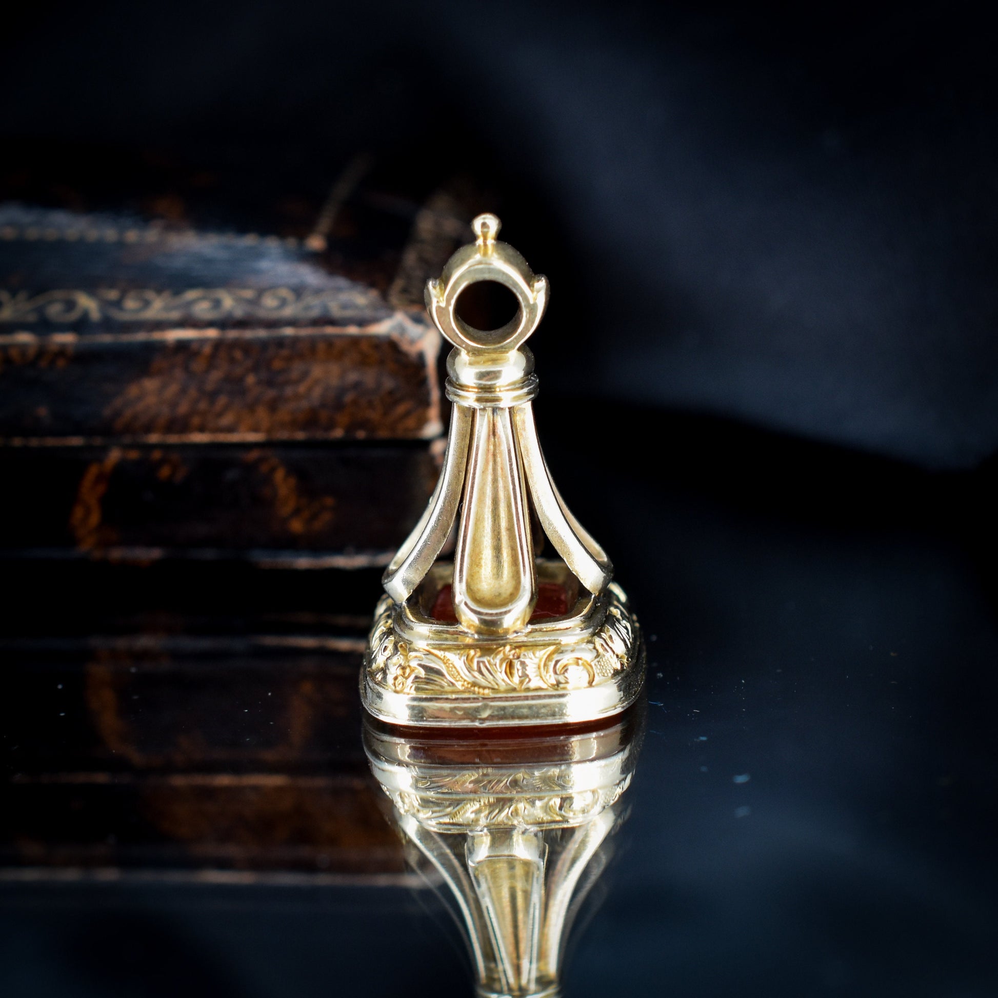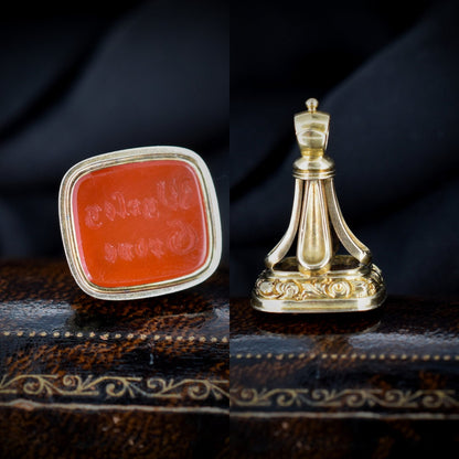 Antique 'Wyrley Grove' Intaglio Gold Bell Fob Seal Pendant | Victorian