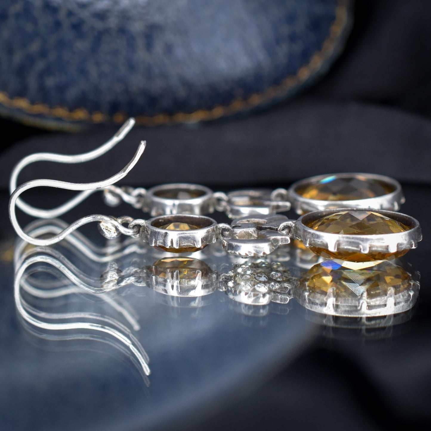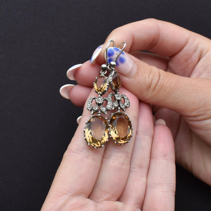 Antique Yellow Paste Silver Triple Drop Dangle Earrings