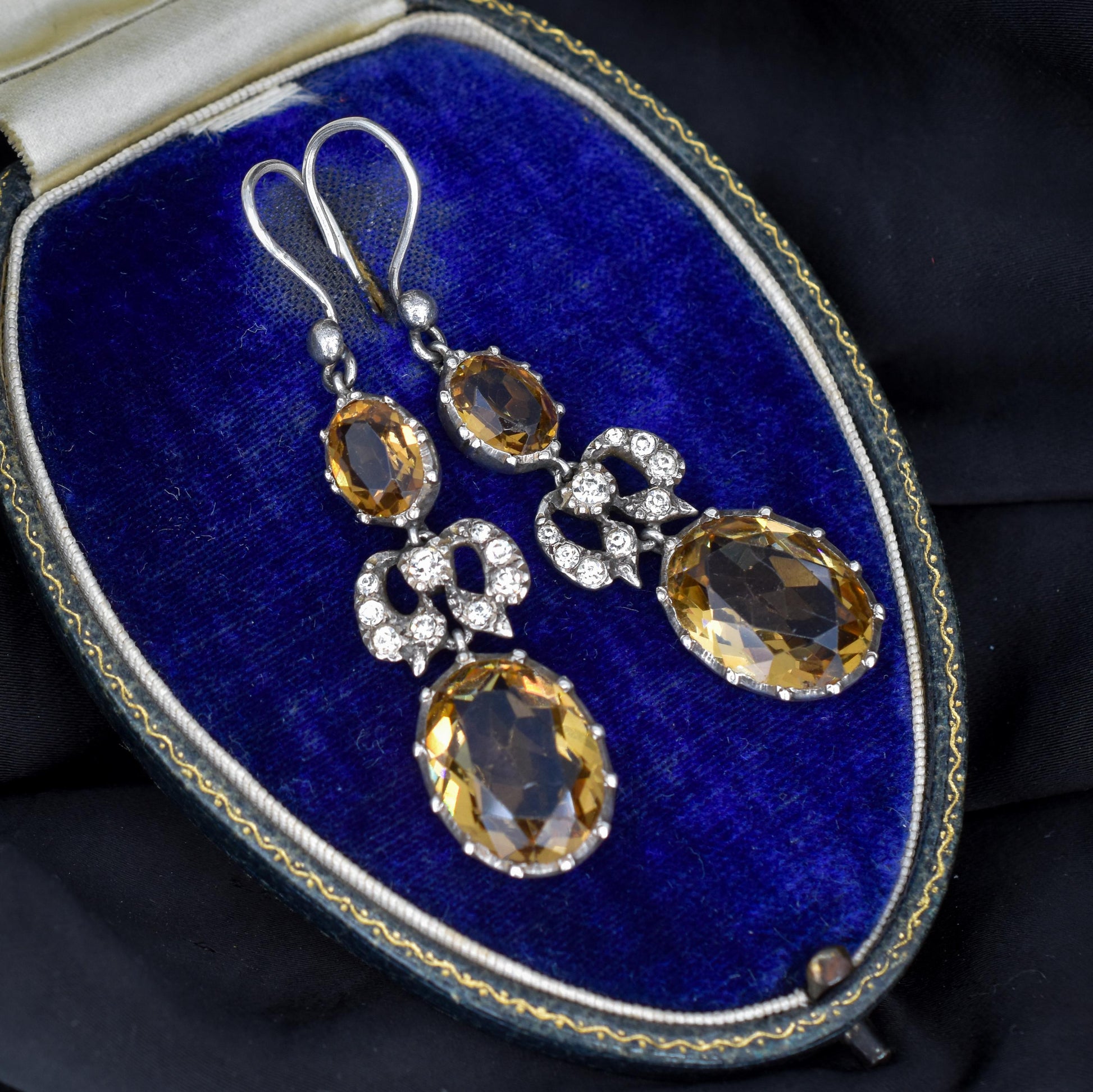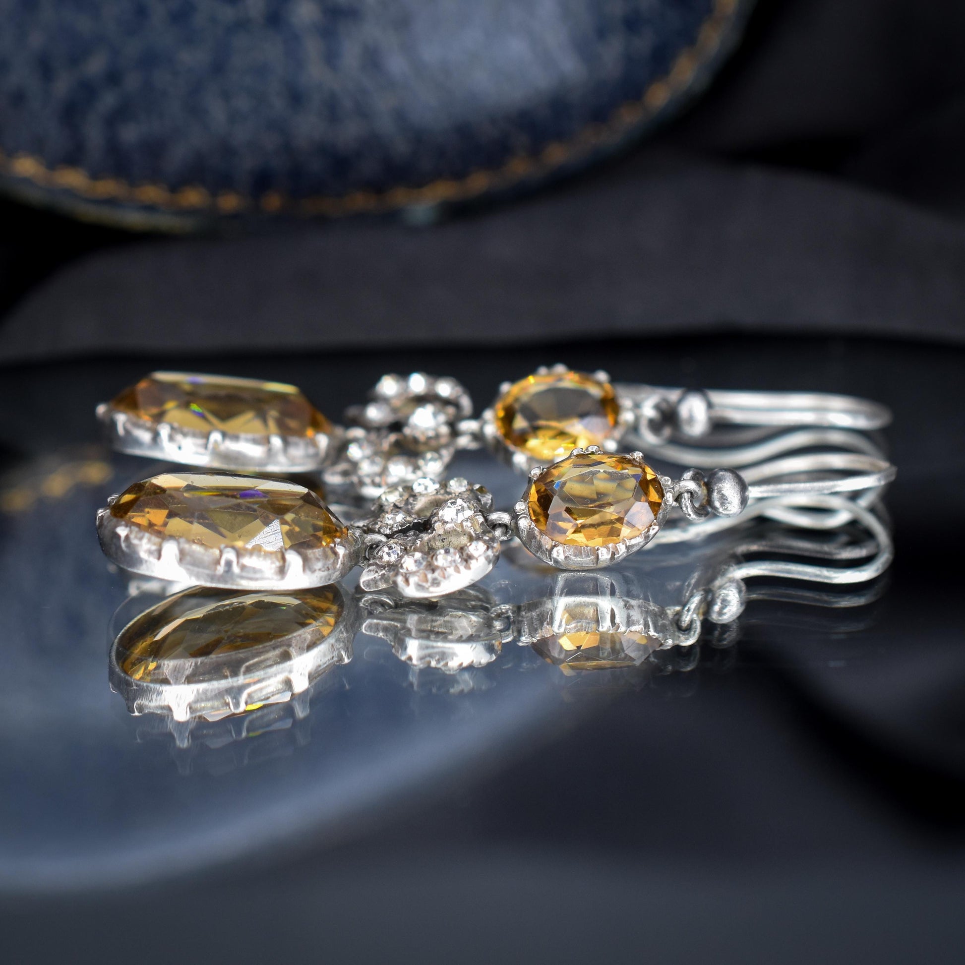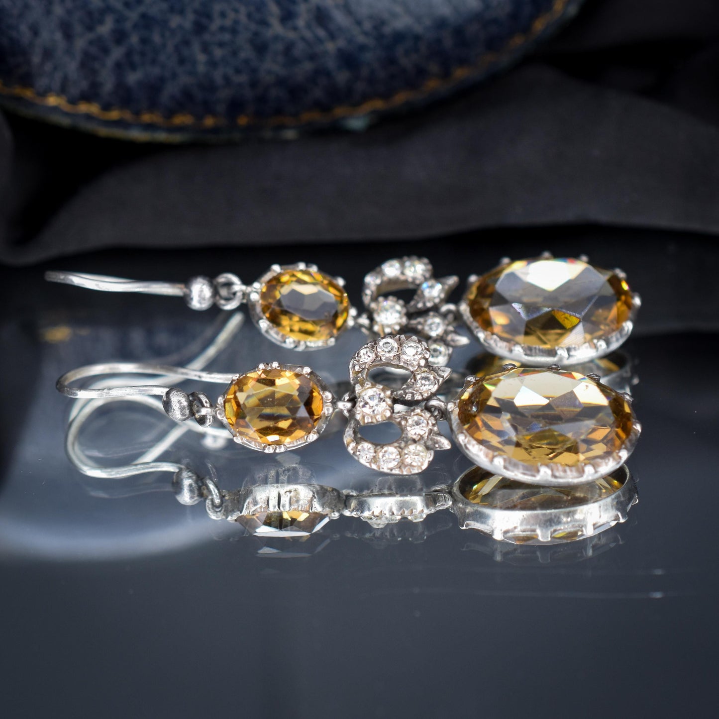 These stunning Antique Paste Earrings feature two wonderful oval-cut yellow Paste stones with clear Paste stones throughout, set in Sterling Silver.