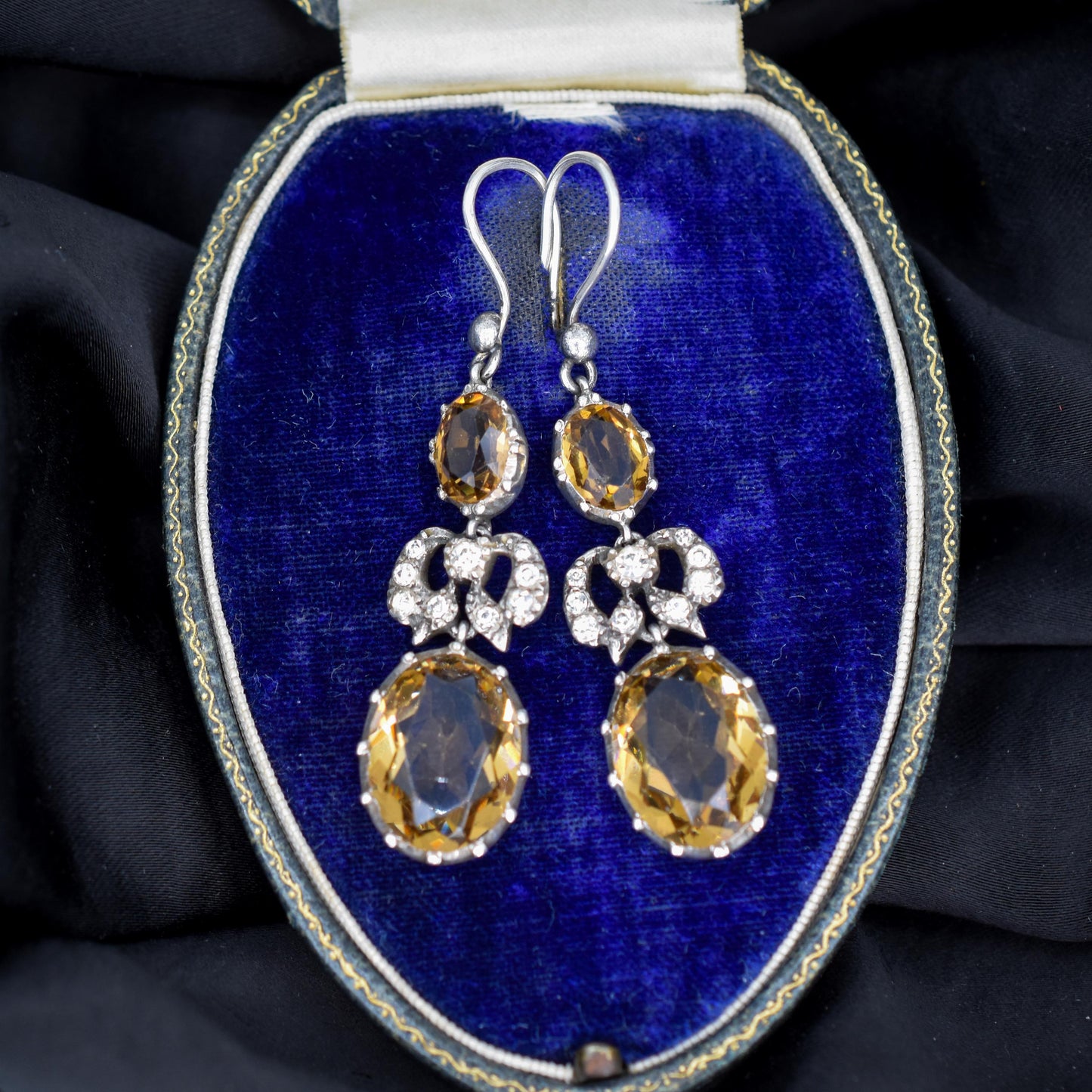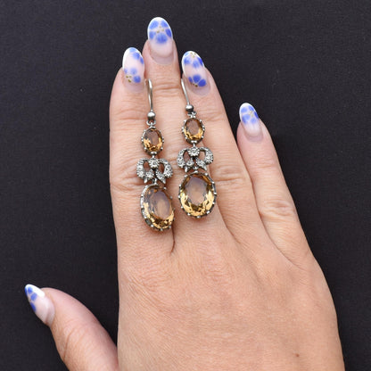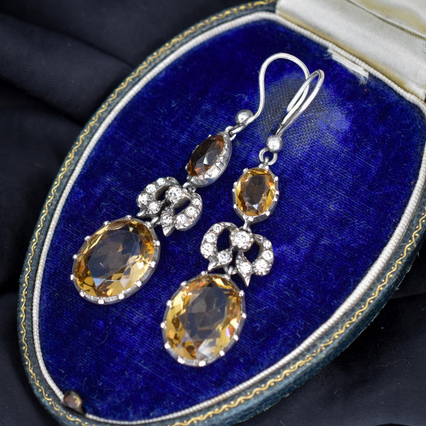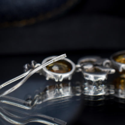 These stunning Antique Paste Earrings feature two wonderful oval-cut yellow Paste stones with clear Paste stones throughout, set in Sterling Silver.