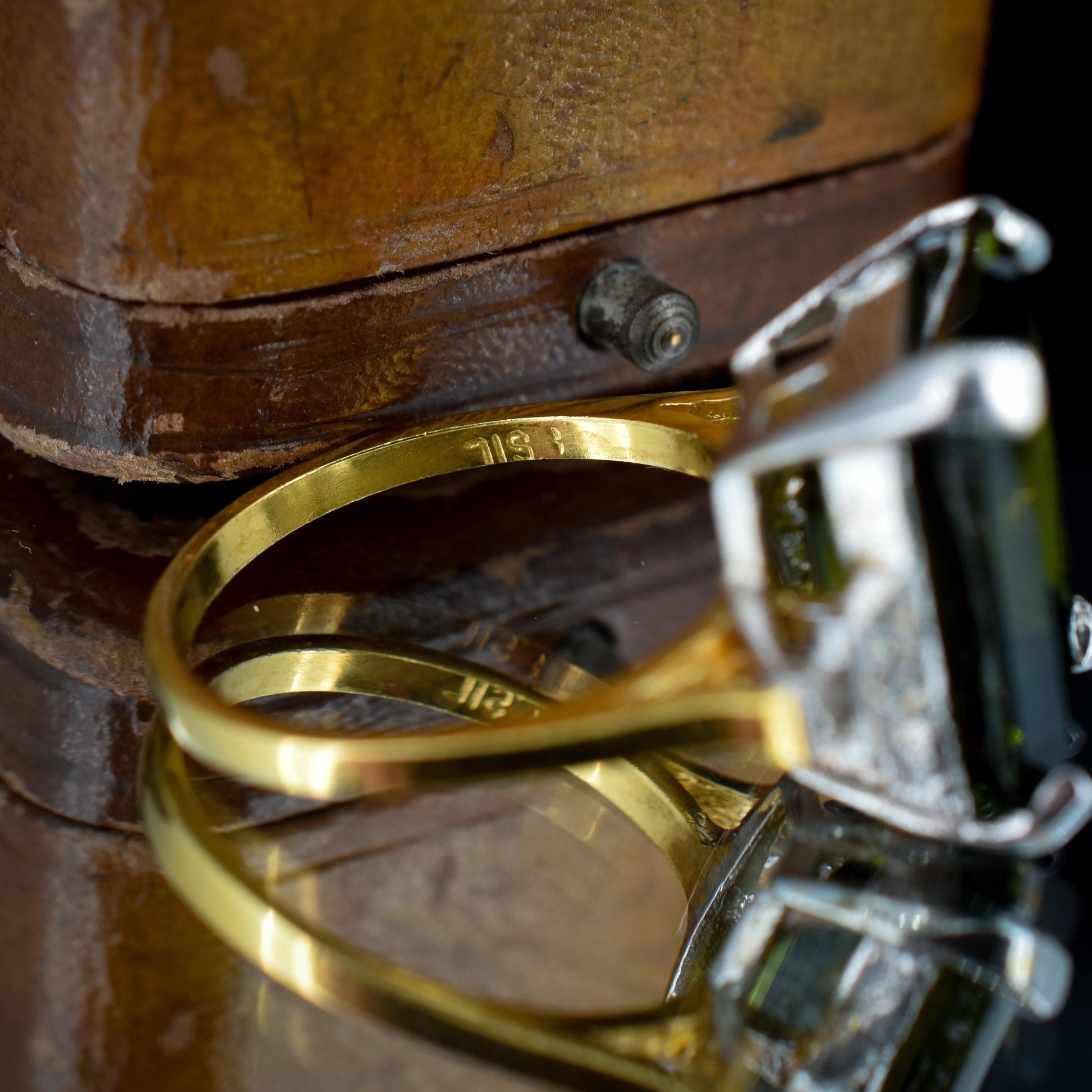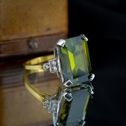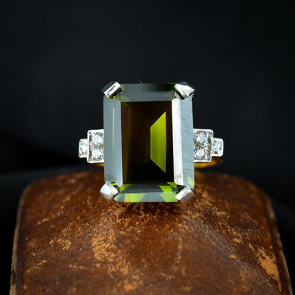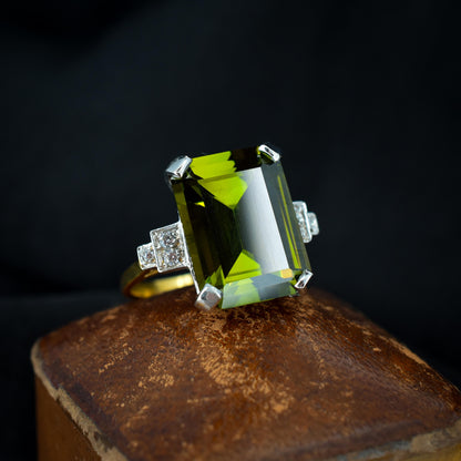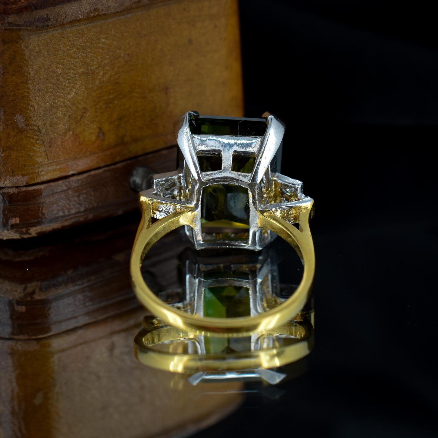 Olive Green Paste 18ct Gold on Silver Cocktail Statement Ring | Art Deco Style