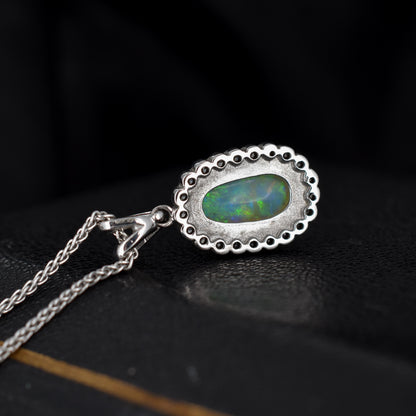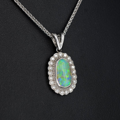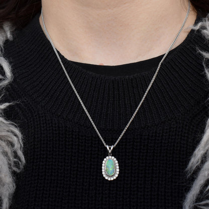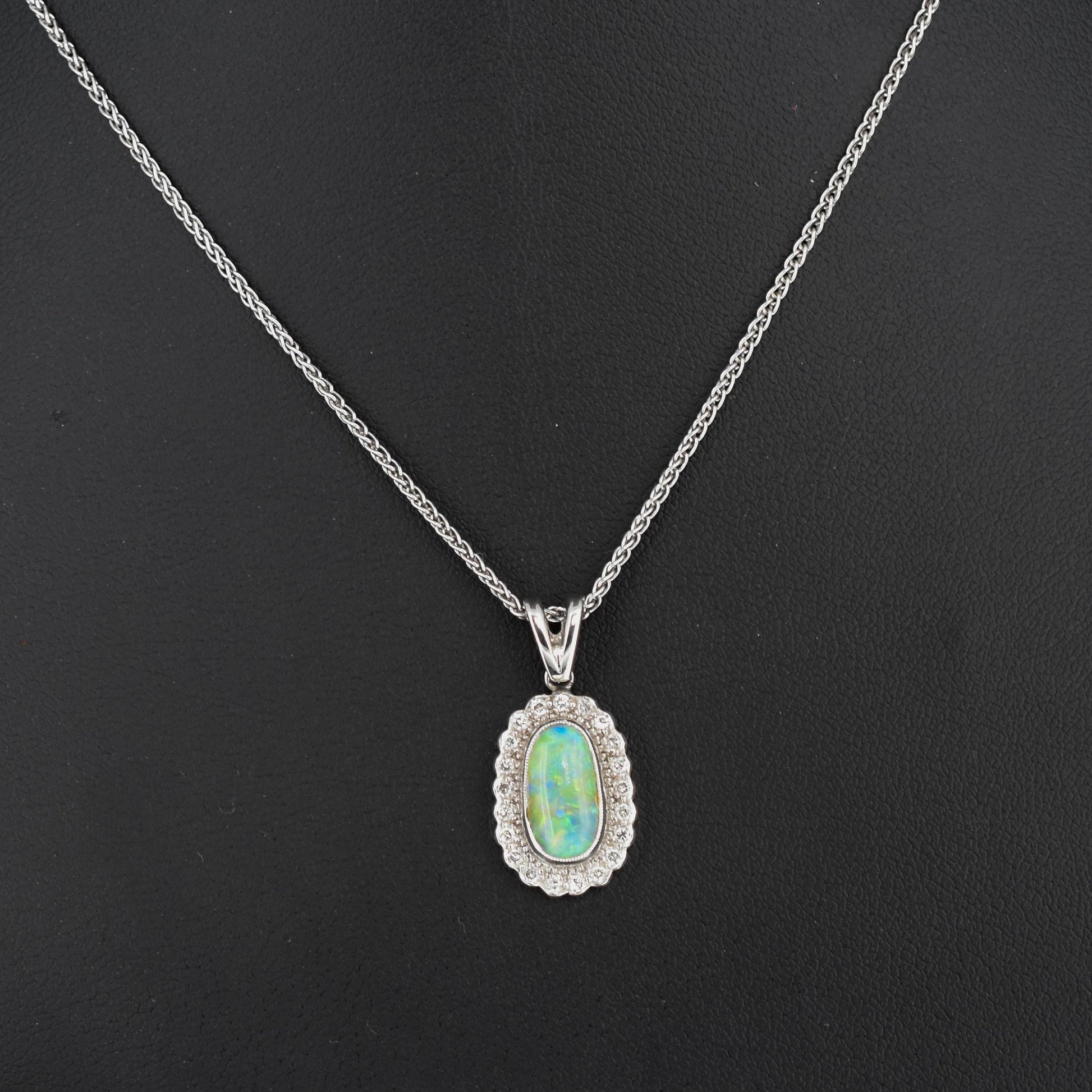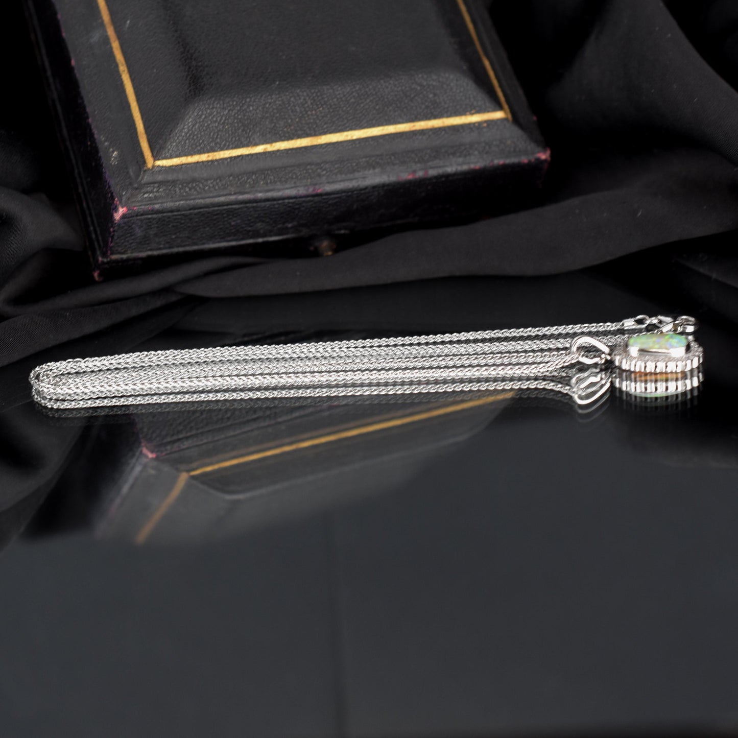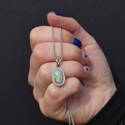 Opal and Diamond 18ct White Gold Pendant Necklace | 17.75"