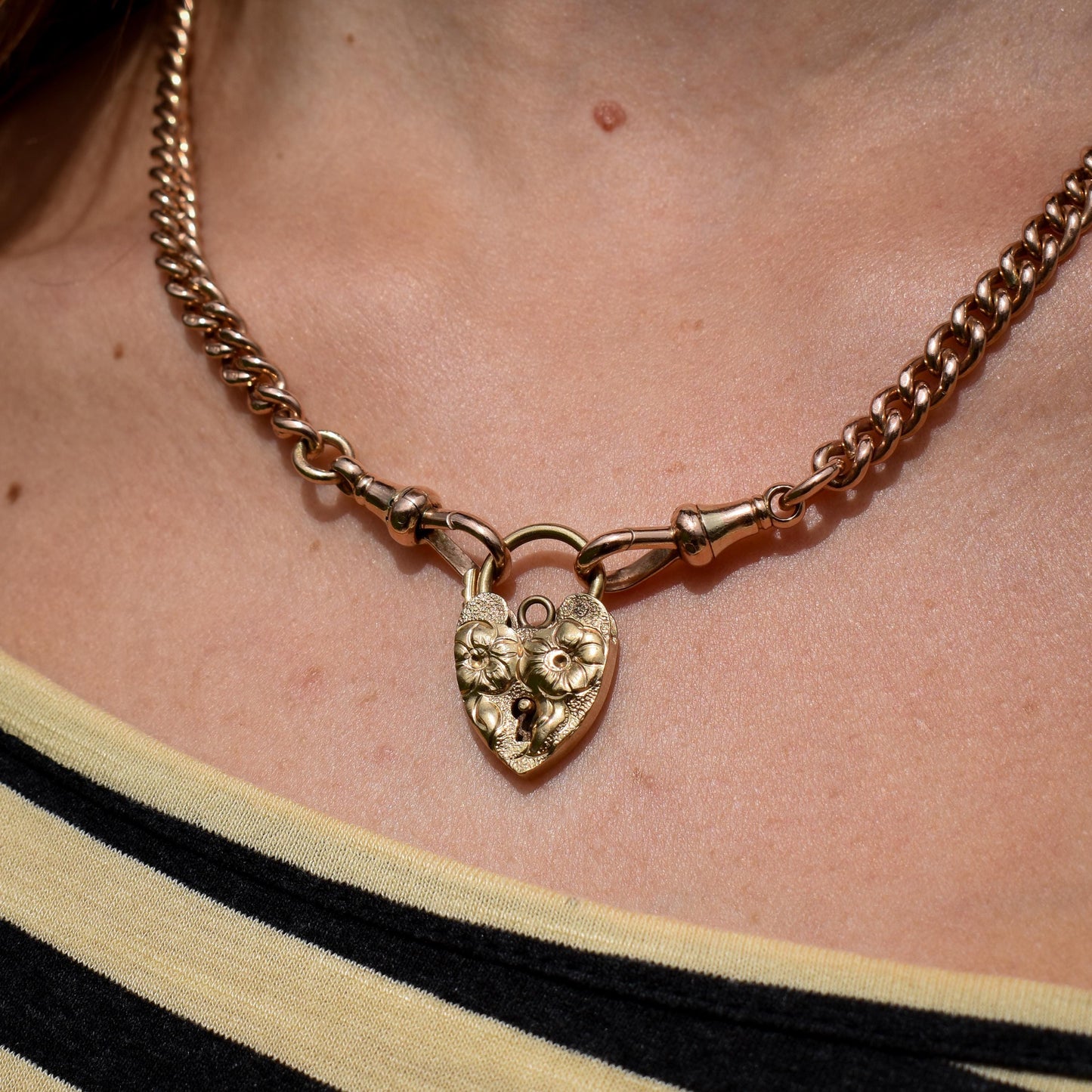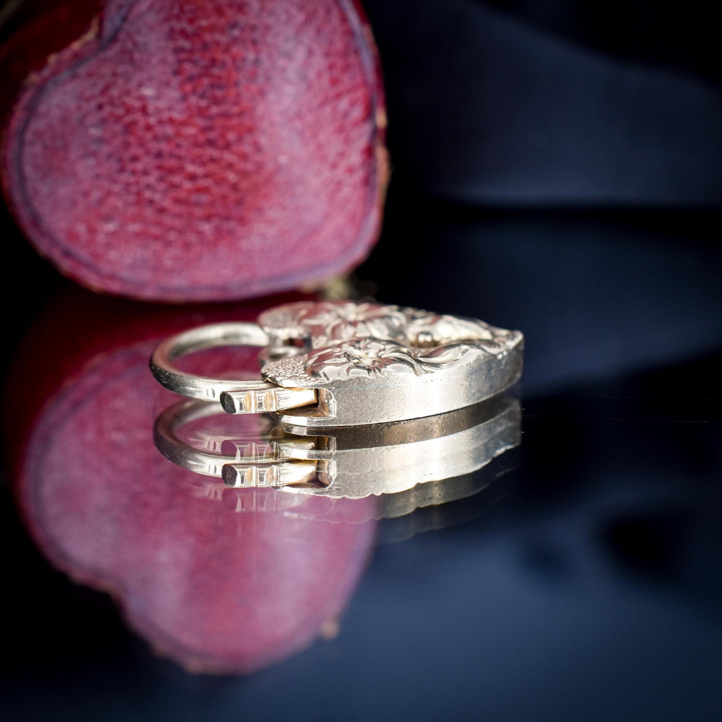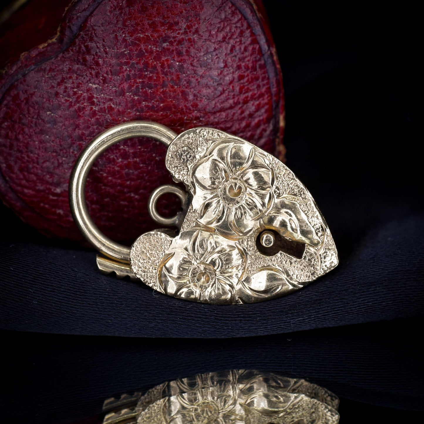 This pretty heart padlock charm is beautifully engraved to the front of the padlock featuring flowers and is modelled in 9ct Gold, hallmarked for 9ct (375) dating to Birmingham, 1974.