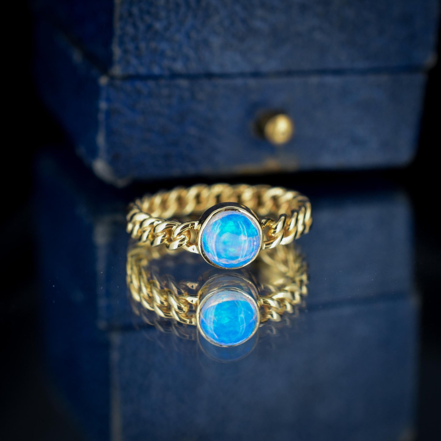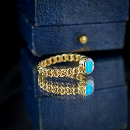 Antique Opal 15ct Gold Curb Link Chain Ring
