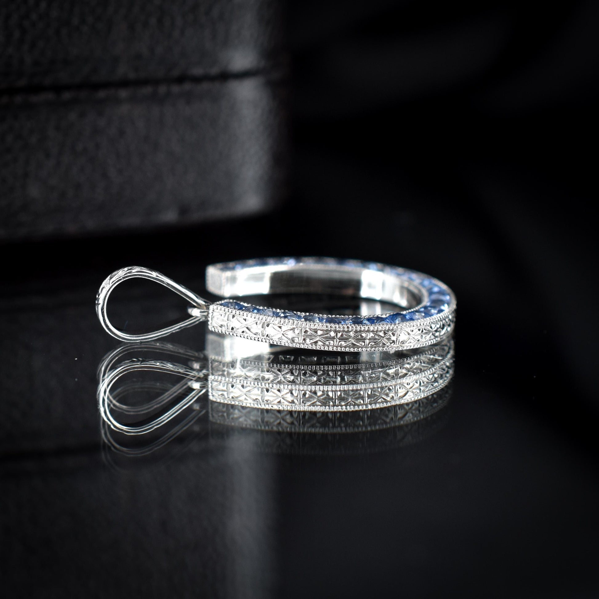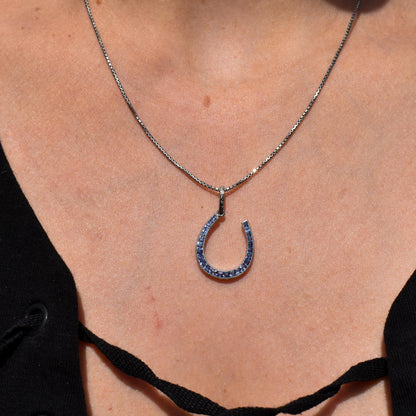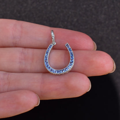 French Cut Ceylon Sapphire Horseshoe Platinum Charm Pendant - 0.70ct
