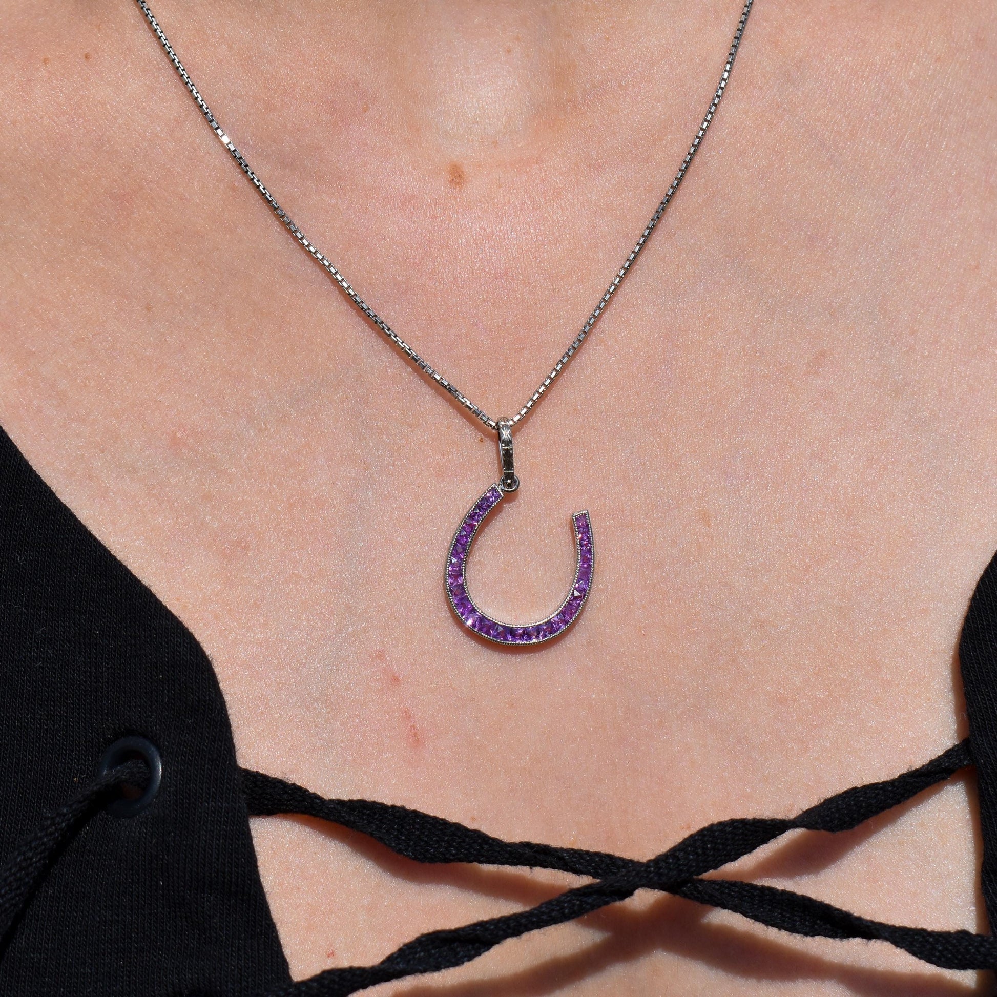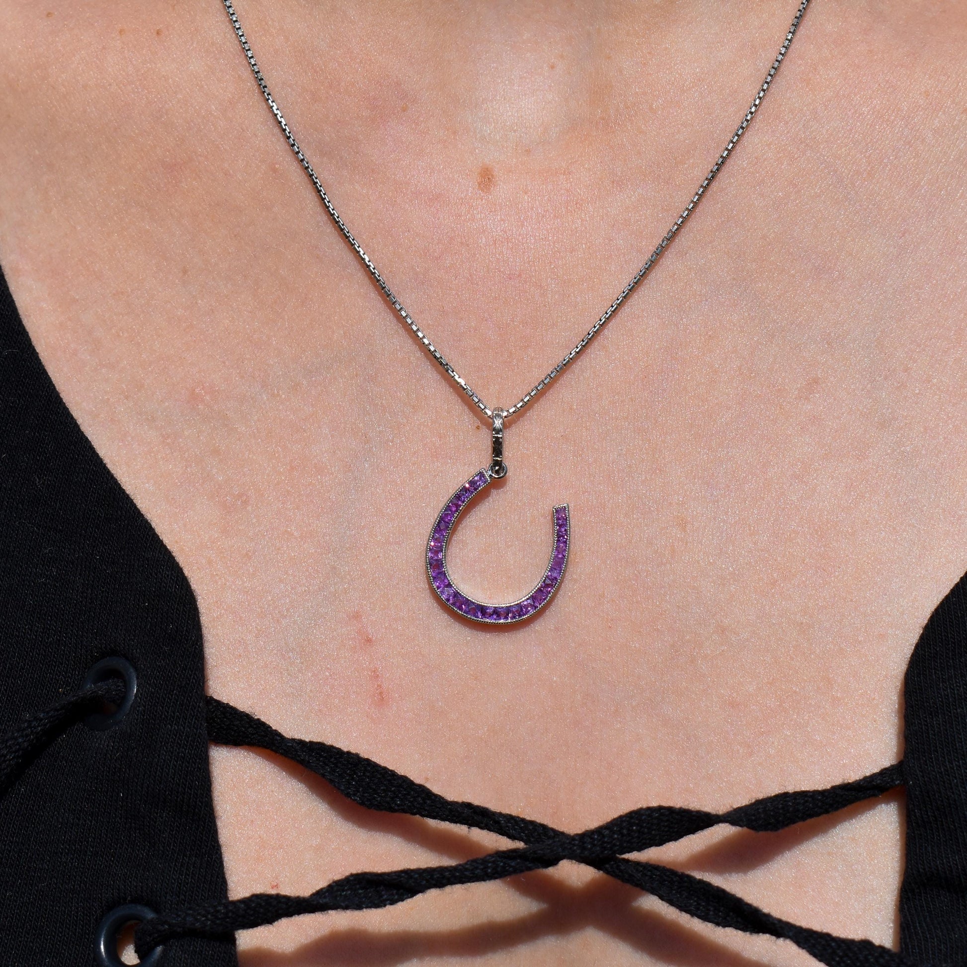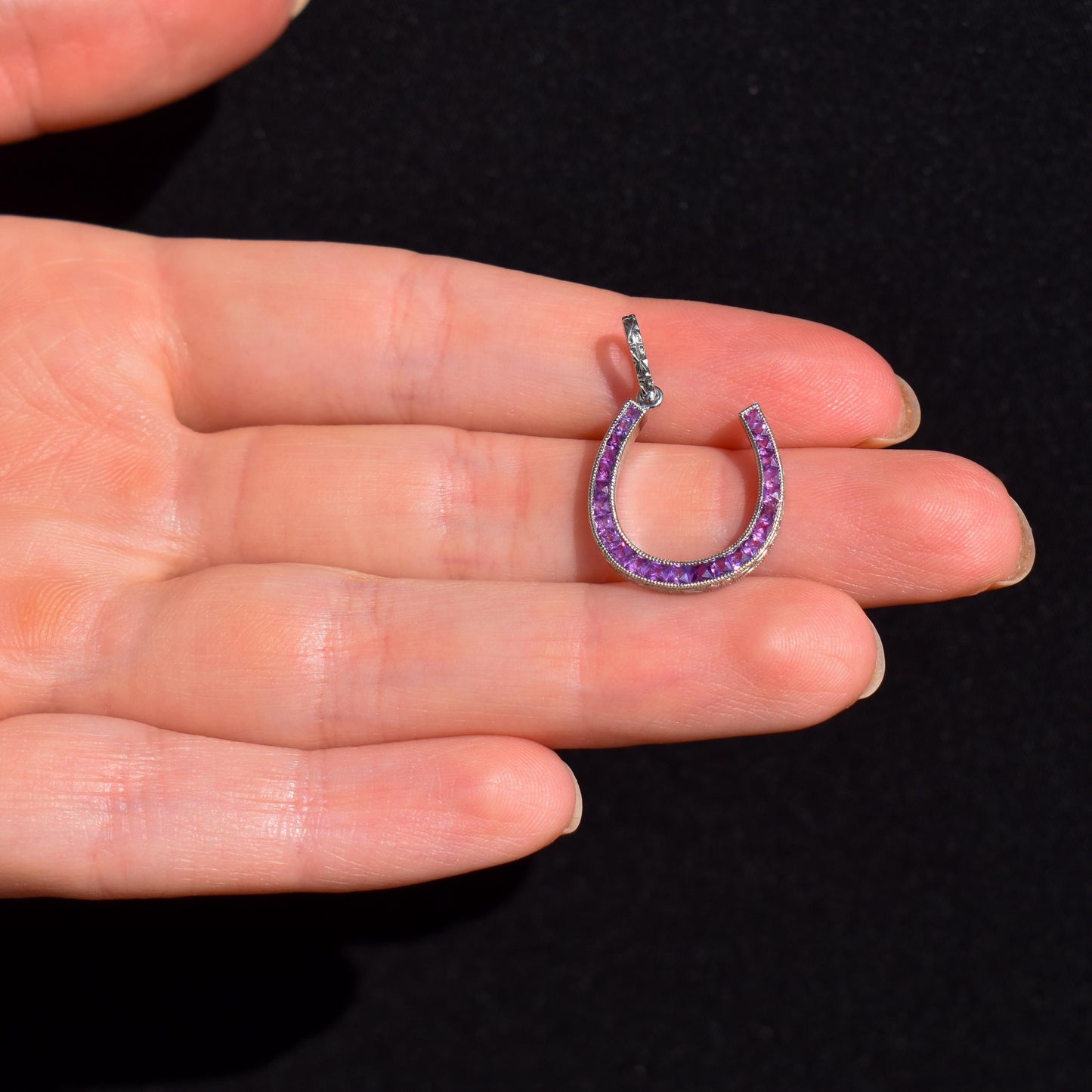 French Cut Purple Sapphire Horseshoe Platinum Charm Pendant - 0.70ct