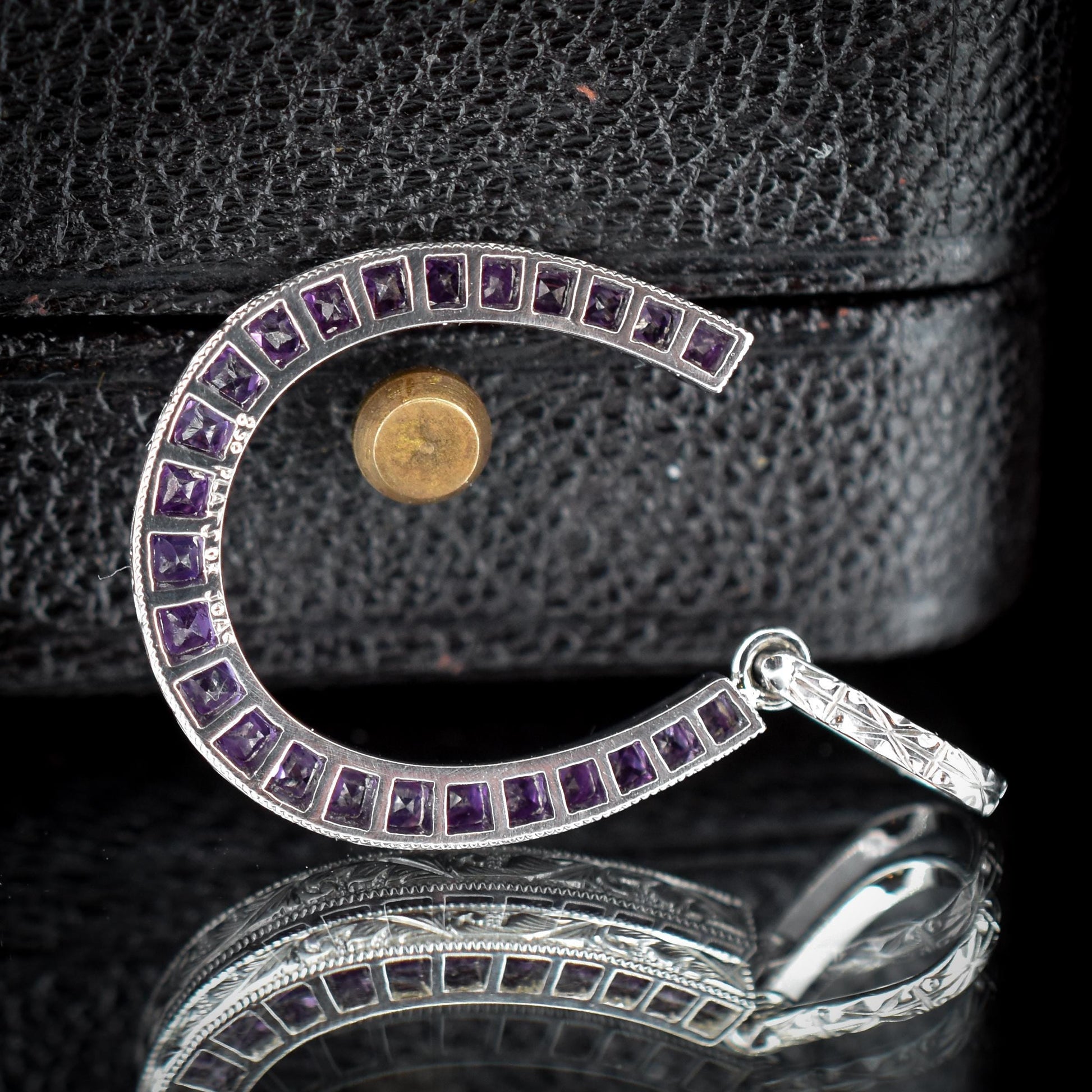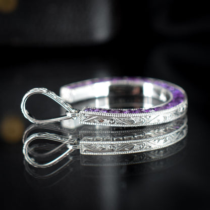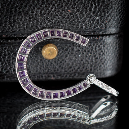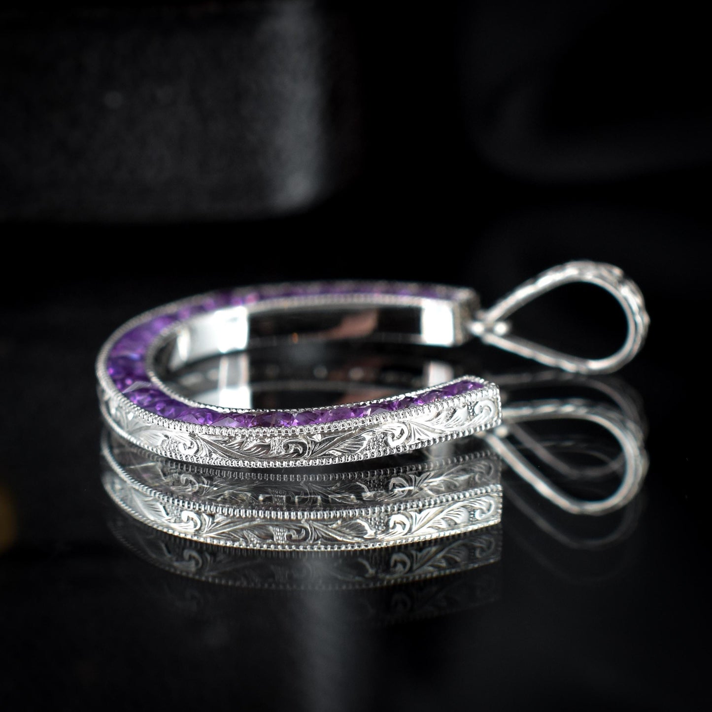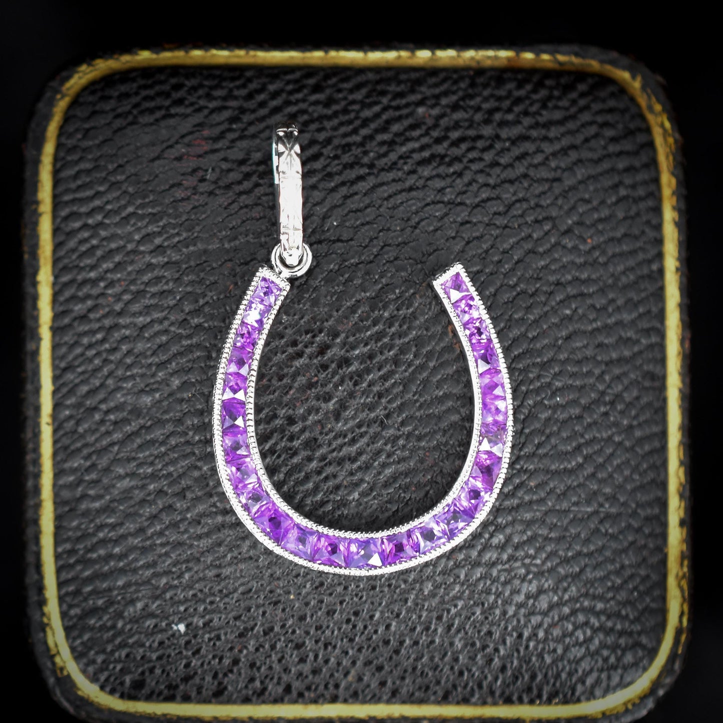 French Cut Purple Sapphire Horseshoe Platinum Charm Pendant - 0.70ct