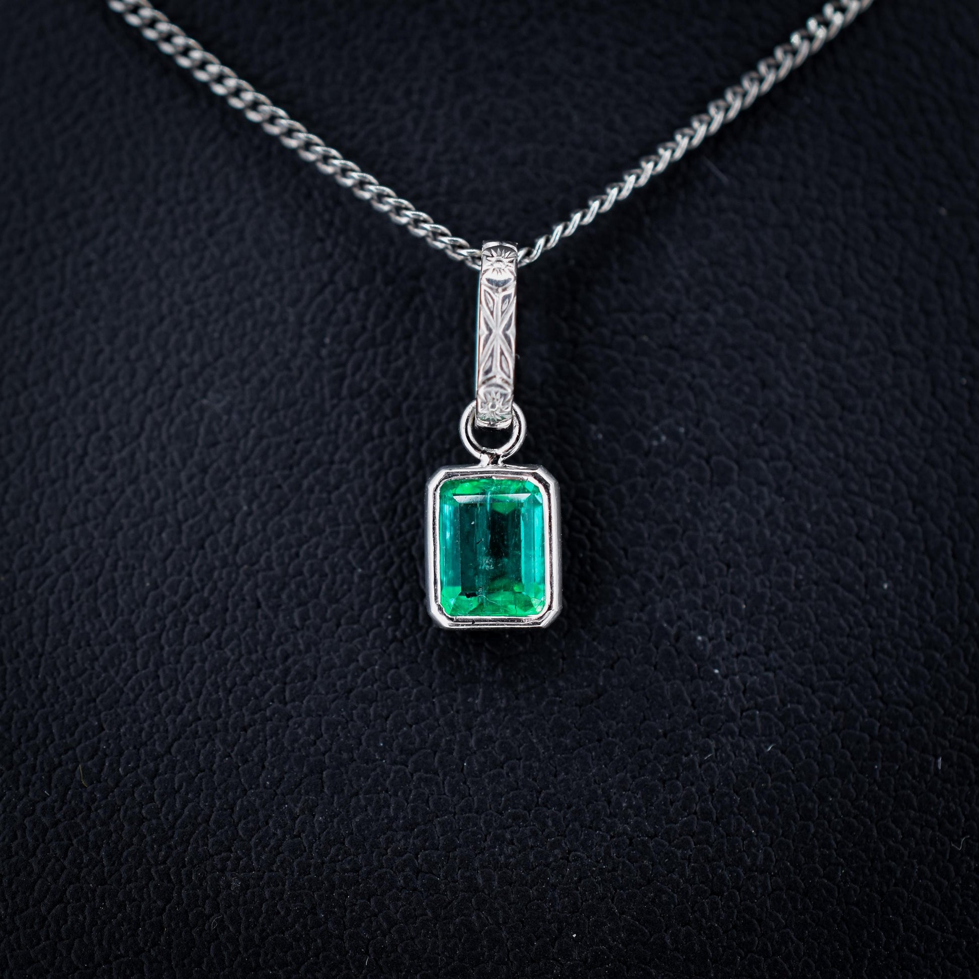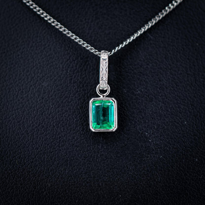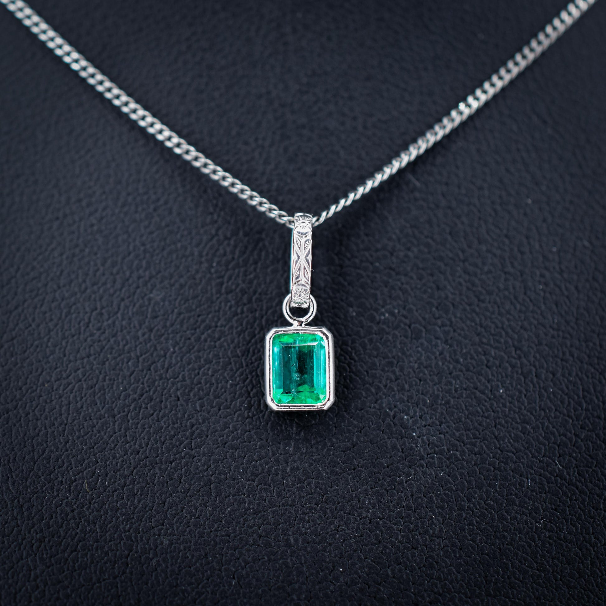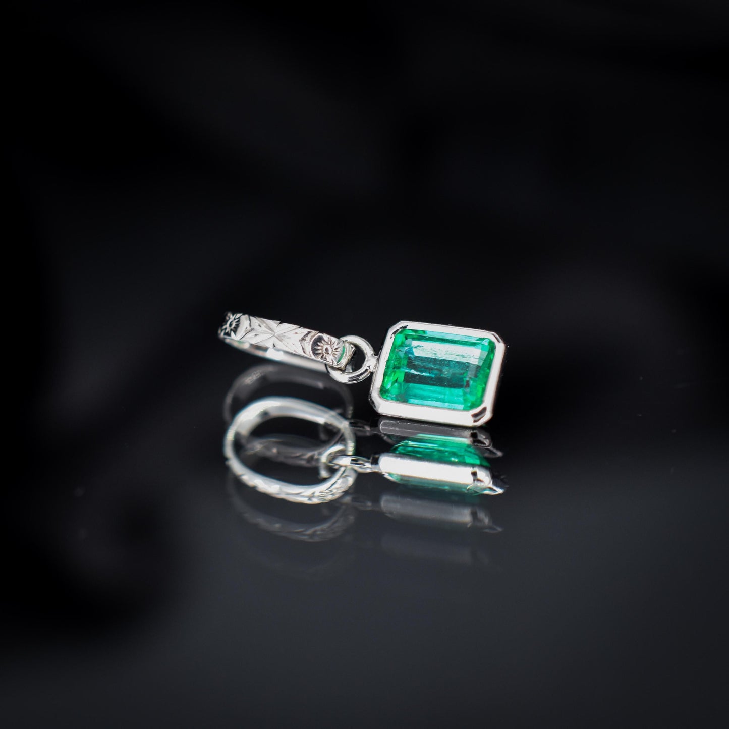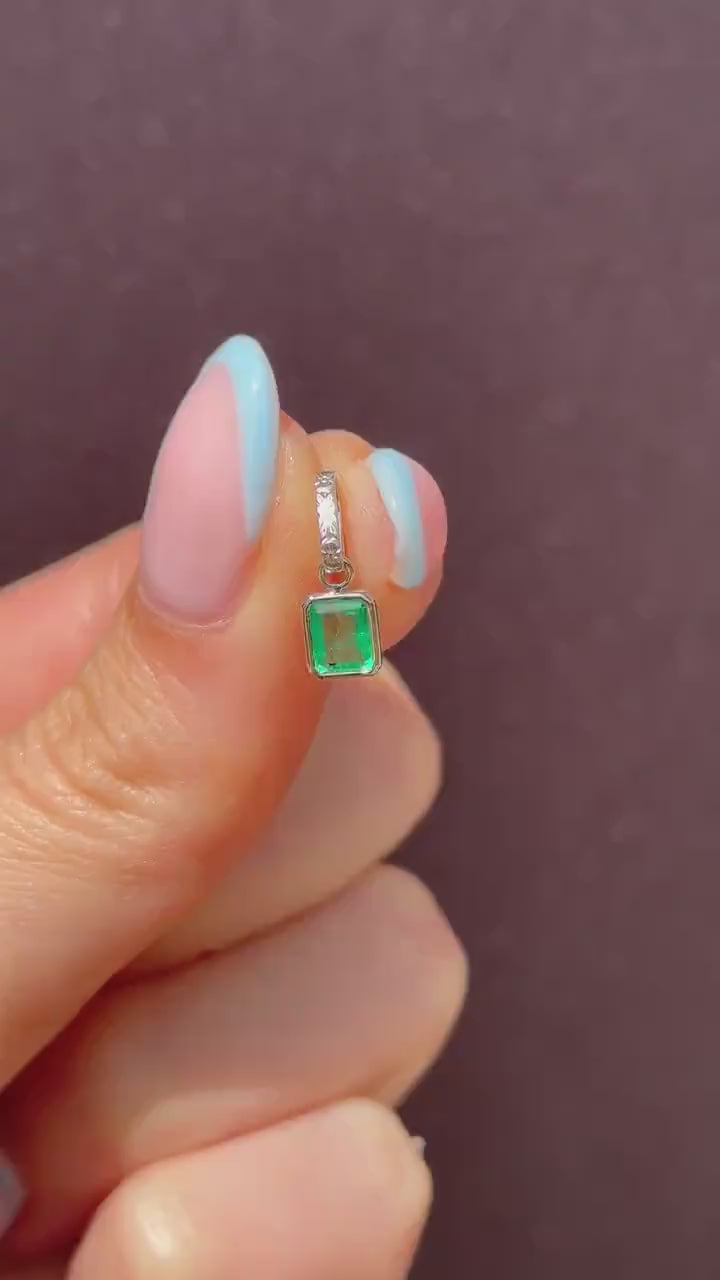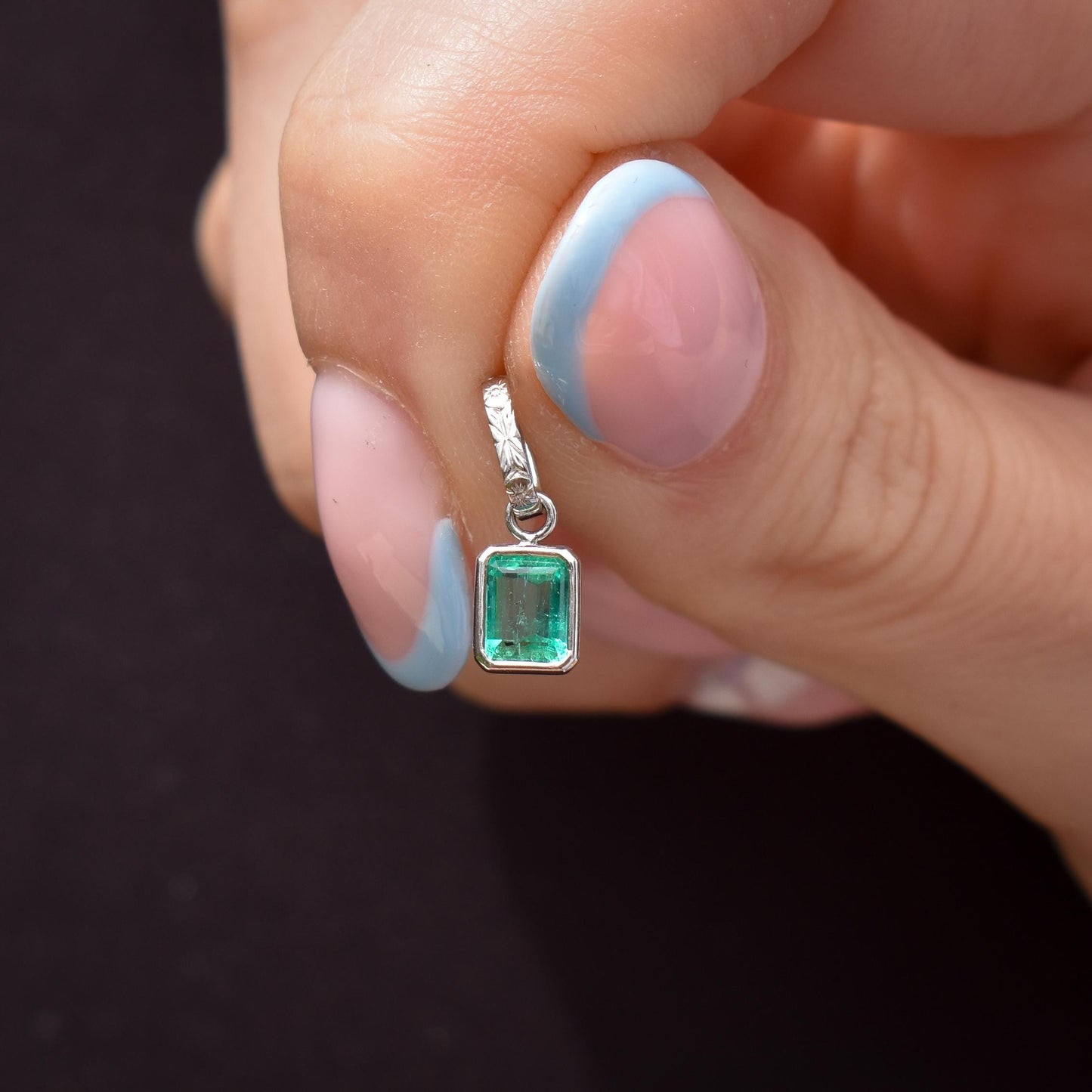0.46ct Emerald Cut Natural Emerald Platinum Charm Pendant