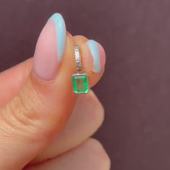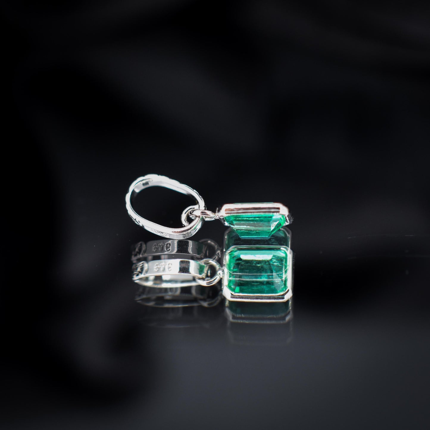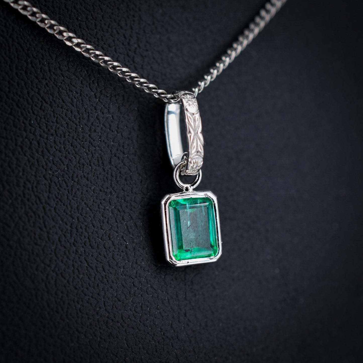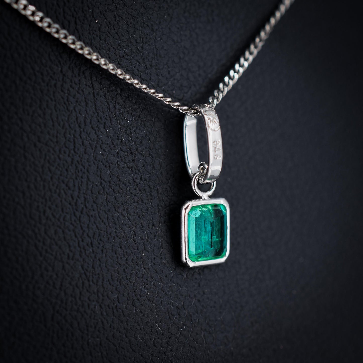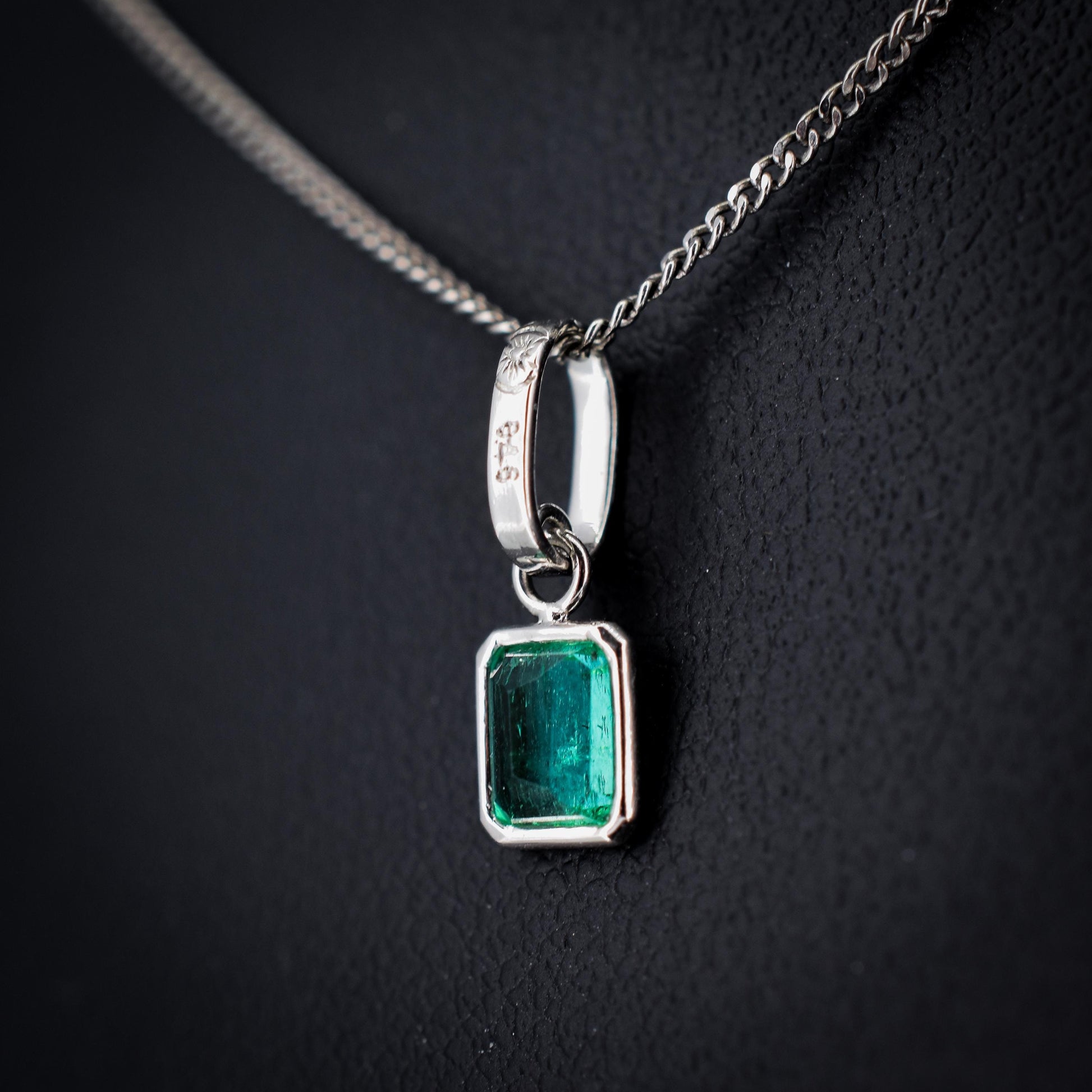 0.46ct Emerald Cut Natural Emerald Platinum Charm Pendant