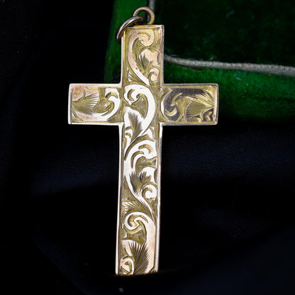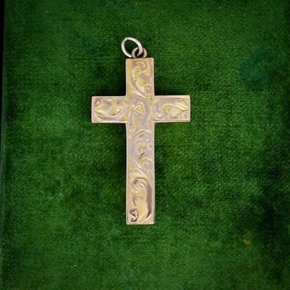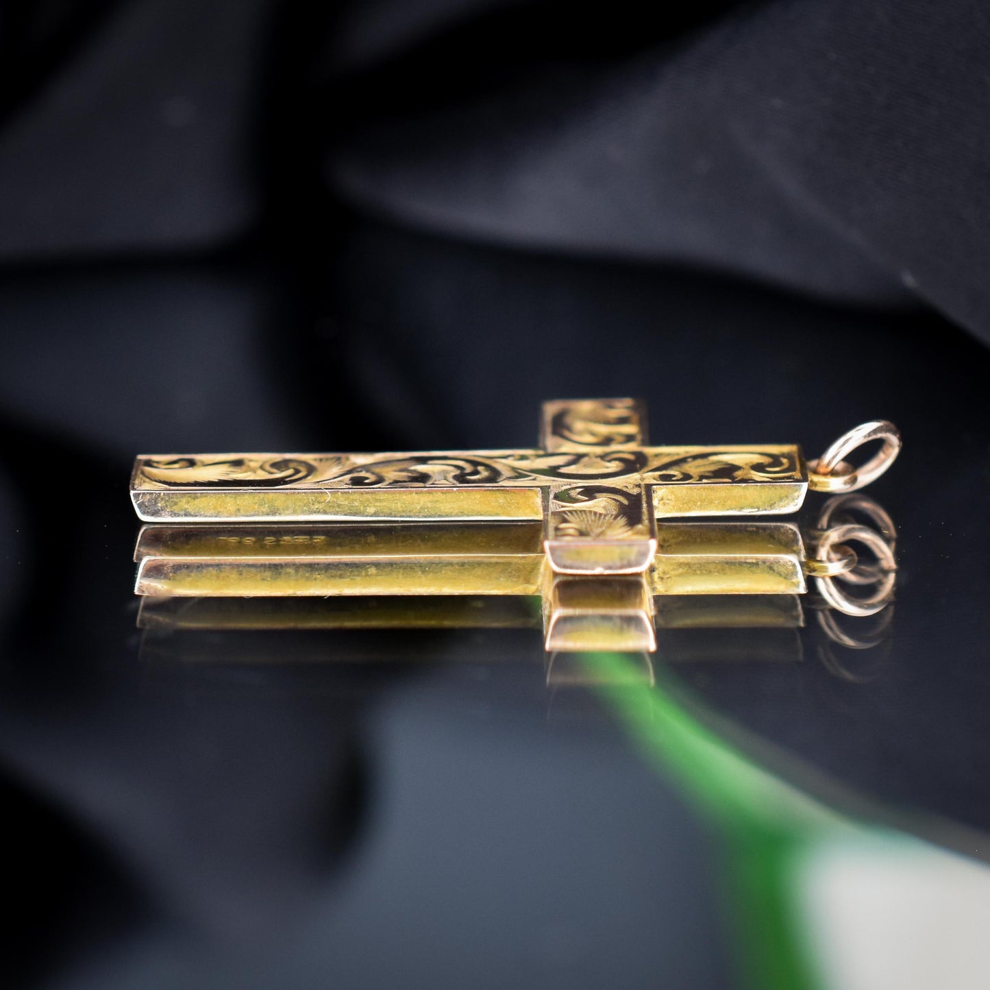 Antique Edwardian 9ct Gold Engraved Cross Pendant