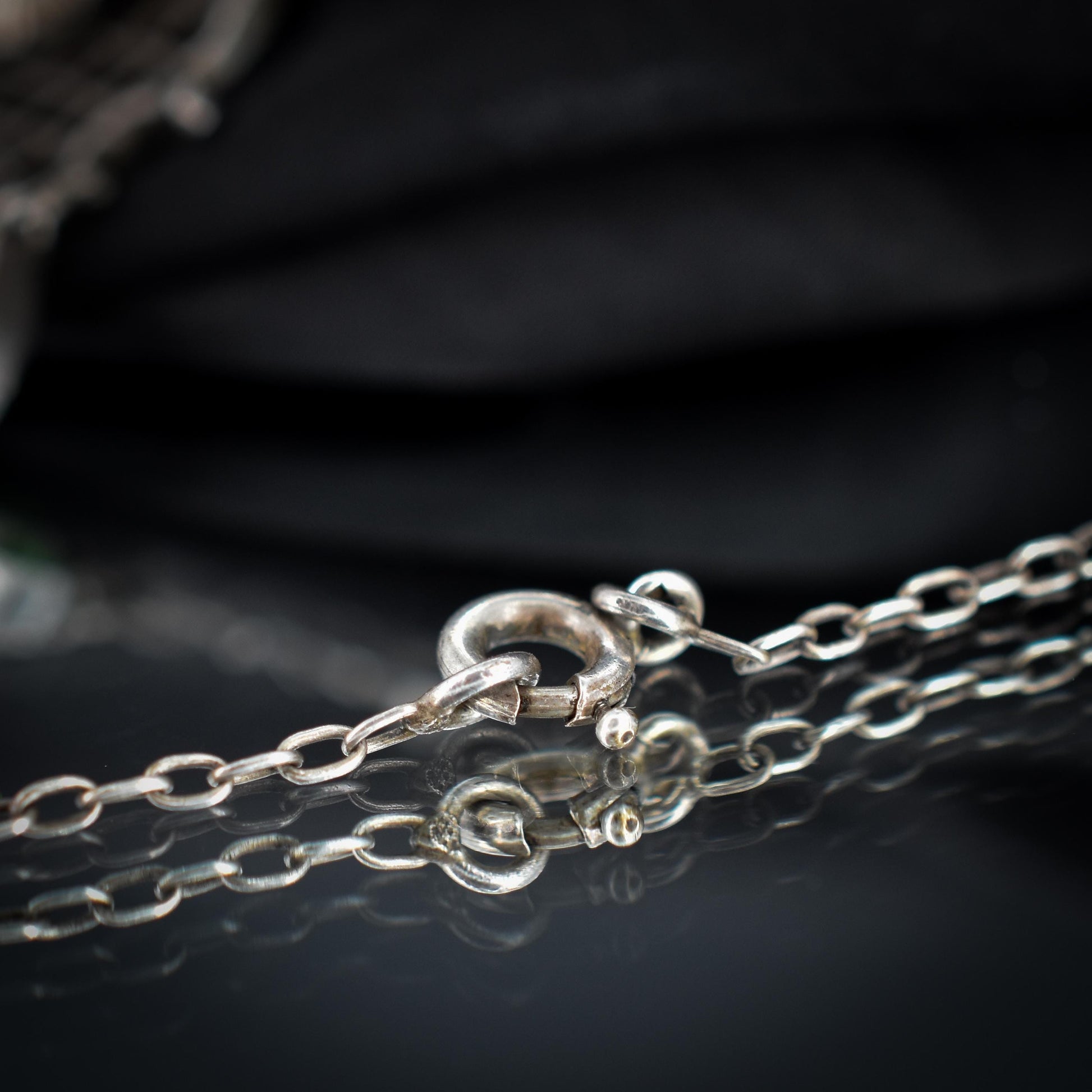 This stunning silver-paste necklace remains in excellent condition. All the stones are present, secure and free from damage. The chain links are sturdy, and the spring fastener is in fine working order, too! Overall, this would be a beautiful statement piece and a conversation starter.