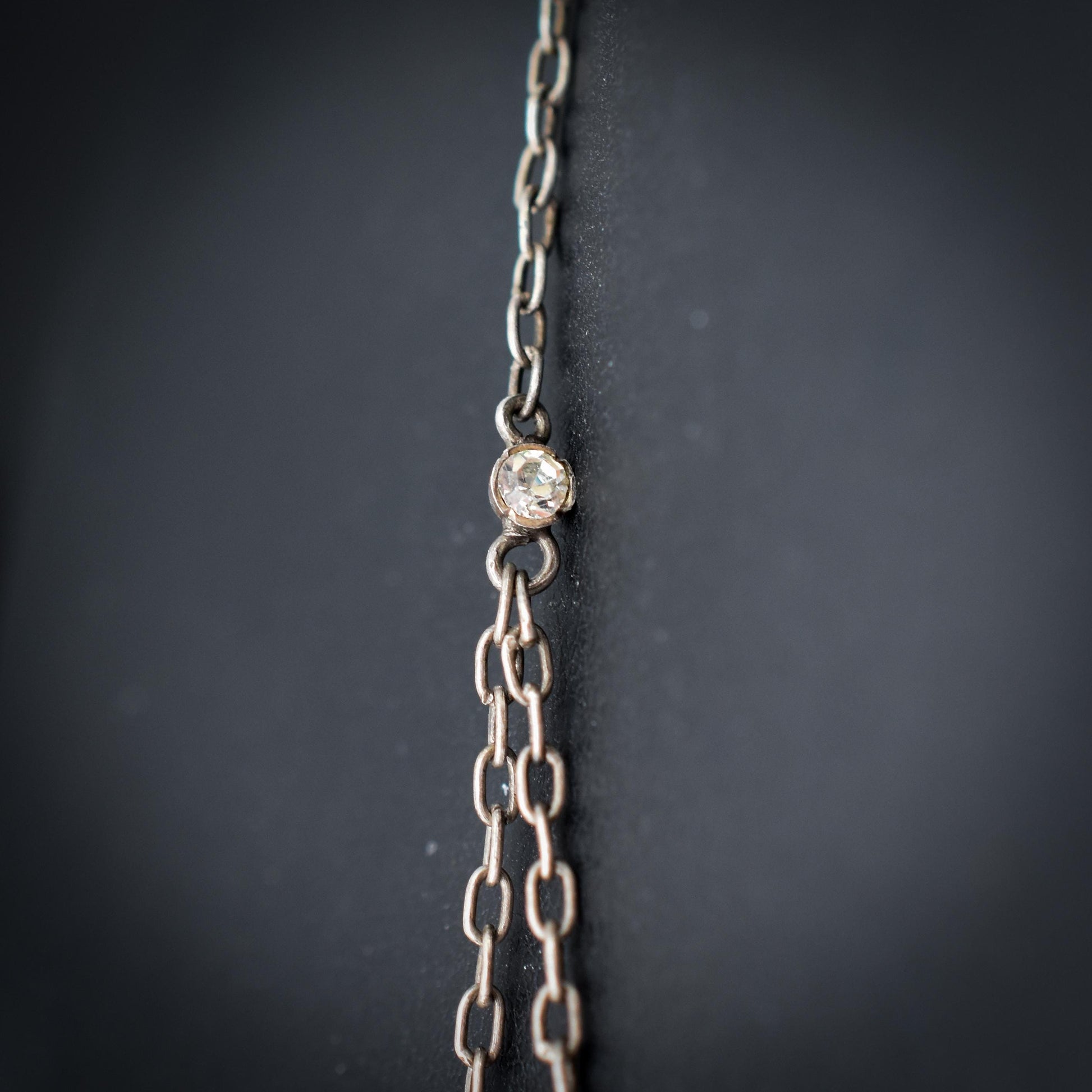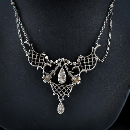 Antique Edwardian Suffragette Paste Floral Lavaliere Silver Chain Necklace