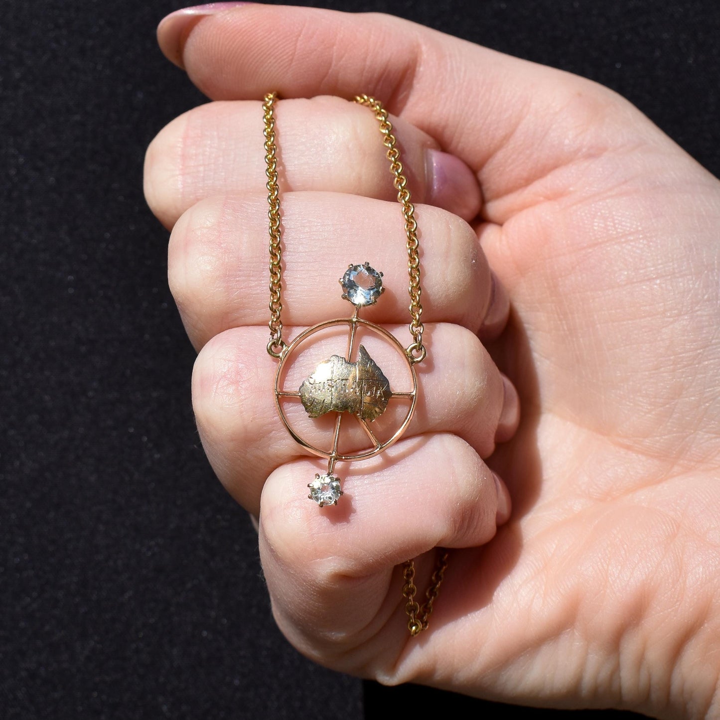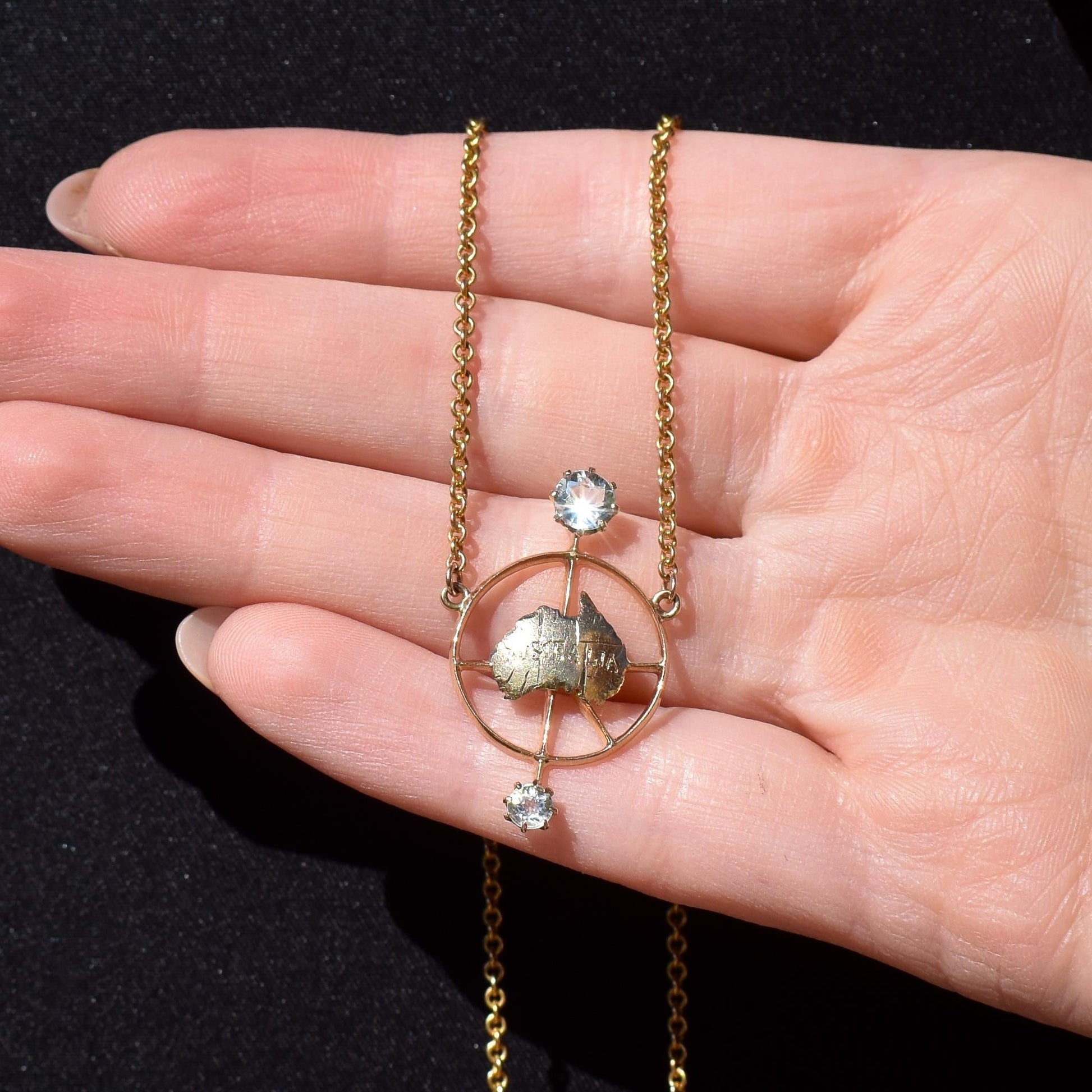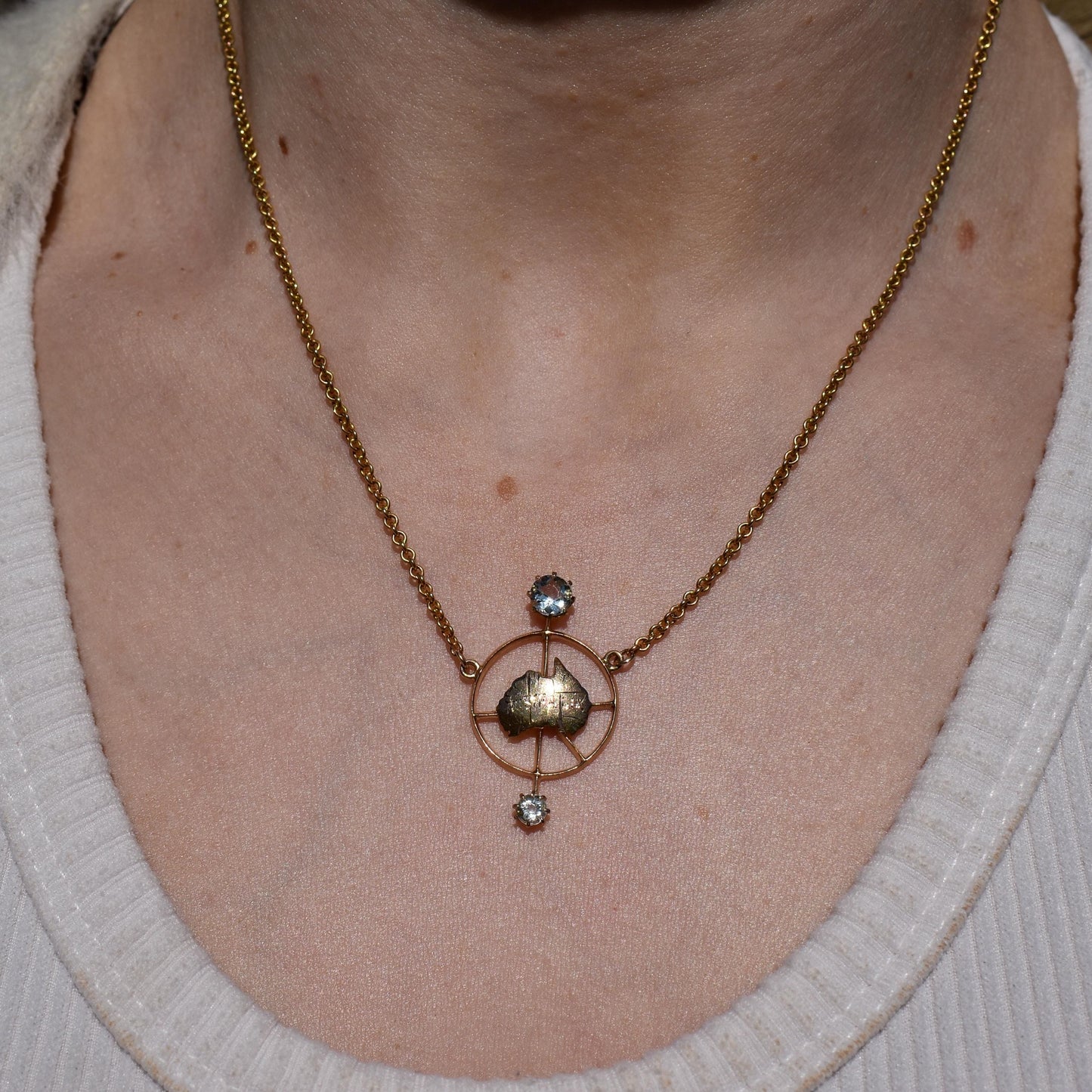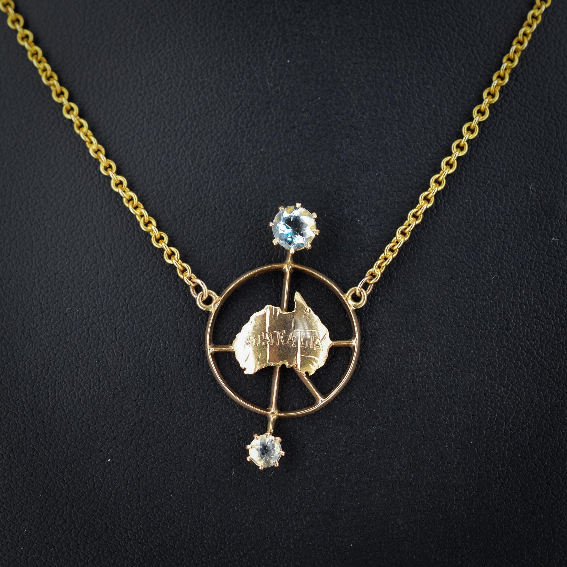 This elegant Antique Necklace dates to circa.1900-1910, modelled in 15carat Yellow Gold set with two paste gemstones north and south with a unique design of Australia.