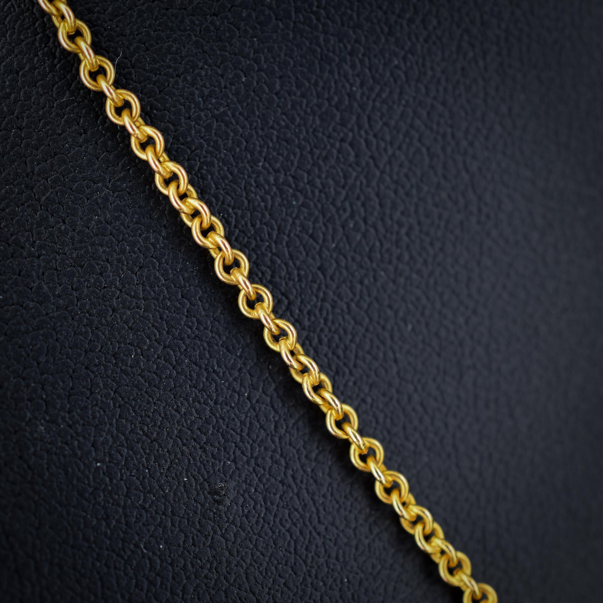 The unusual pendant is attached to a lovely weighted 15ct gold chain with a barrel clasp fastener.