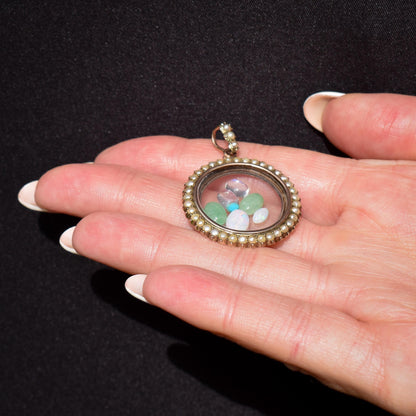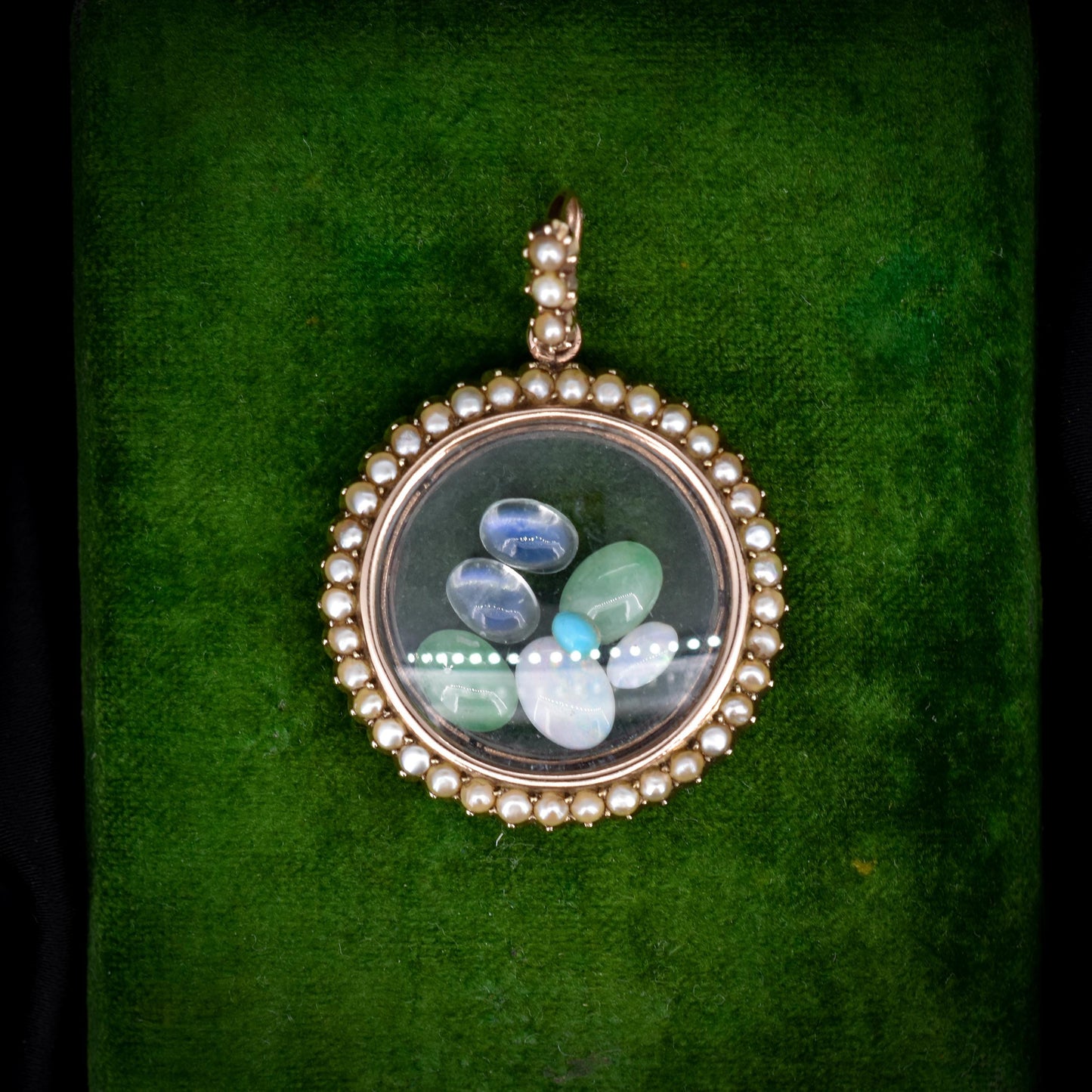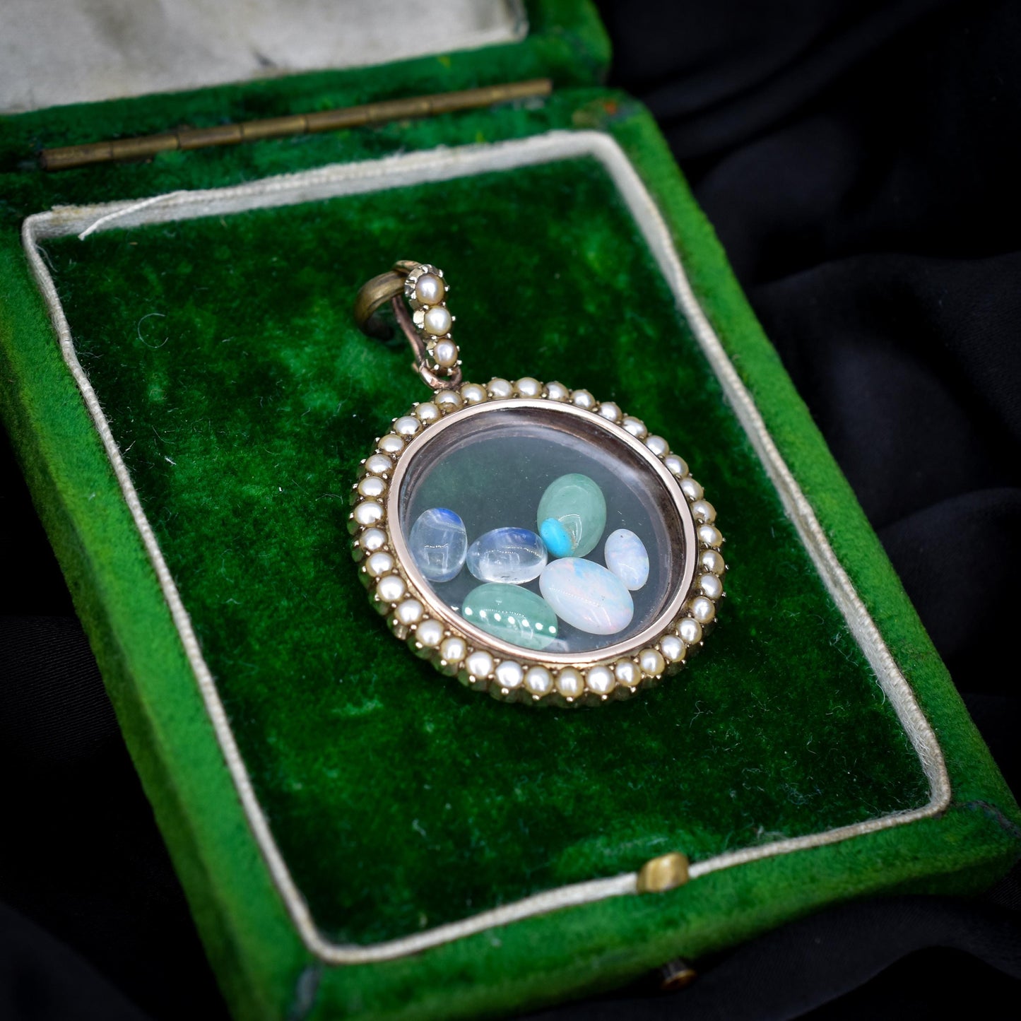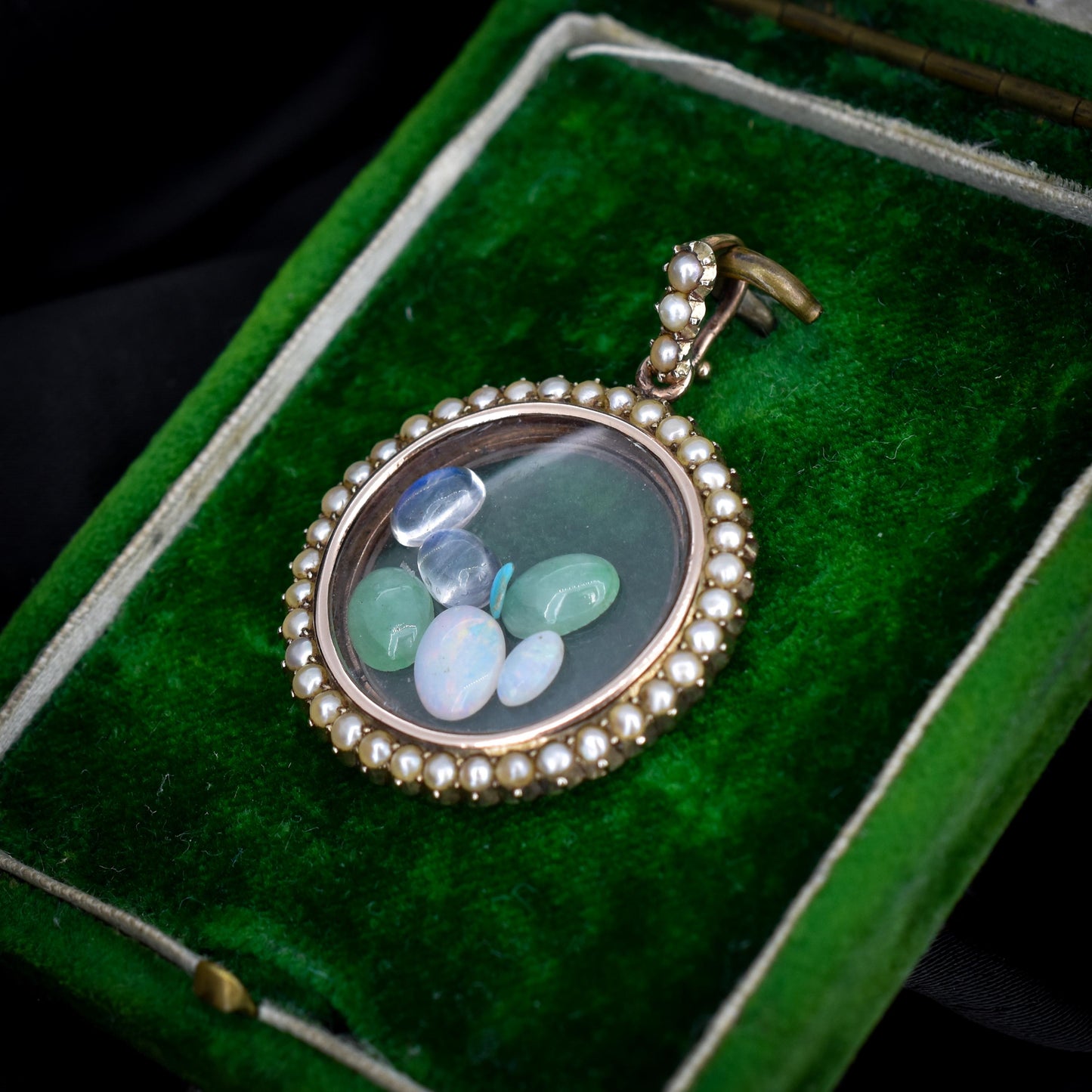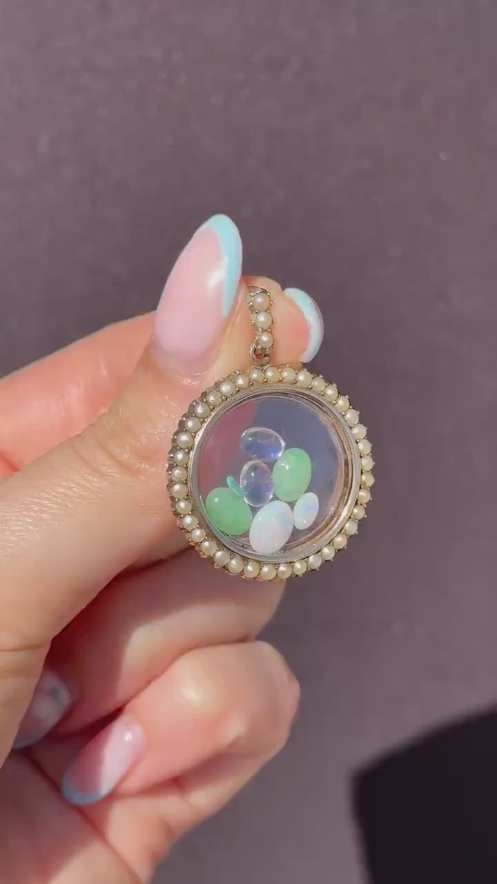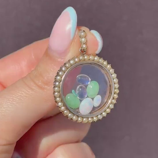 Antique Pearl 9ct Gold Gemstone Shaker Locket Pendant