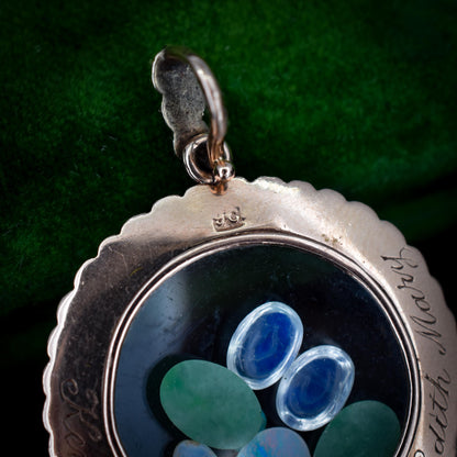 This antique 9ct gold locket has been kept in very good condition for its age. The 9ct gold frame around the glass retained its condition well, showing no signs of any damage. The glass and gemstones remain secure, and the locket features a sturdy bail, allowing you to wear this antique piece with your favourite chain. A pretty locket that adds a splash of colour would make a beautiful gift for a loved one.