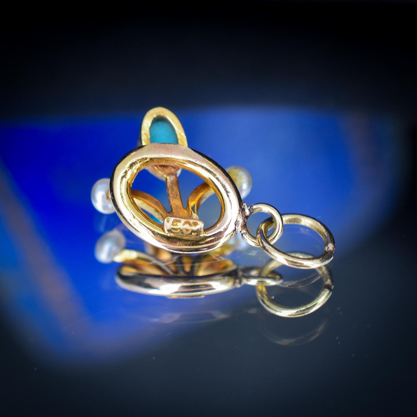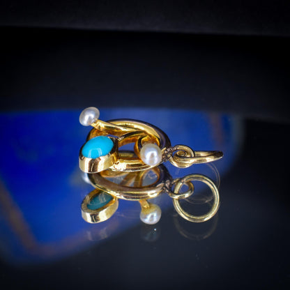 Antique Turquoise and Pearl Flower 15ct Gold Charm Pendant