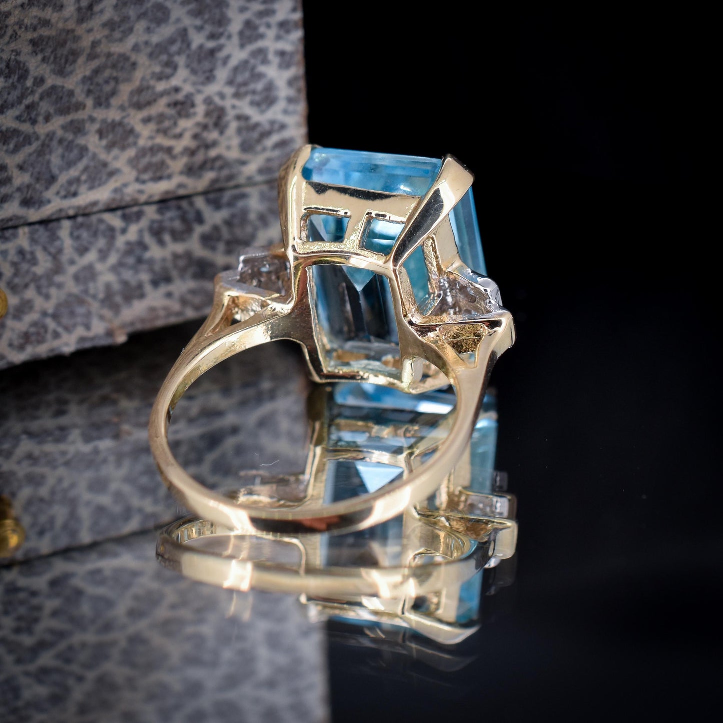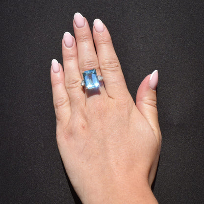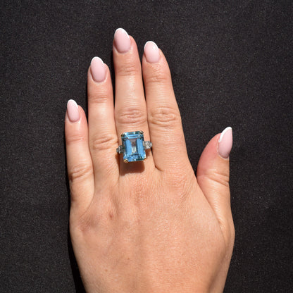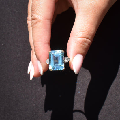 Blue Topaz and Diamond Gold Statement Cocktail Ring | Art Deco Style