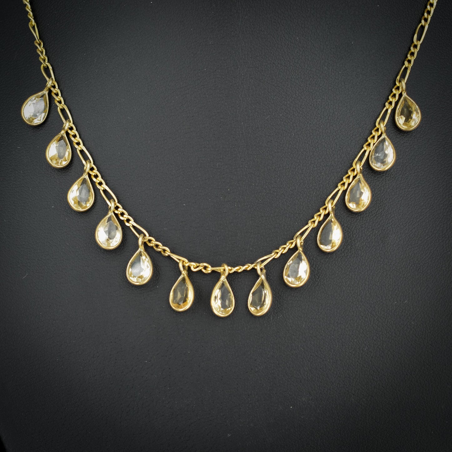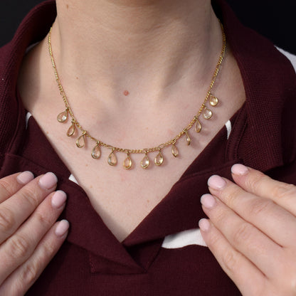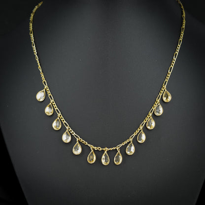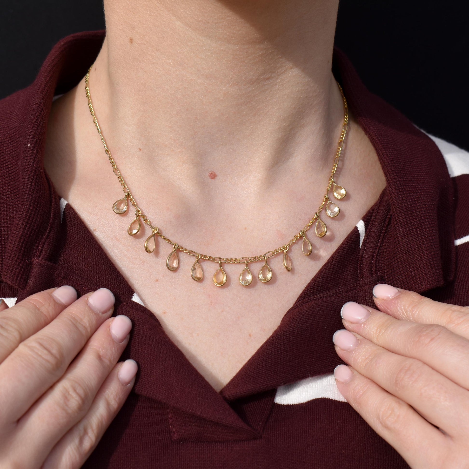 This quality Citrine Necklace features an array of Natural Citrine gemstones modelled in 18ct Yellow Gold on Silver.