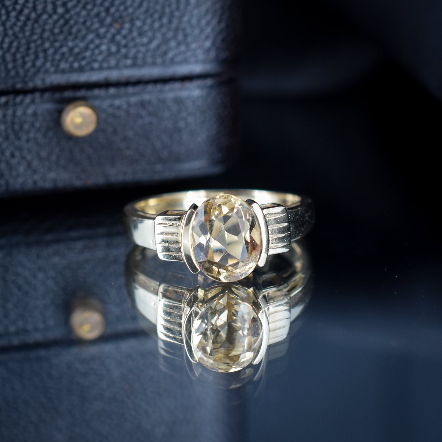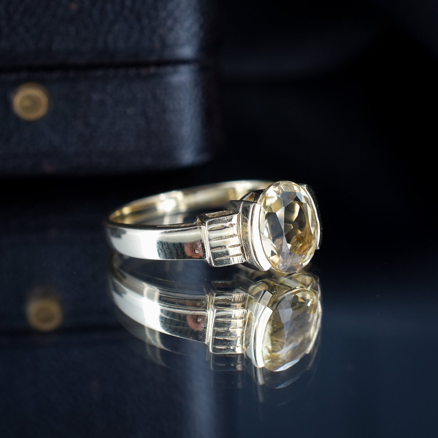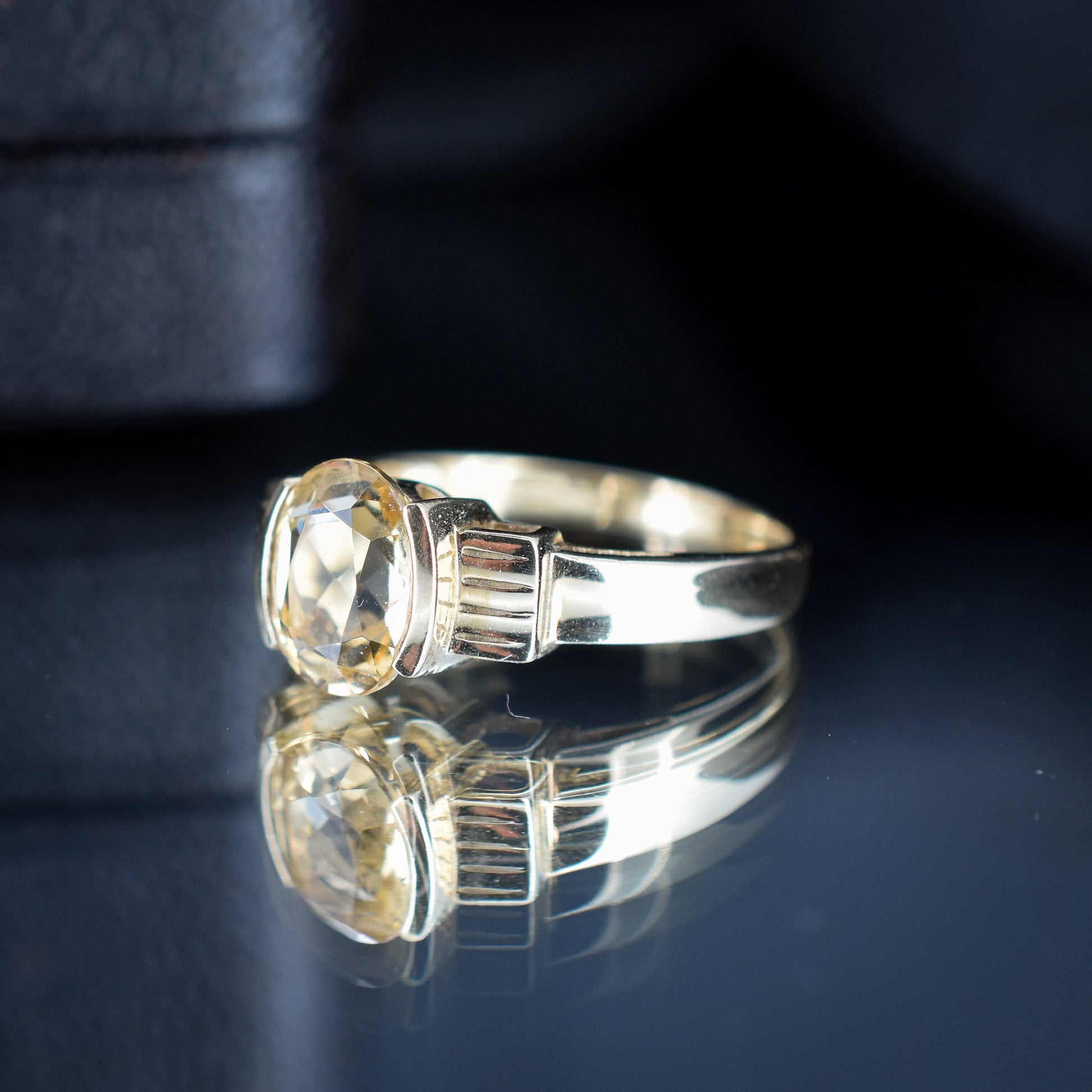 Citrine Oval 9ct Yellow Gold Half Bezel Solitaire Ring