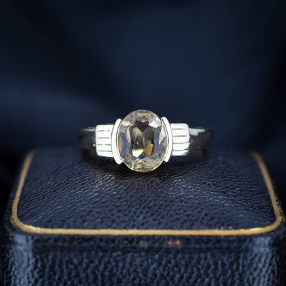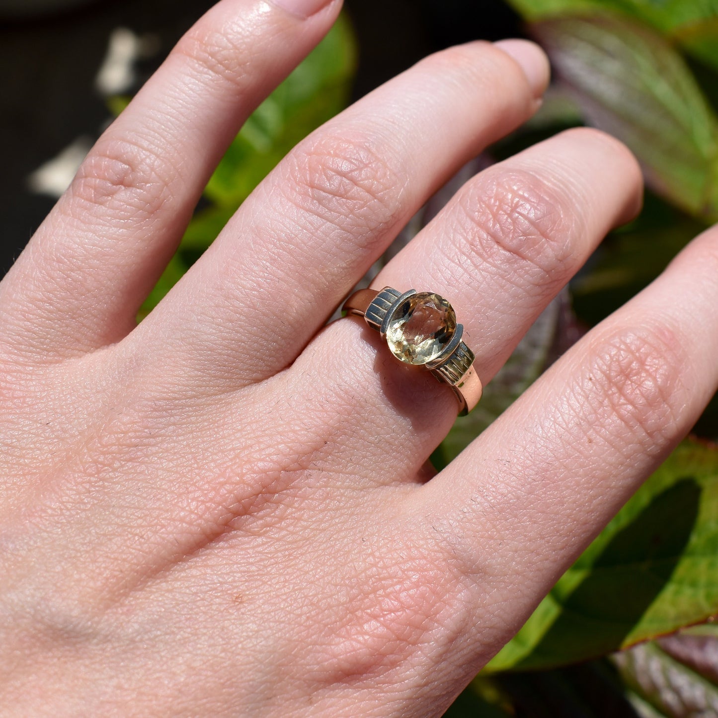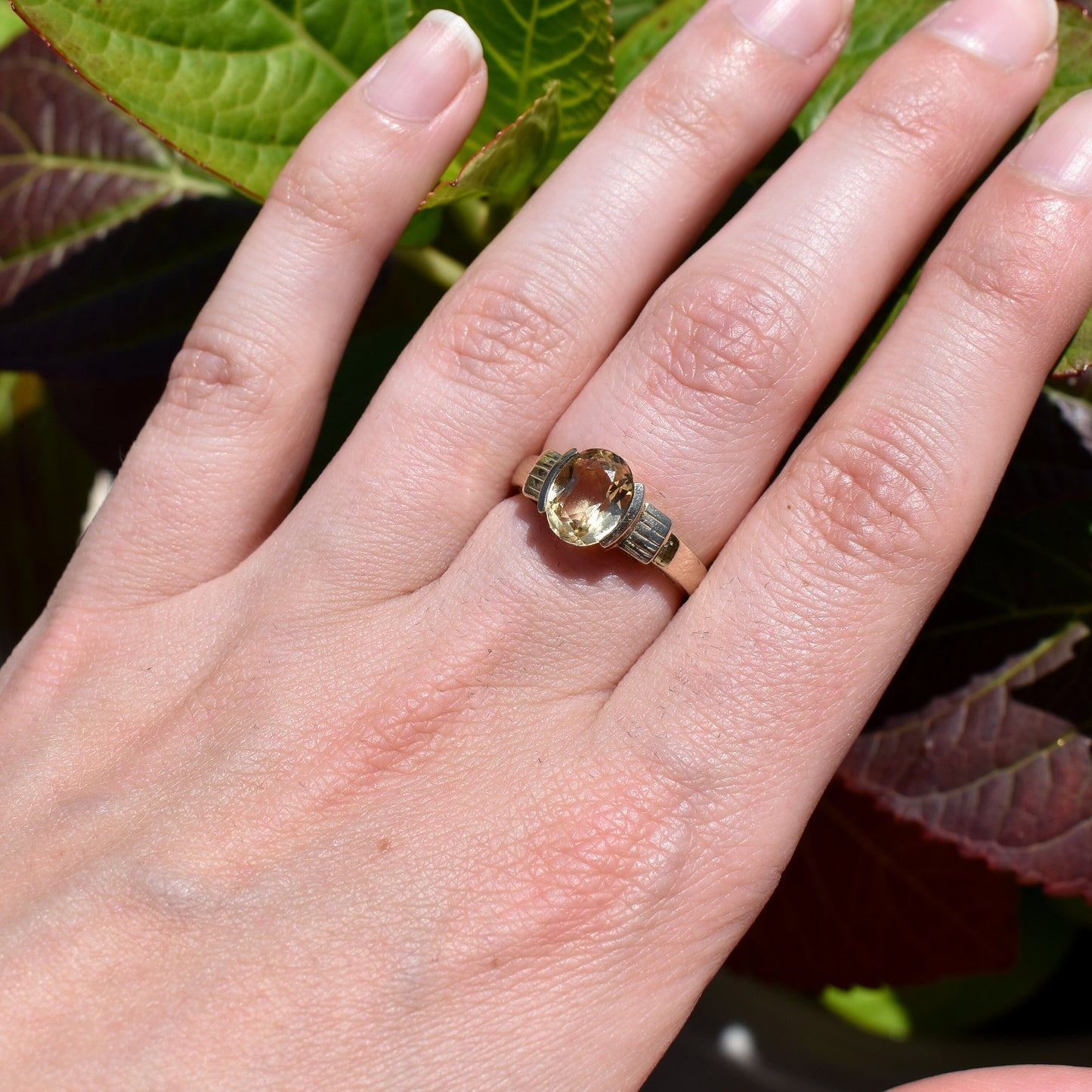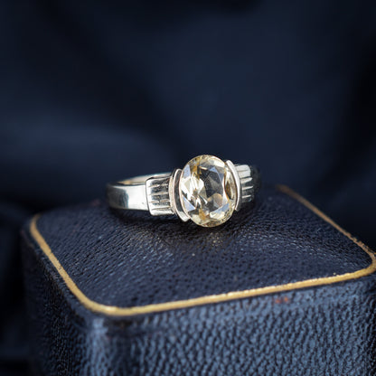 Citrine Oval 9ct Yellow Gold Half Bezel Solitaire Ring
