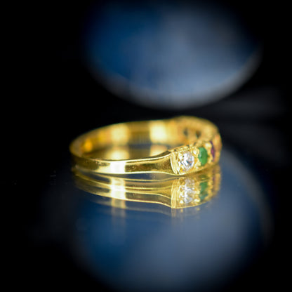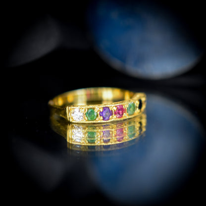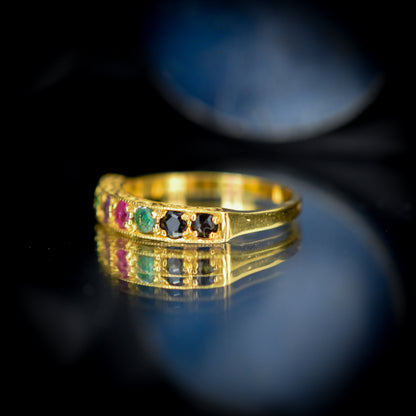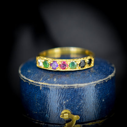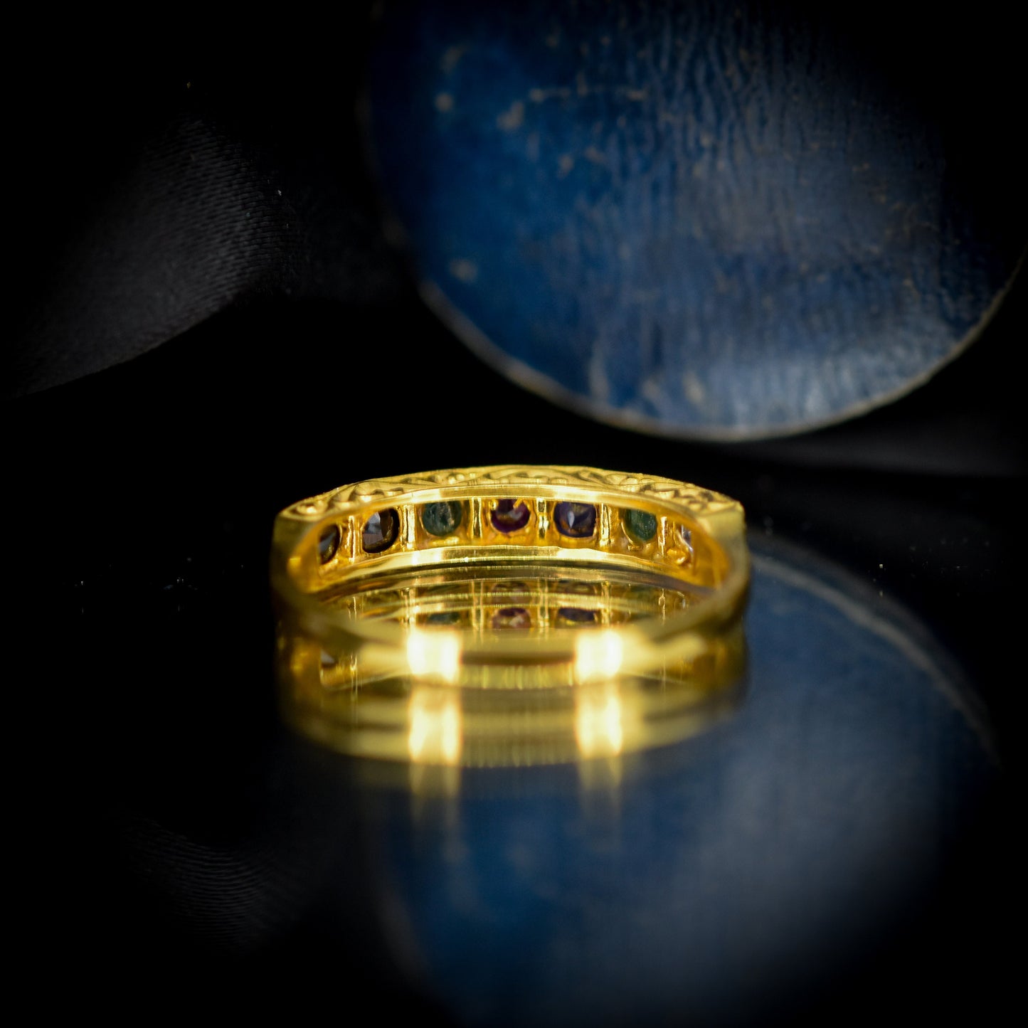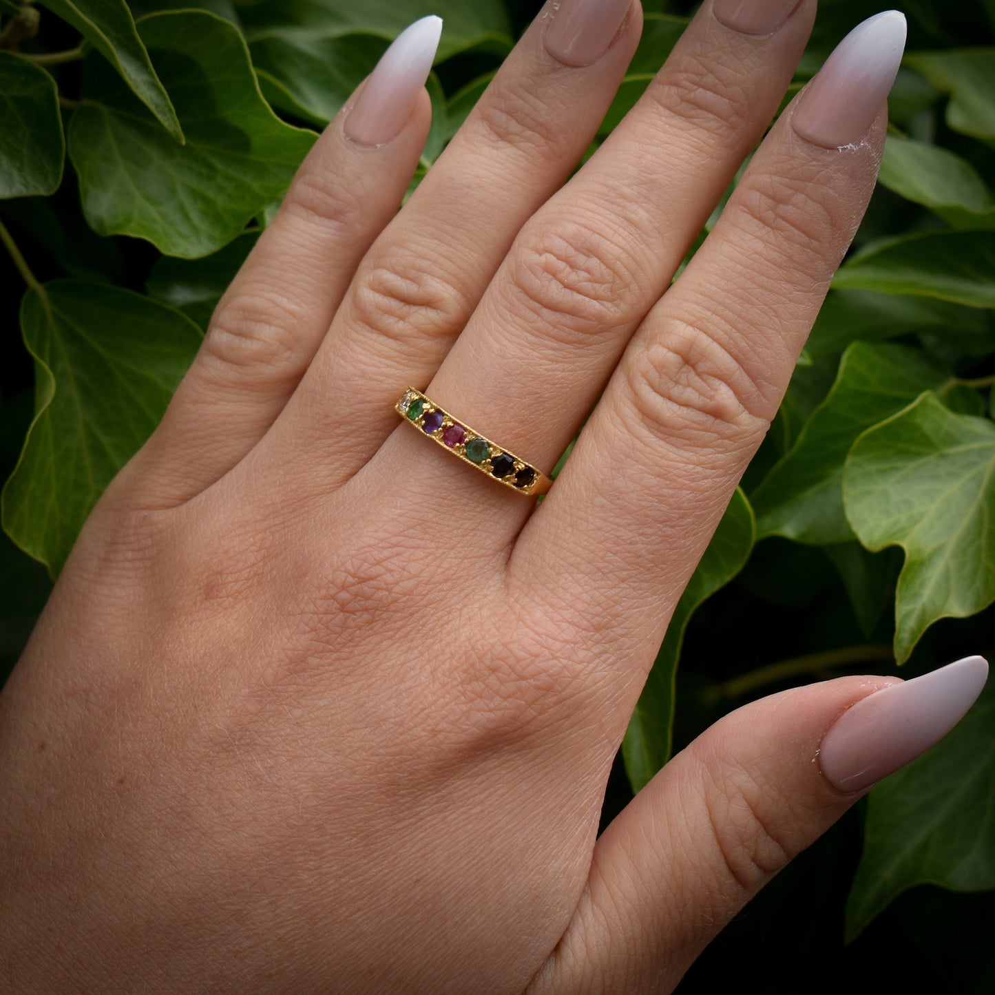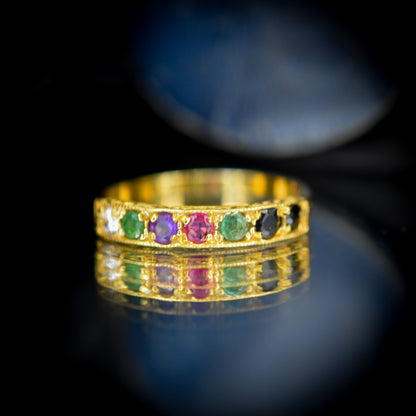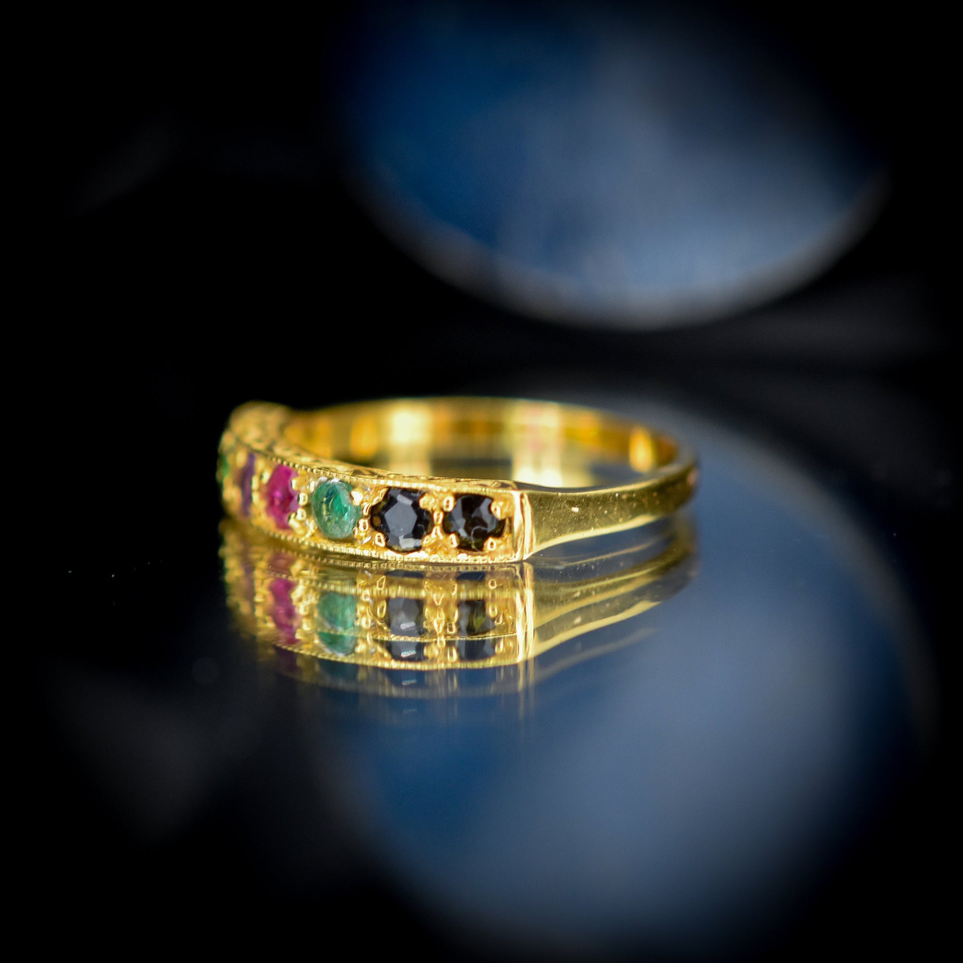 DEAREST Acrostic Multi Gemstone Gold on Silver Ring Band | Antique Victorian Style