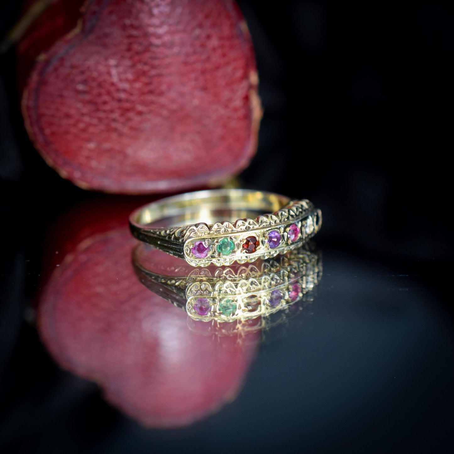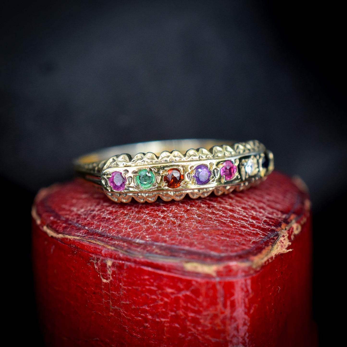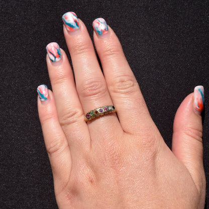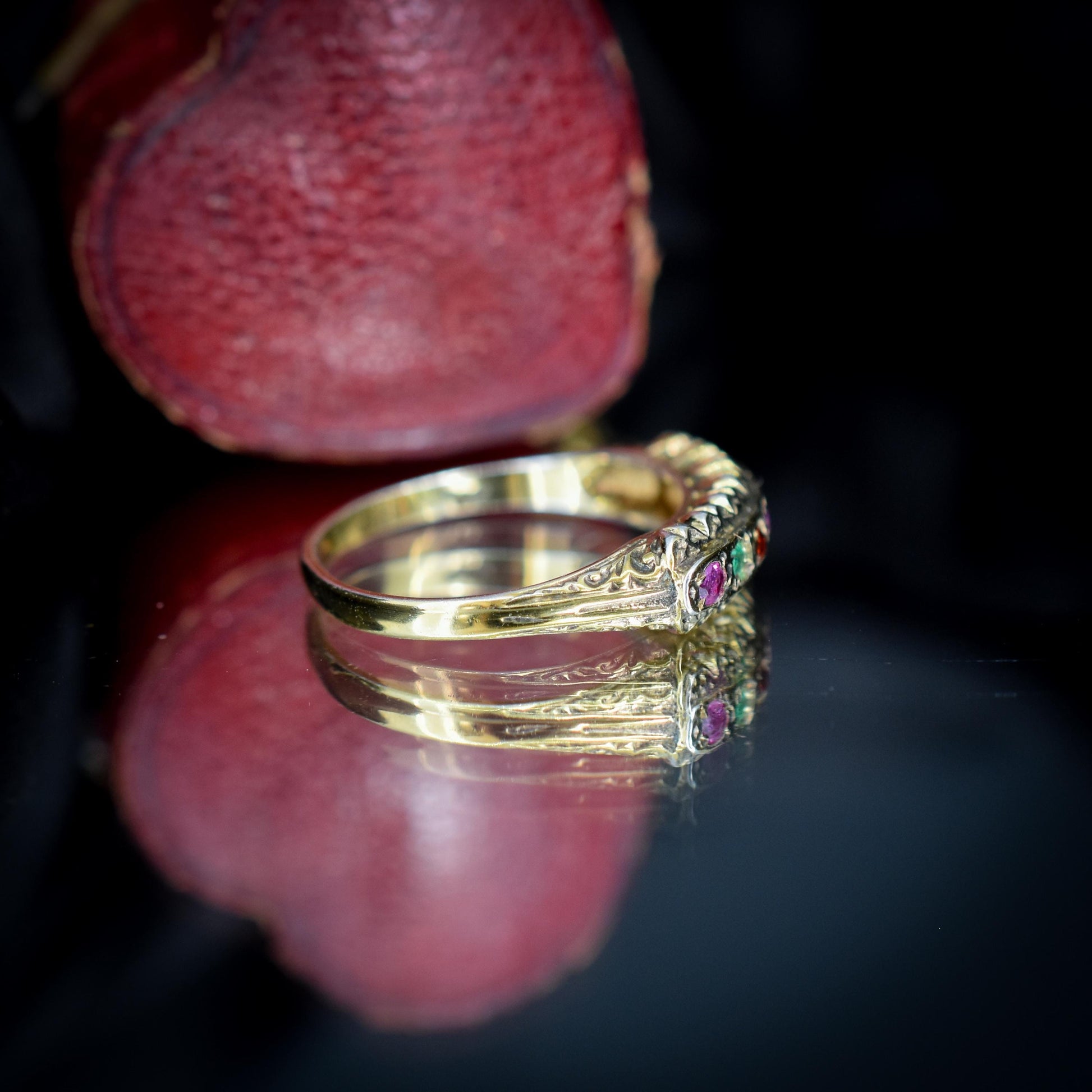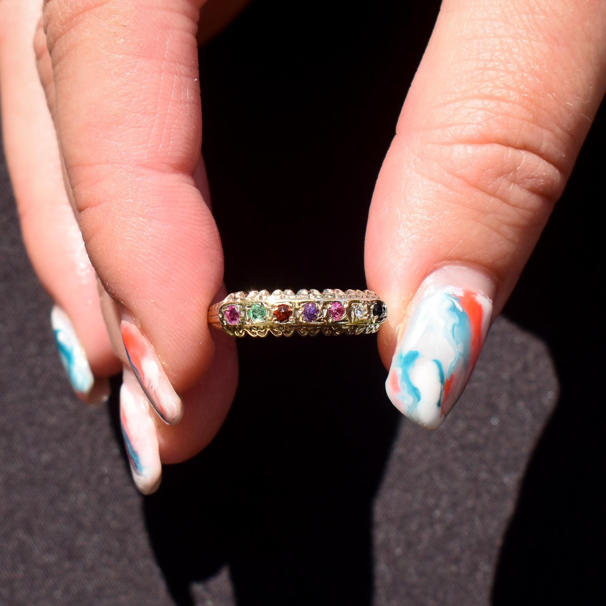 REGARDS Acrostic Multi-Gemstone Gold on Silver Band Ring – Antique Style