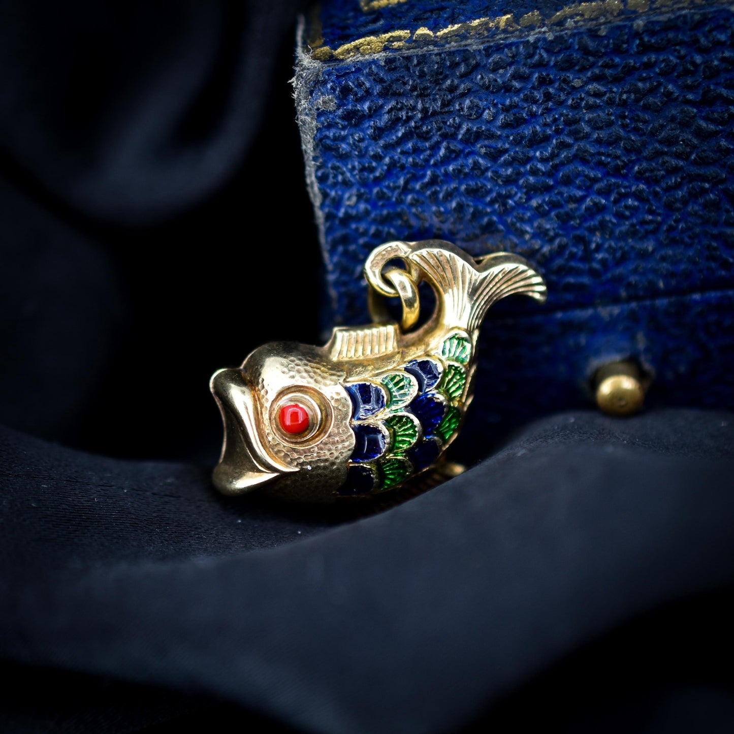 This wonderful fish charm remains in very good condition. The gold remains bright and the enamel intact, making this a superb gift idea.