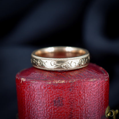 Vintage 9ct Gold Floral Fancy Patterned Wedding Band Ring