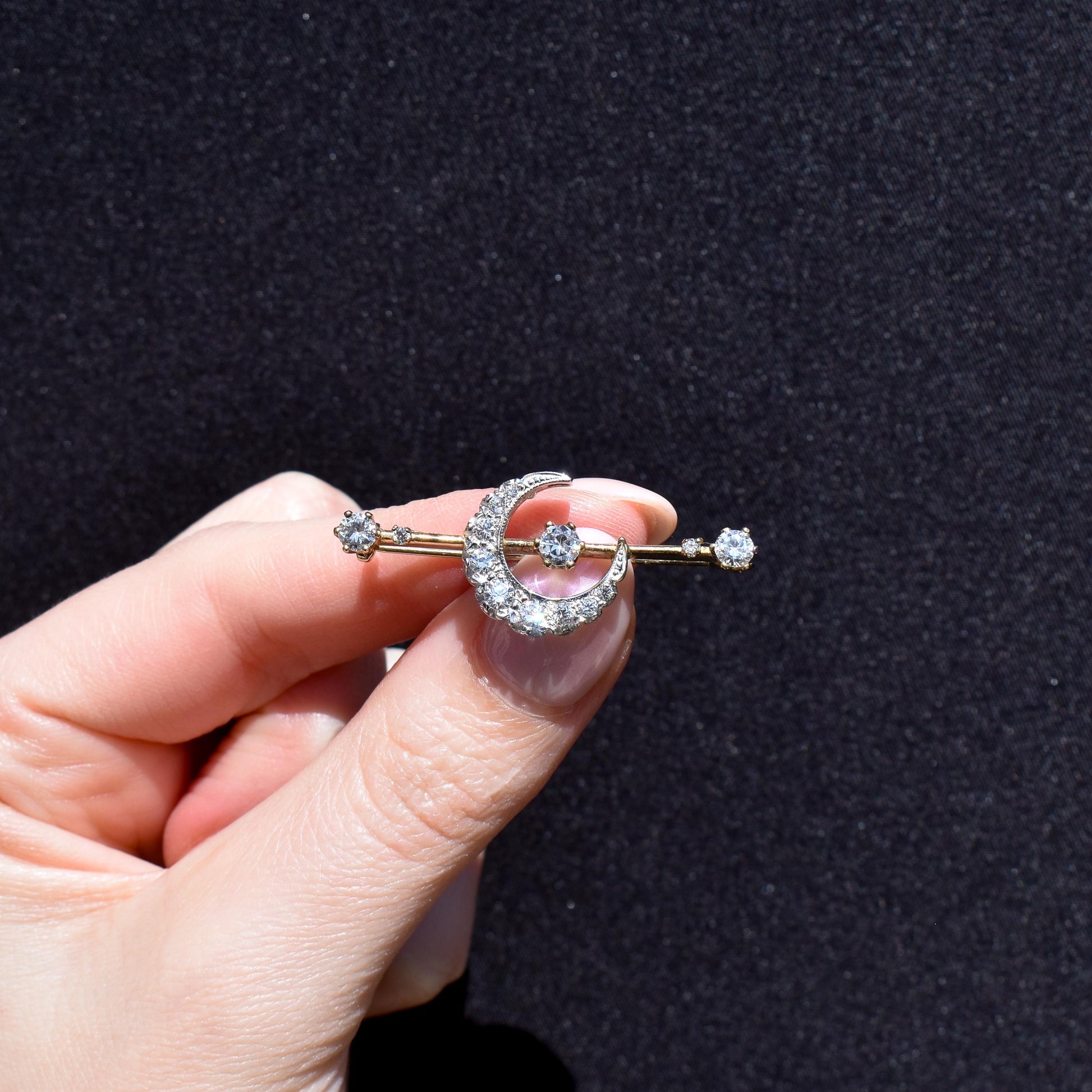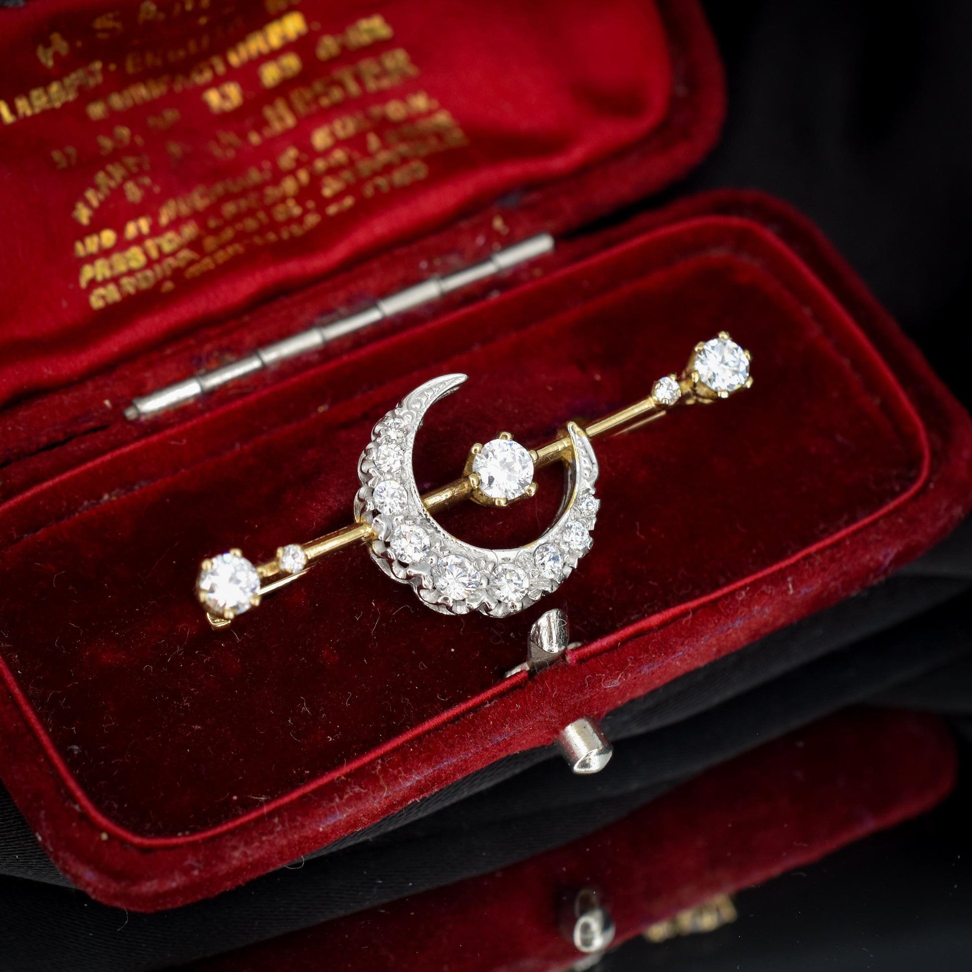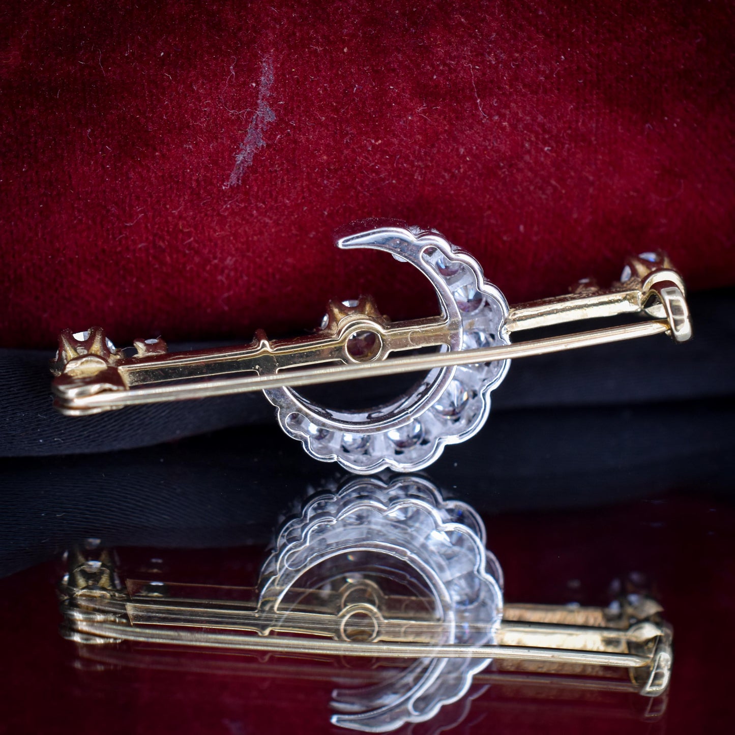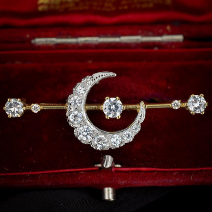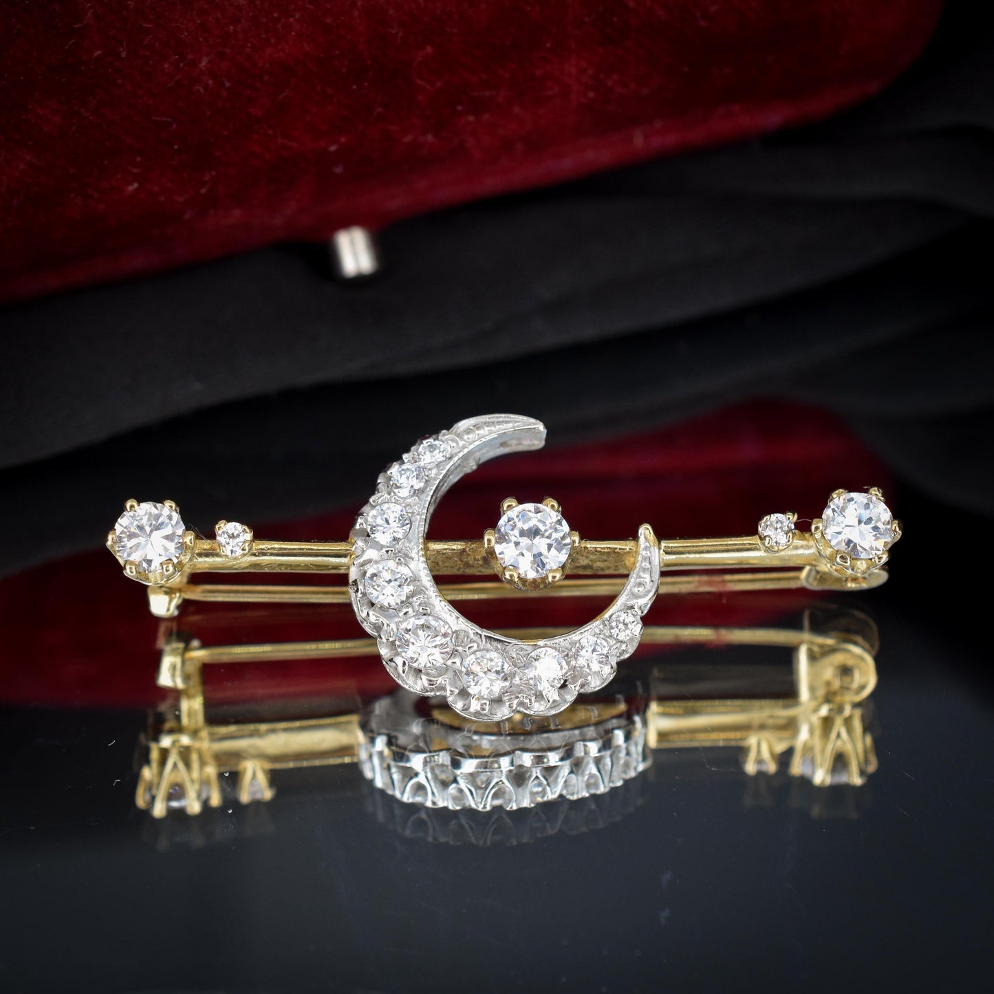 This remarkable Crescent Brooch remains in fantastic condition. With a light patina to the gold only, there is very minimal signs of wear. The stones are untouched and very bright and sparkly!