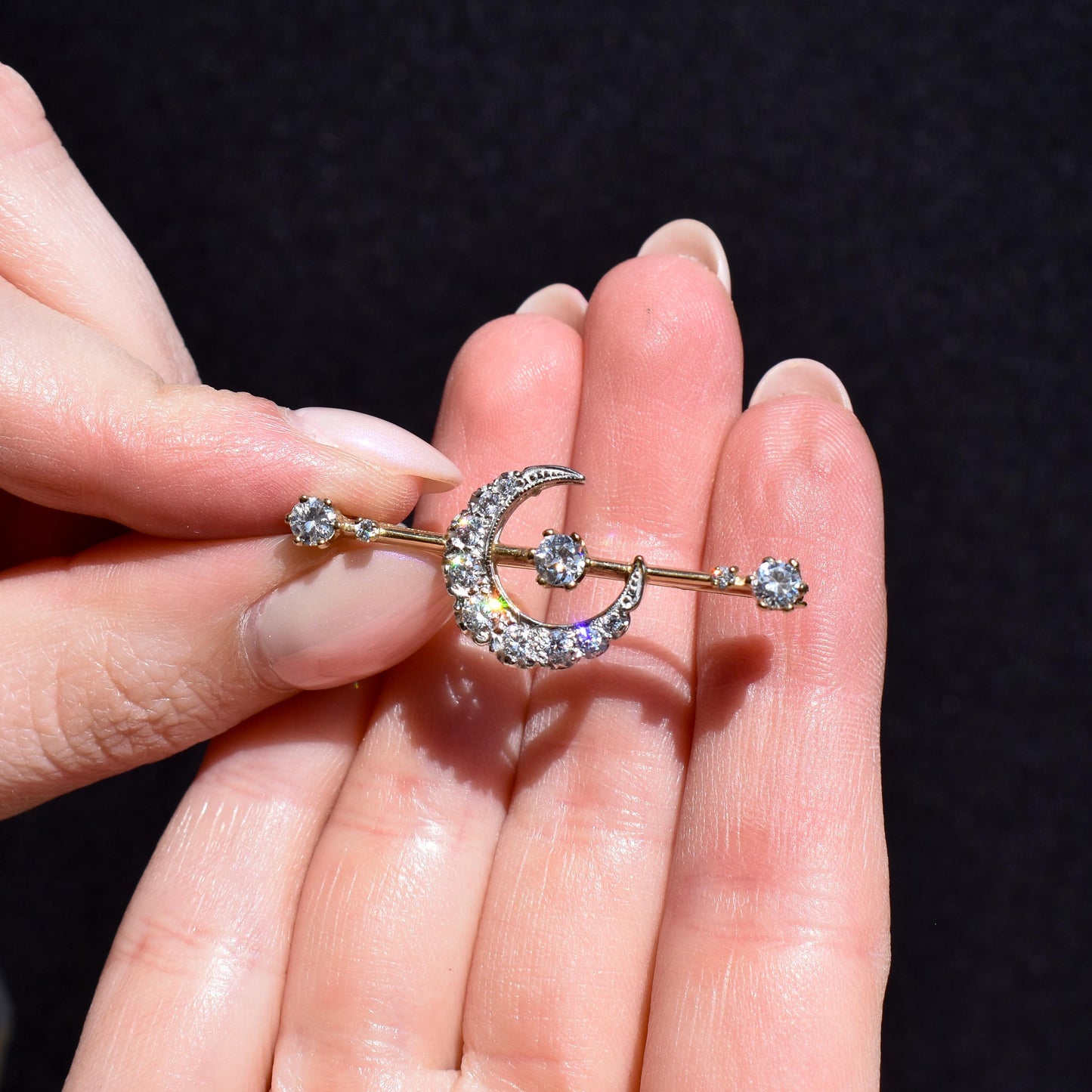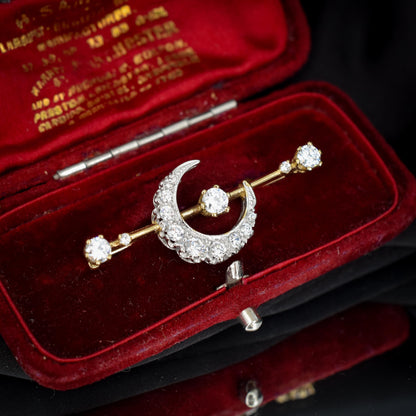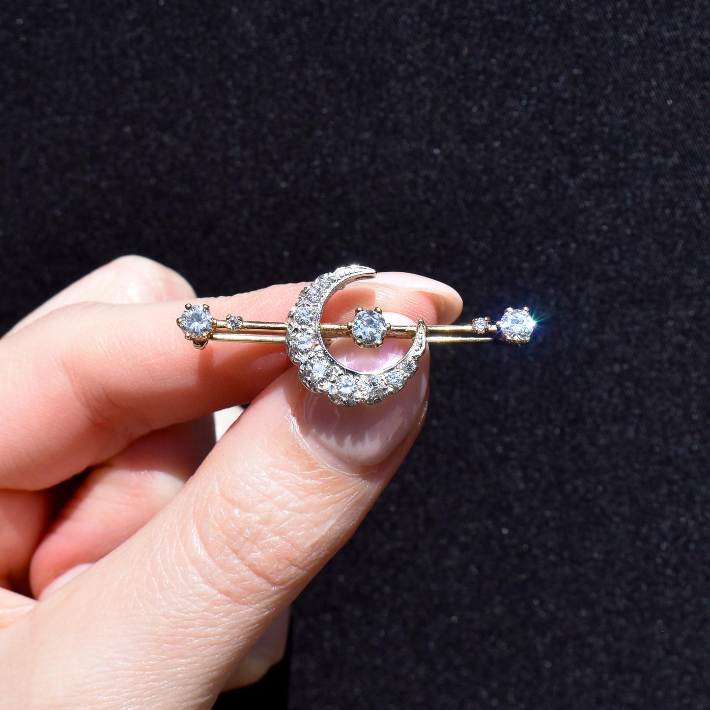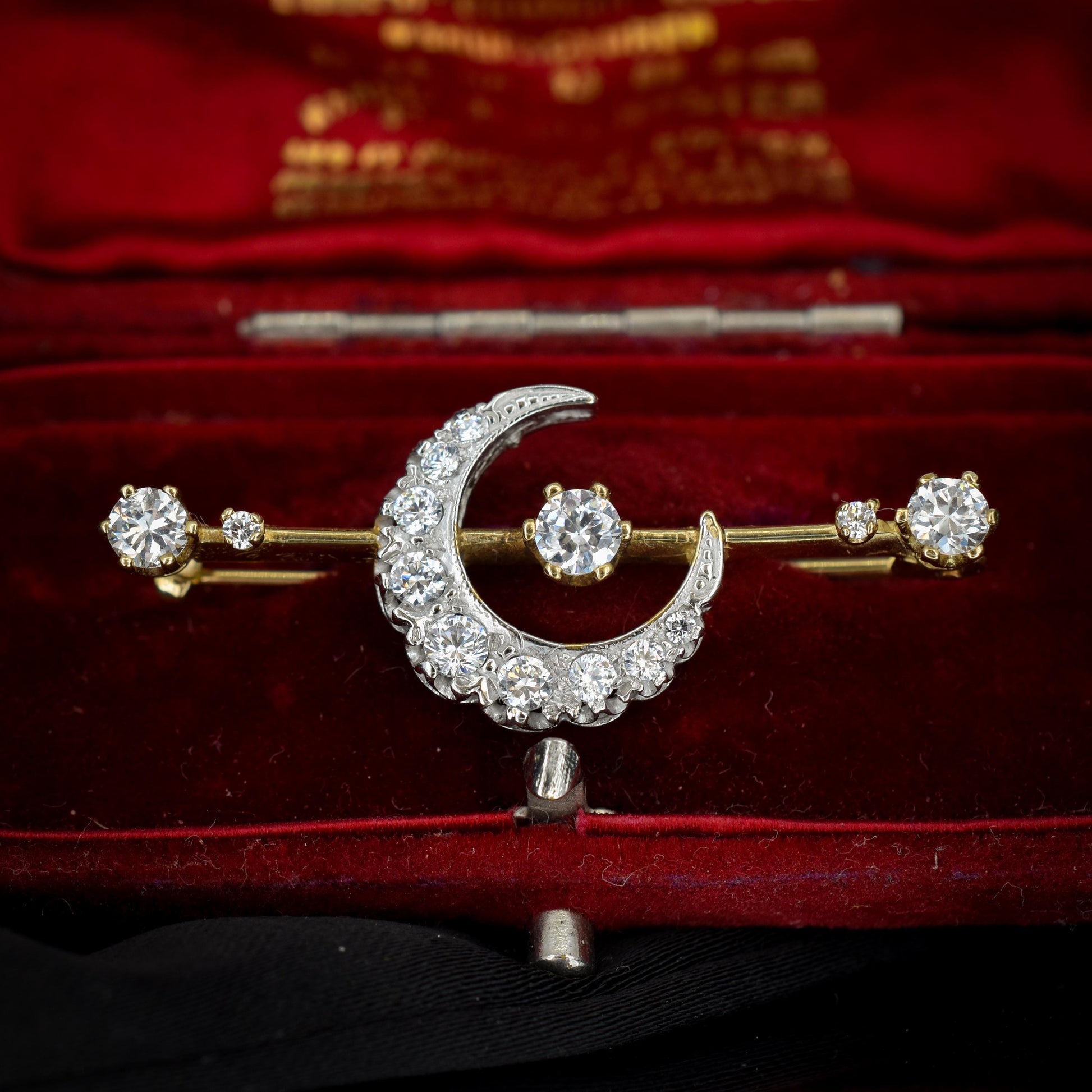 Star and Moon images such as crescents became popular during the 19th Century as an interest in astronomy grew. They were used in jewellery to symbolise guidance and to help lead you in the direction you are meant to go.
