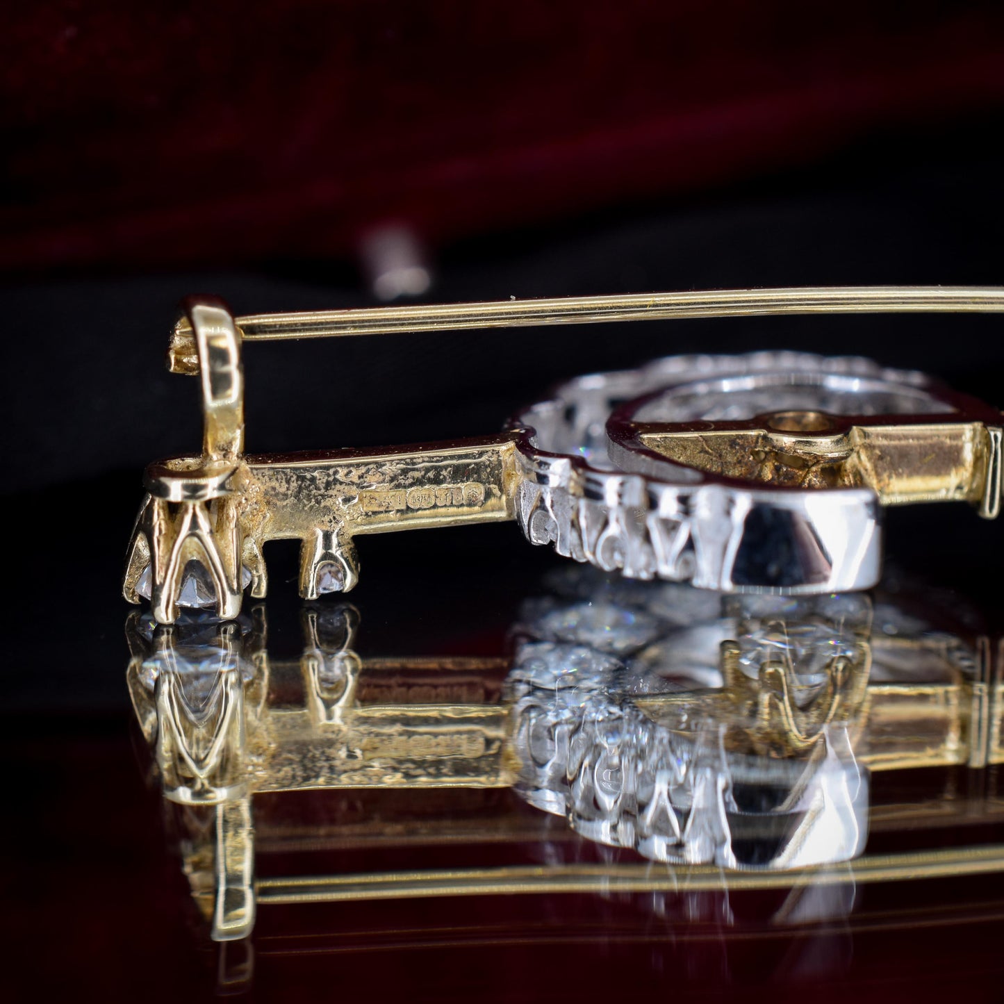 This quality Vintage Crescent brooch features approximately 1.06ct of Paste stones modelled in 9ct Gold, fully hallmarked for 375 (9ct Gold).